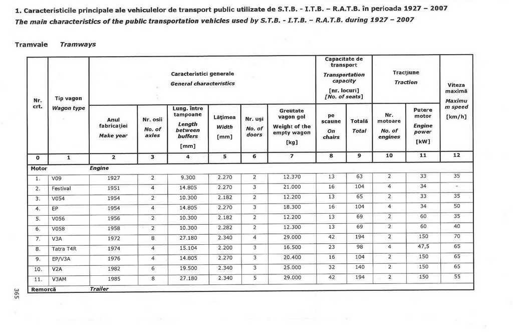 Doresc să atașez câteva anexe ale vehiculelor ce au circulat la RATB timp de 80 de ani (1927-2007), toate sunt atât cu privire la anul fabricației, cât și caracteristicilor generale (lungime, lățime, etc), puterea motorului, viteza maximă, etc (din păcate la unele lipsesc câteva informații). Toate aceste informații provin din arhiva RATB-ului.