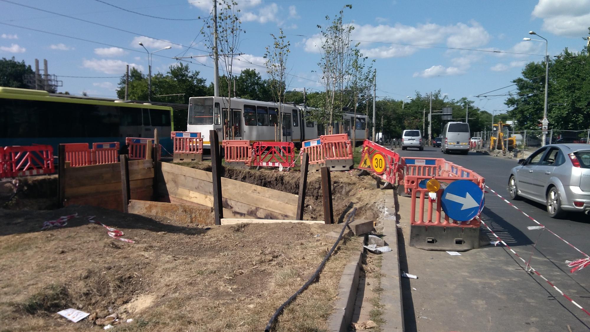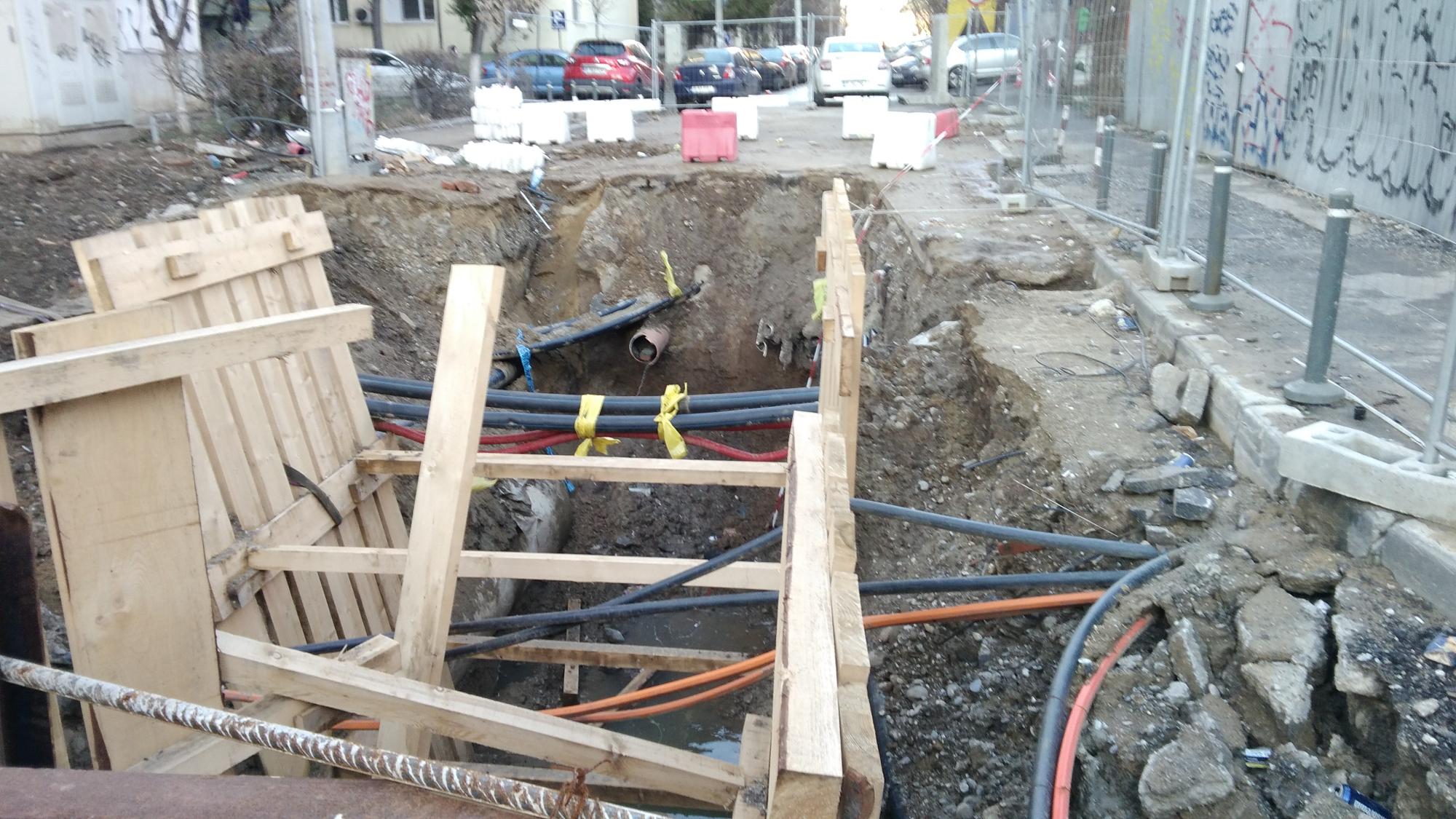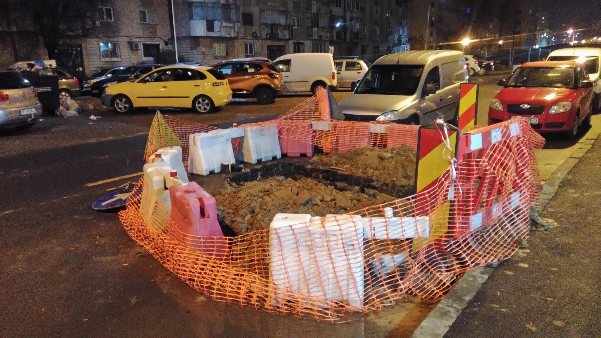 In schimb dilema mare cu teava ciocanita dinspre parc spre tramvai, n-au gasit-o dincolo de tramvai asa ca au mai sapat un gropan pe banda 4 la semafor! Deci banda 1 si banda 4 suprimate si teava este de negasit...