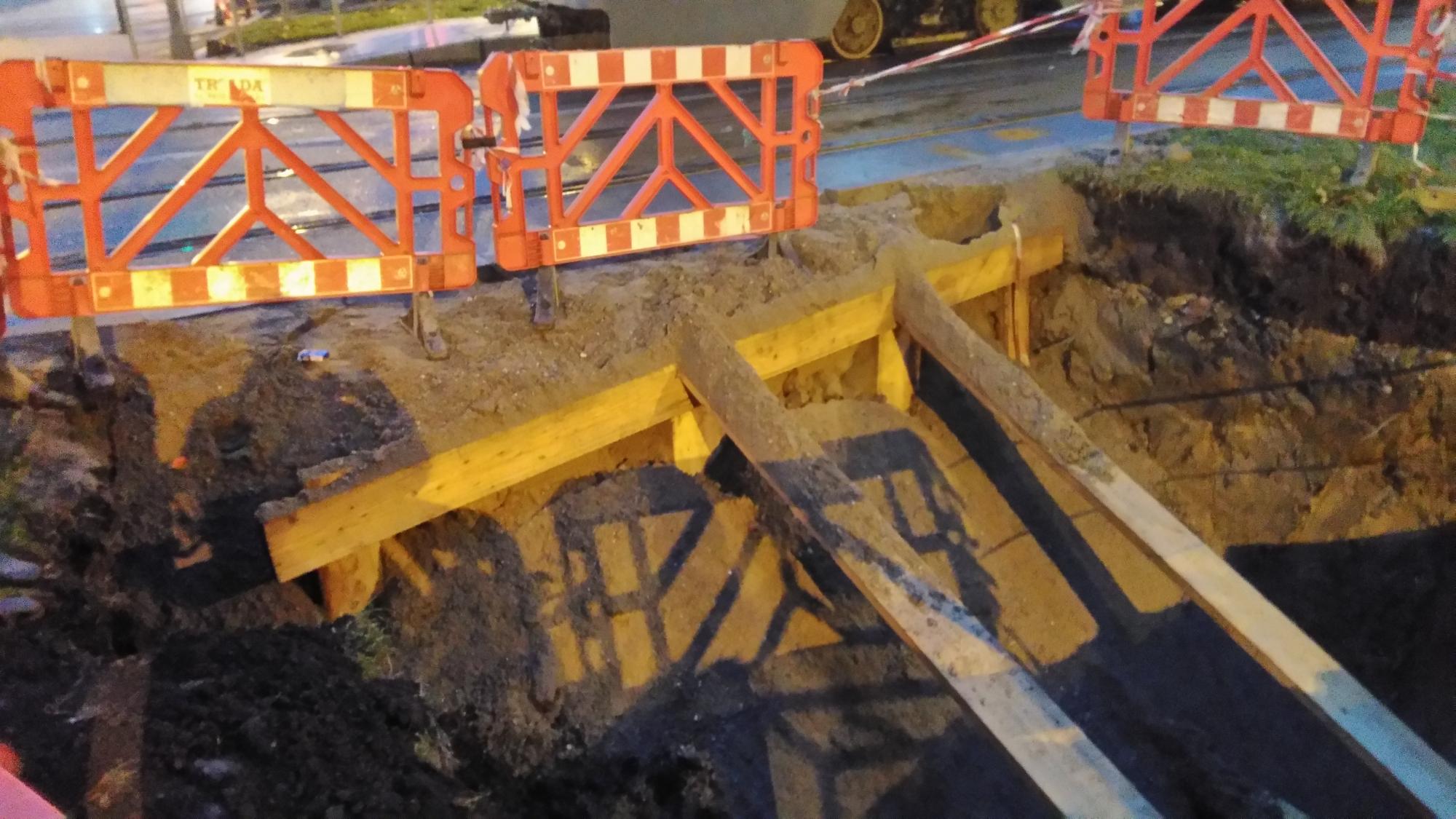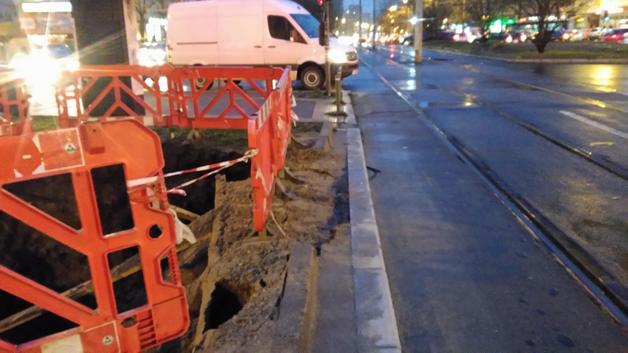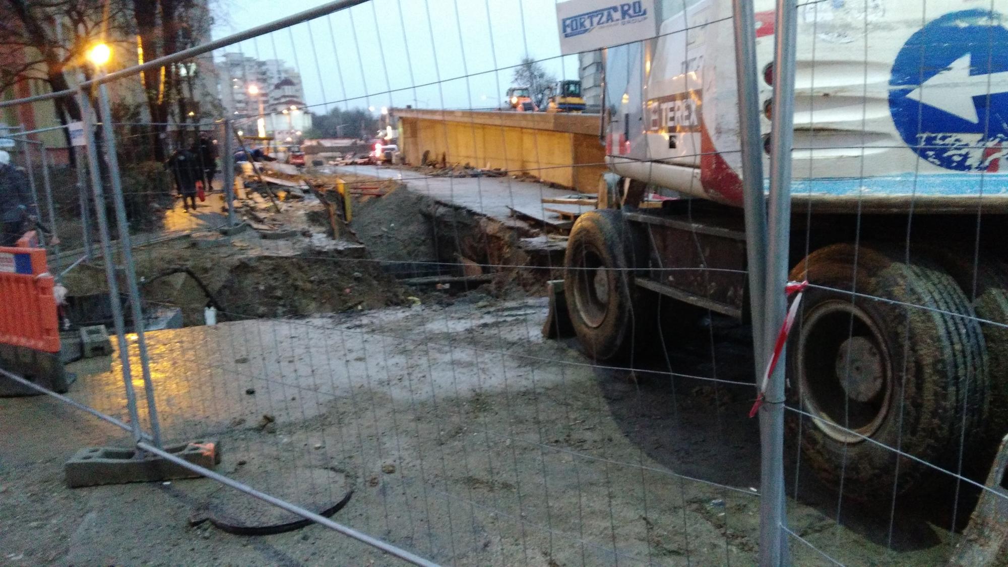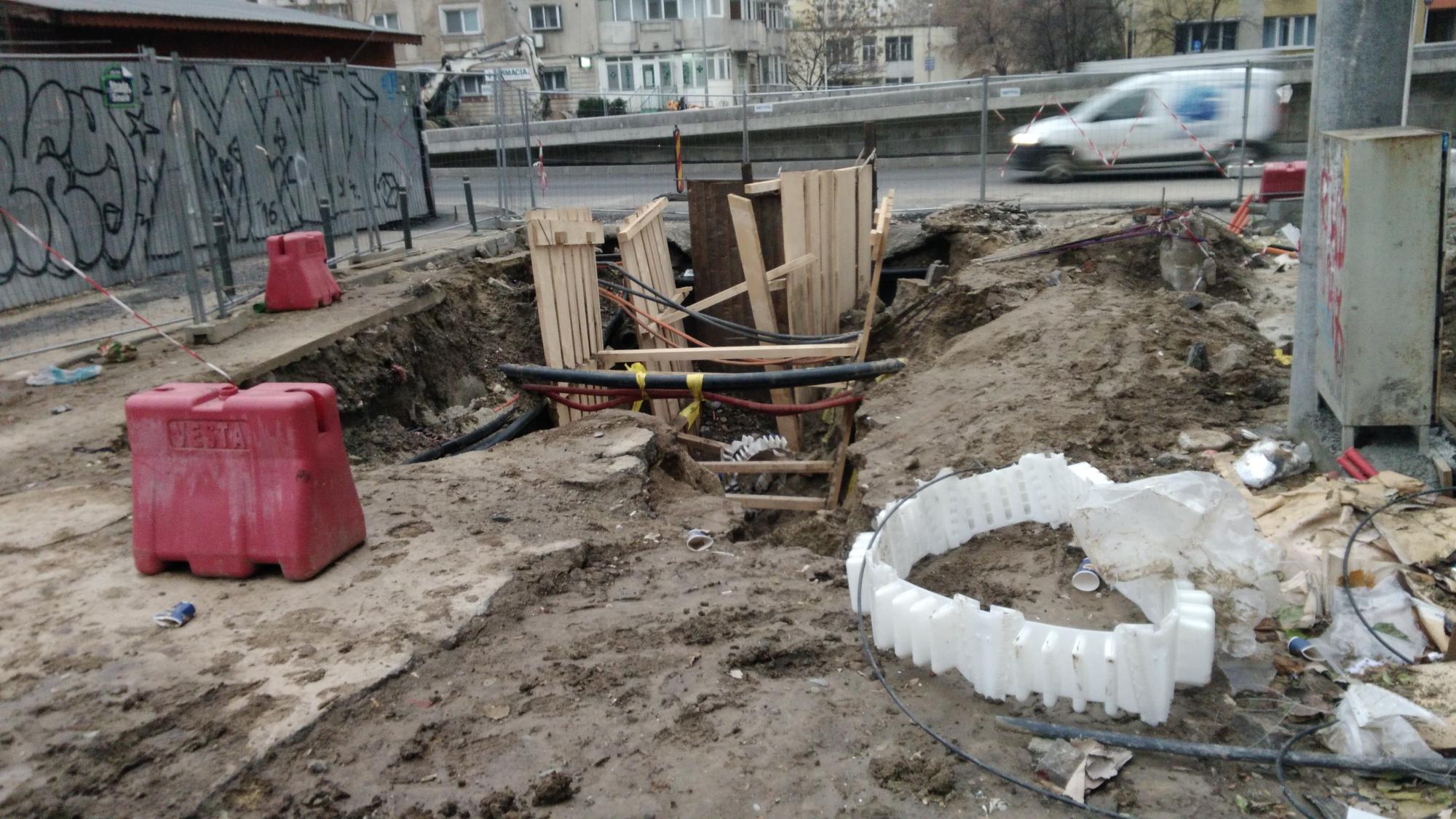 In schimb dilema mare cu teava ciocanita dinspre parc spre tramvai, n-au gasit-o dincolo de tramvai asa ca au mai sapat un gropan pe banda 4 la semafor! Deci banda 1 si banda 4 suprimate si teava este de negasit...