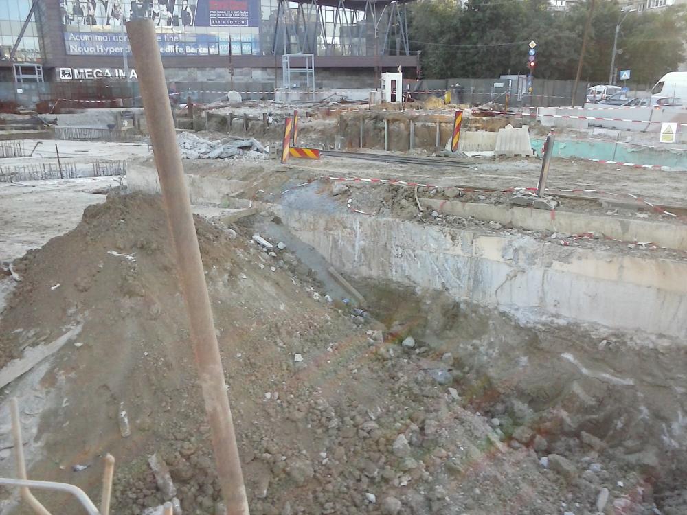 Skip intro. S-a lipit cartonul (hidroizolatia) pe restul de rampa intrare Vacaresti, maine daca au material astern binderul, s-au buciardat la baza peretii rampei de iesire Vacaresti in vederea executarii operatiunilor identice, amulsie, carton, binder. Noutate absoluta, s-a dat cu emulsie sensul Vacaresti-Nitu Vasile DIN pasajul rutier, deci teoretic ar urma carton, se polizeaza peretii rampei Nitu Vasile si pare ca se baga dopuri (posibil ancore chimice) in diversele fisuri din pereti pentru etansarea scurgerilor. Un muncitor suda ceva in zona tzarcului PP3 (pasajul spre metrou). S-au adus (sau mutat la vedere) paleti cu borduri, pe partea cu intrarea in Castani.