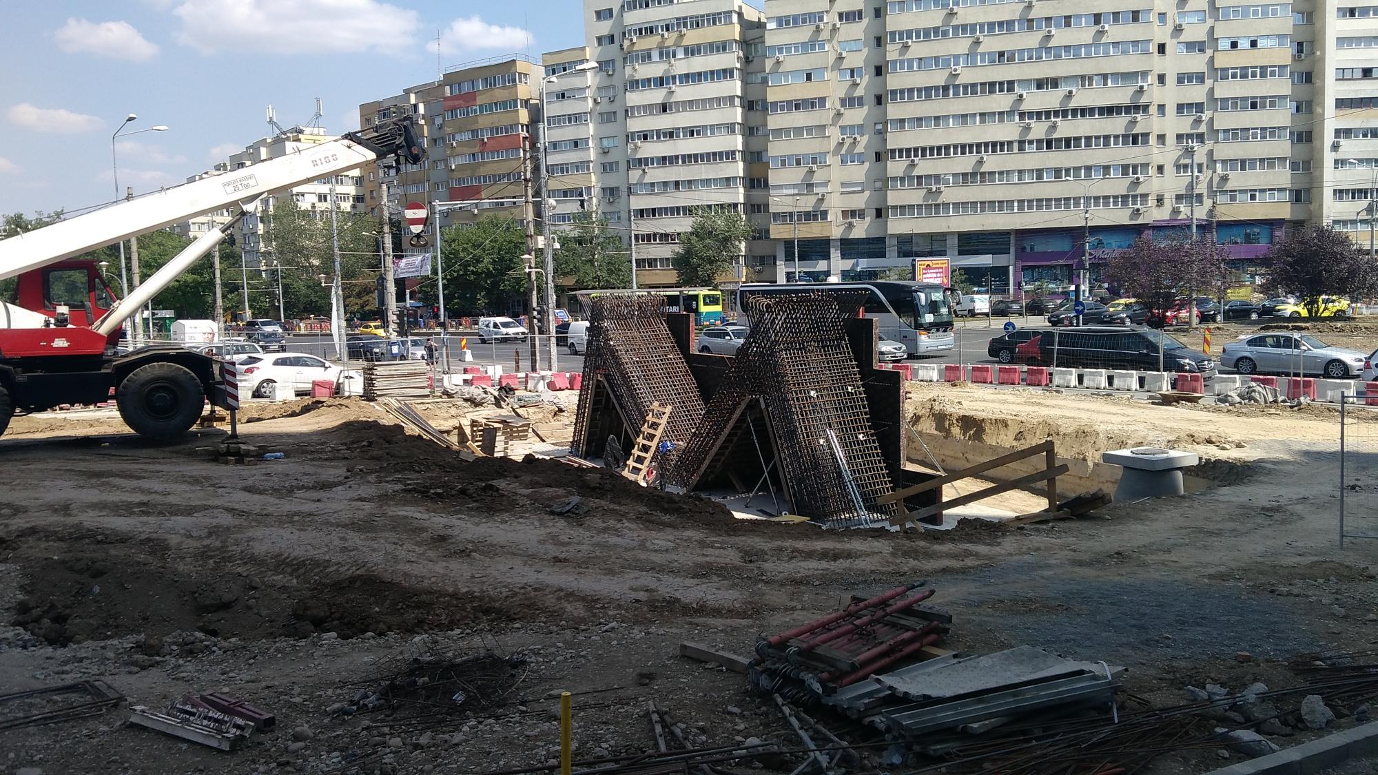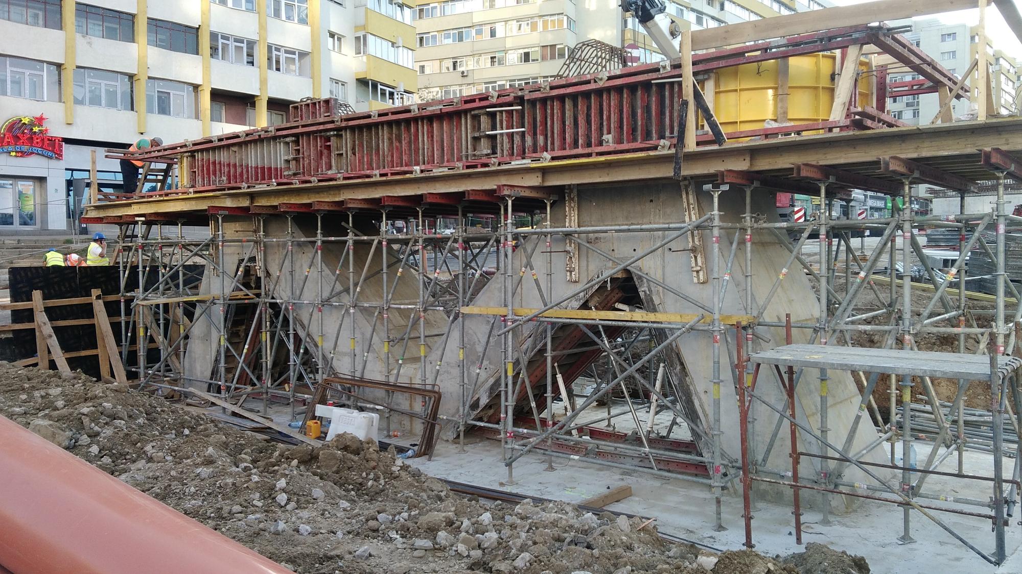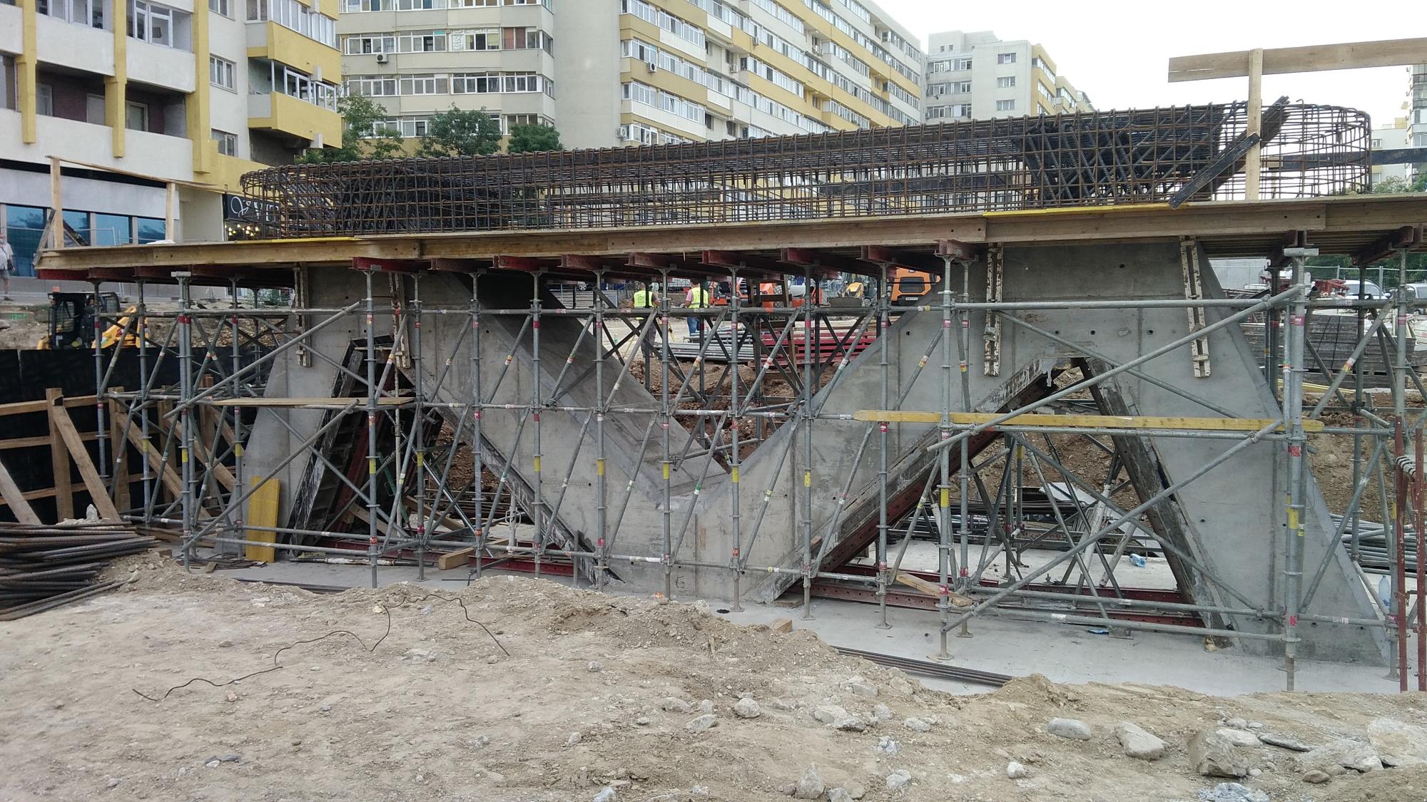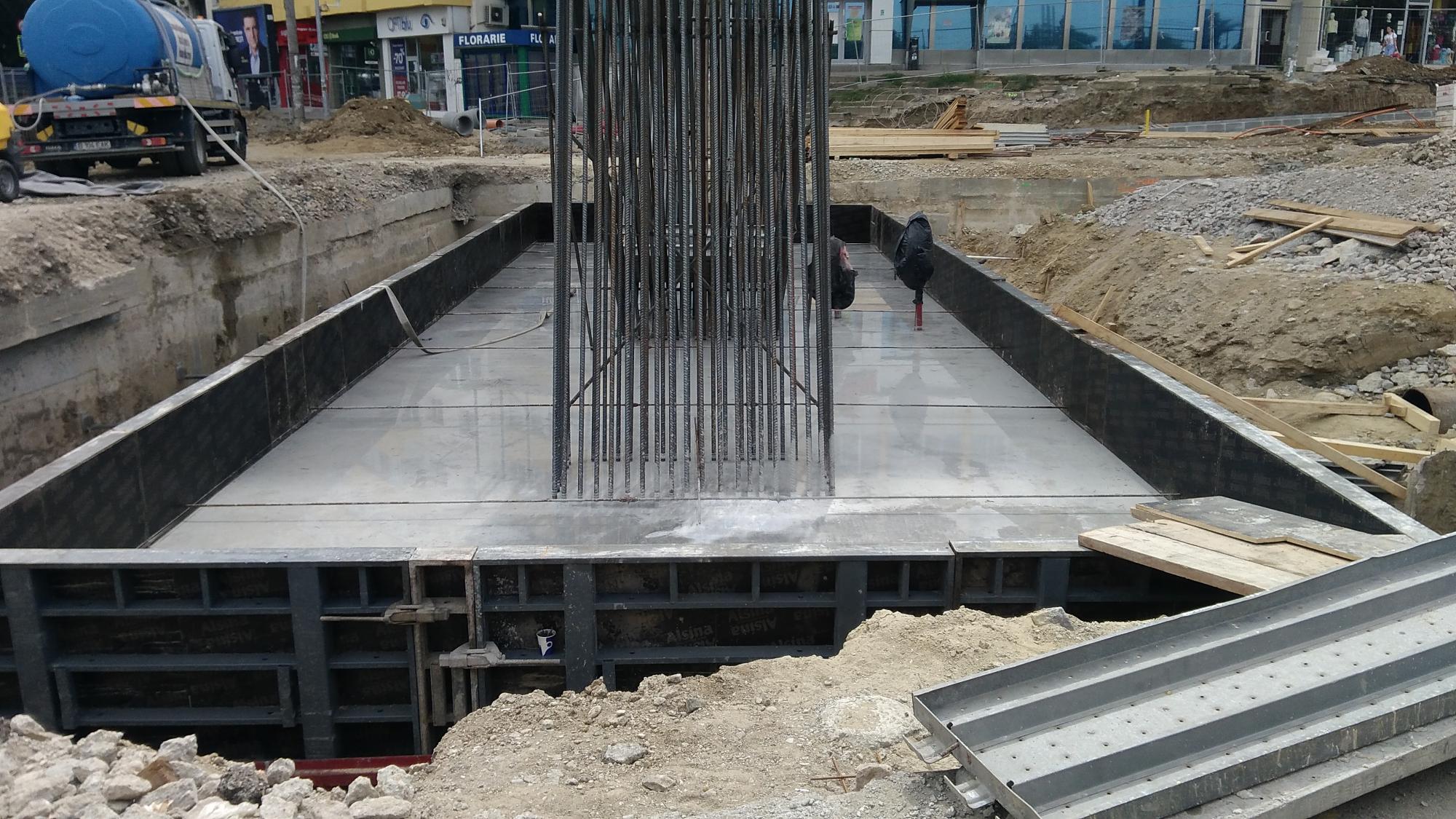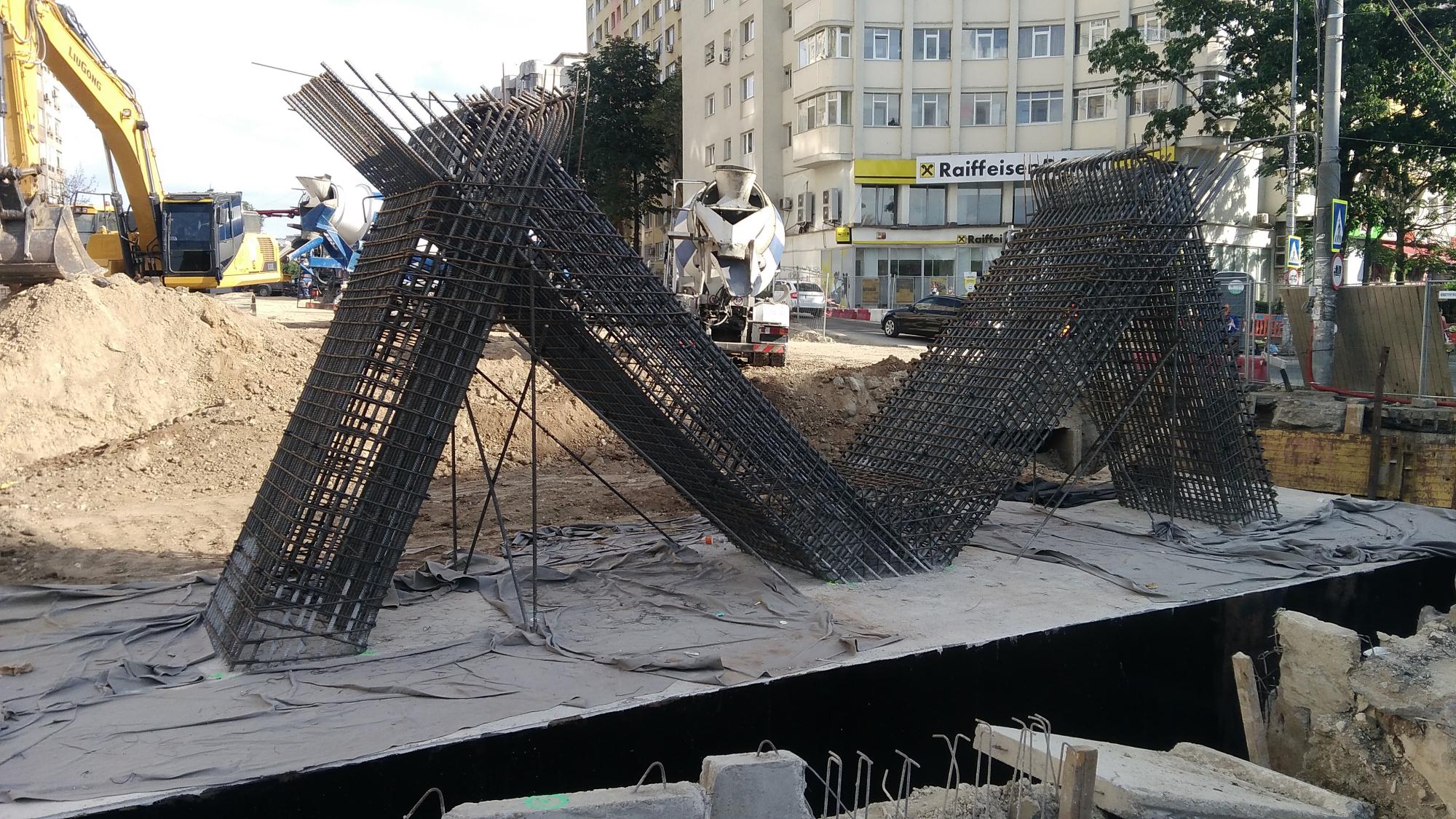 Surpriza este la prima fundatie de dupa culeea Tei, s-a betonat si se contureaza forma pilonului din armaturi. Probabil ca saptamana viitoare si fundatia