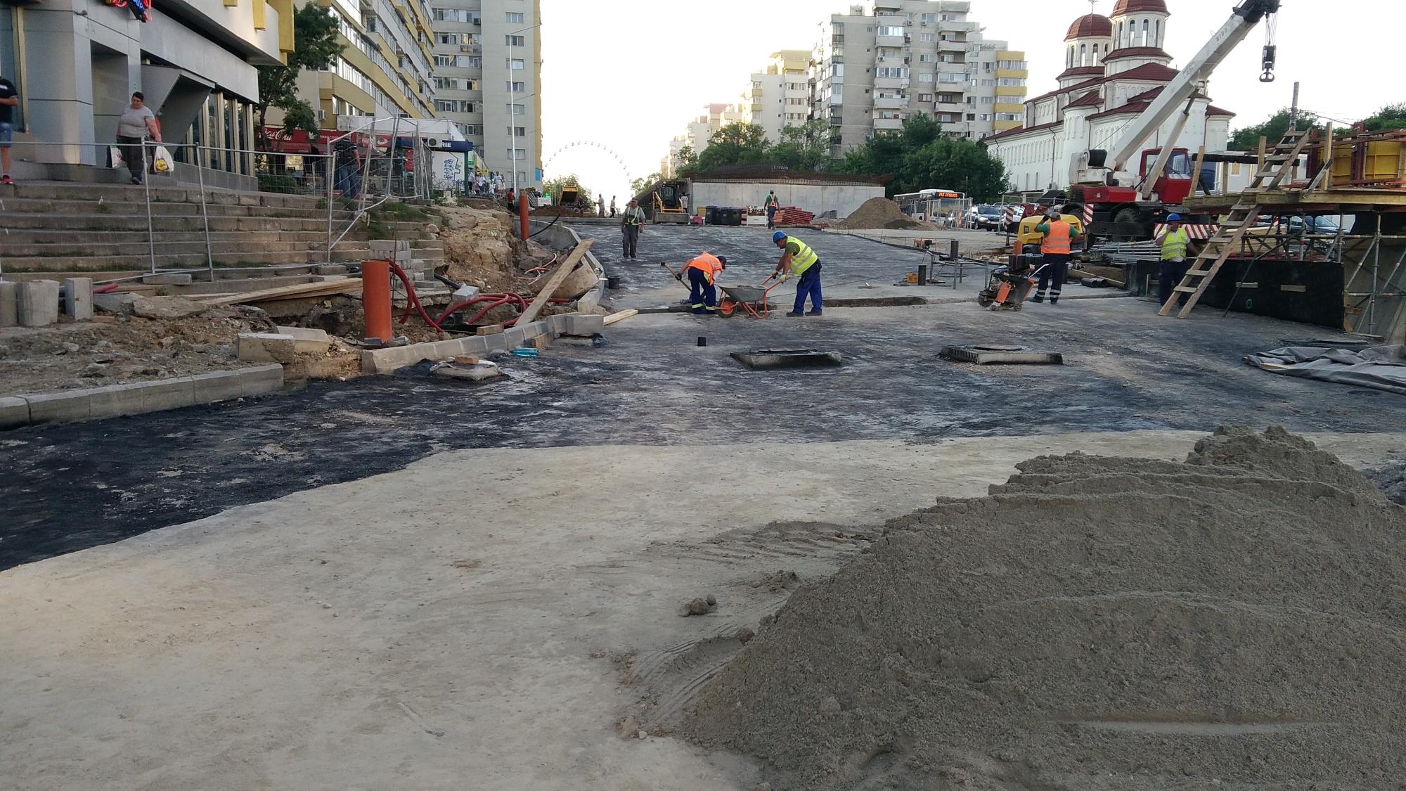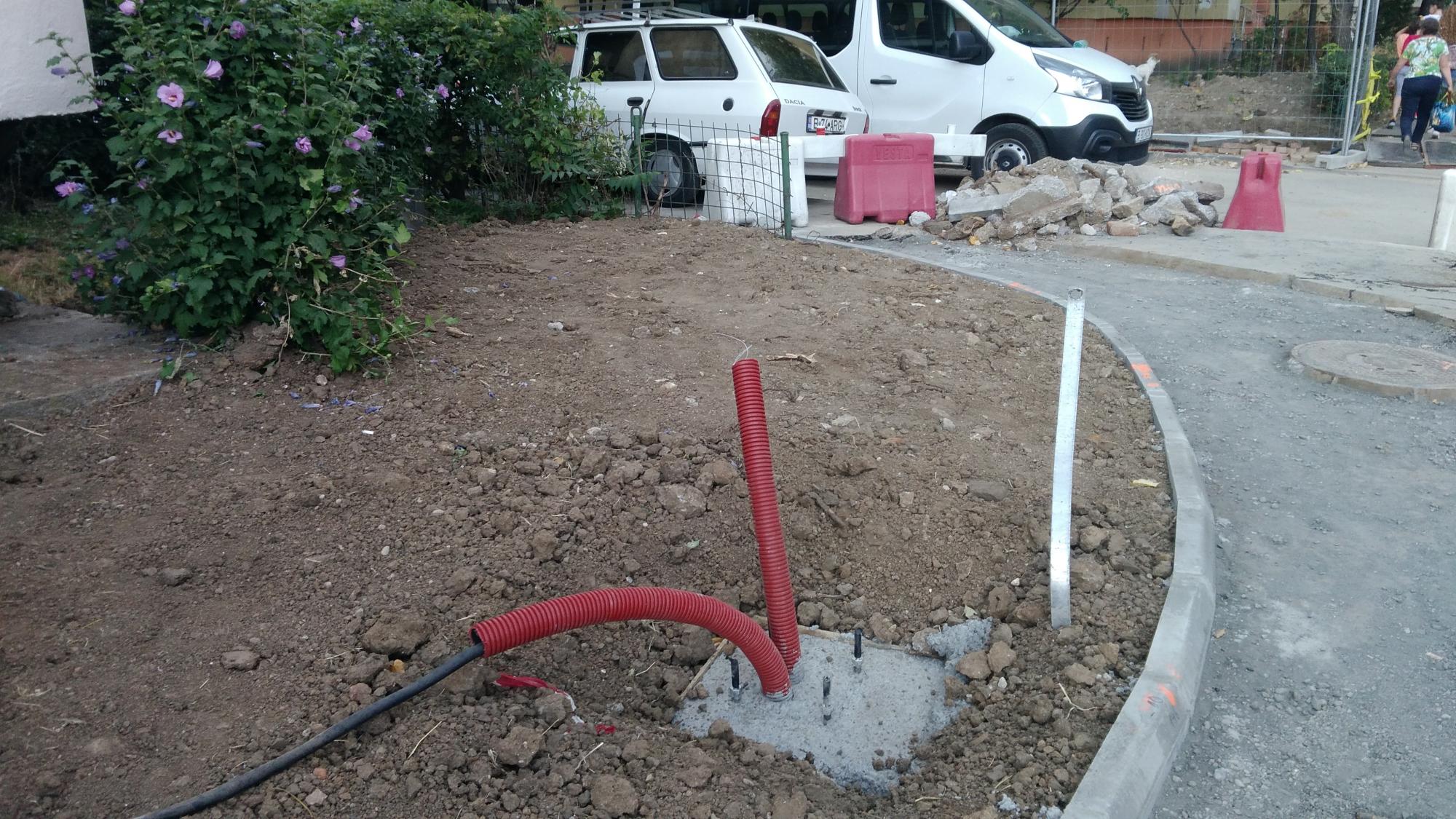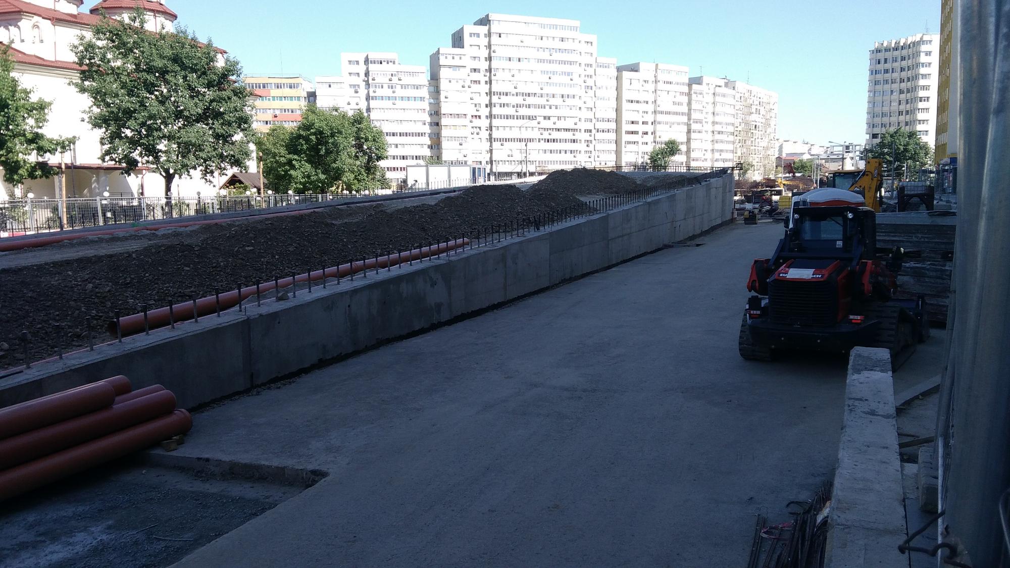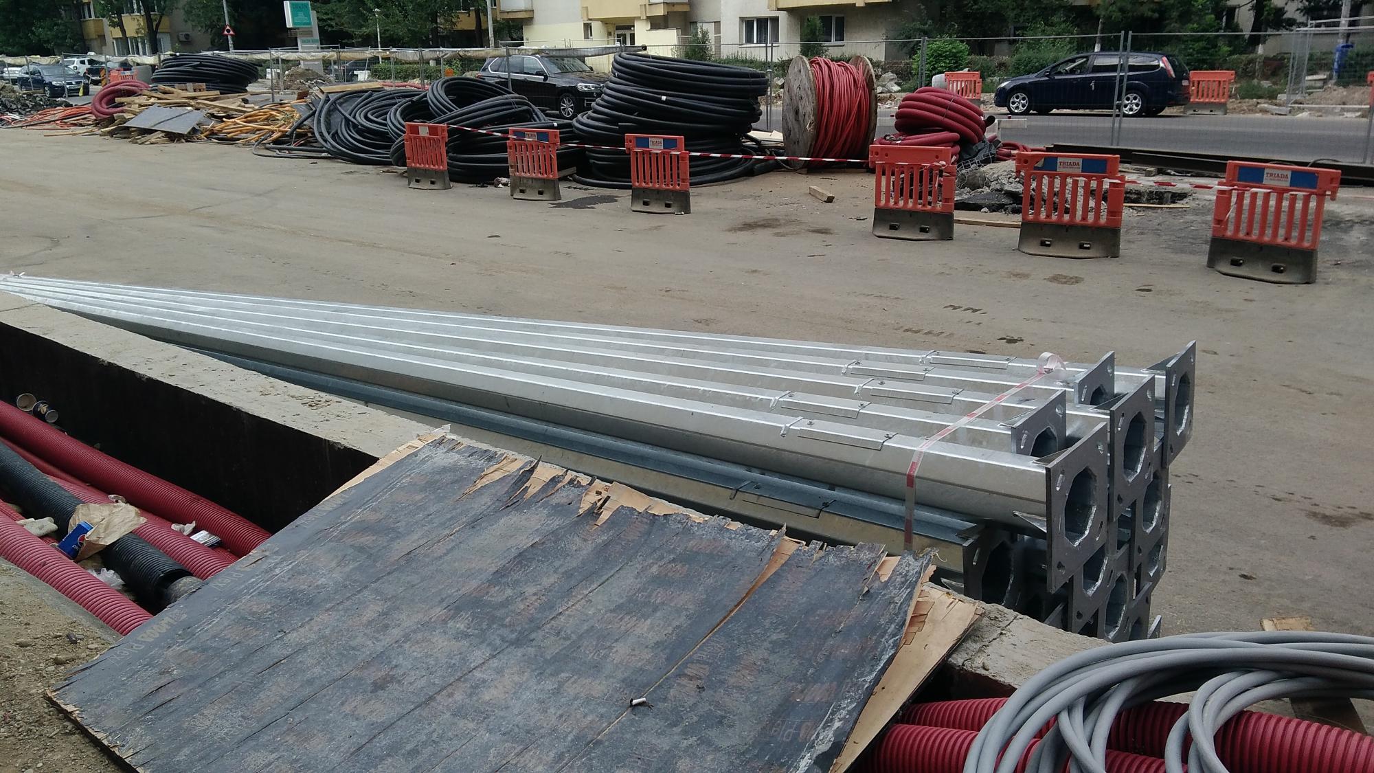 Au sosit cativa stalpi zincati pentru iluminat in zona de santier dinspre Laptari Tei dar nu s-a betonat inca nici o fundatie de stalp. Tot spre Laptari Tei pe promenada inalta au facut un culoar cu podea din tego peste santurile cu tevi si cabluri, semn ca s-ar putea sa mai bage ceva in subteran dar nu stiu inca ce. Altfel betonau.