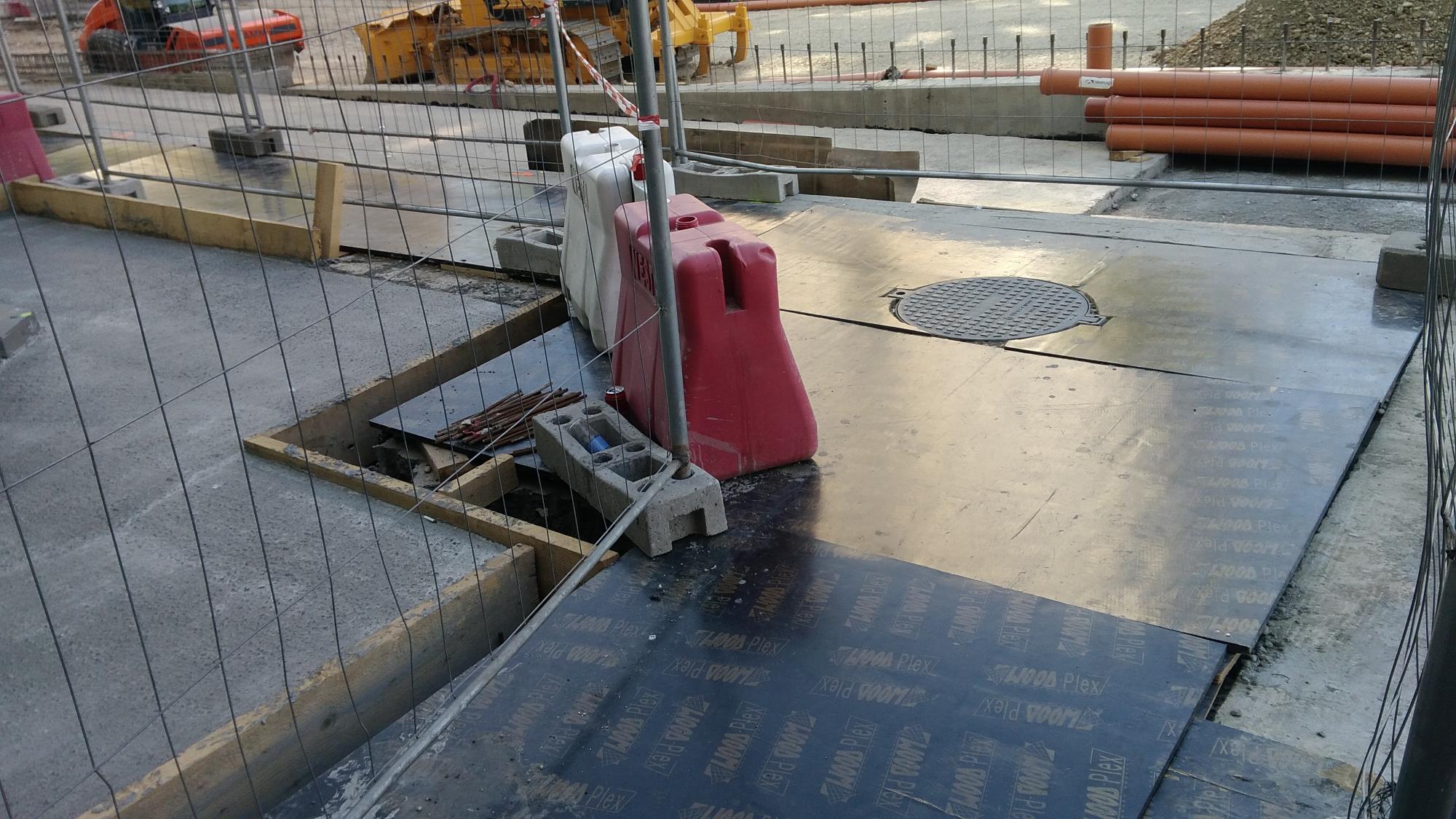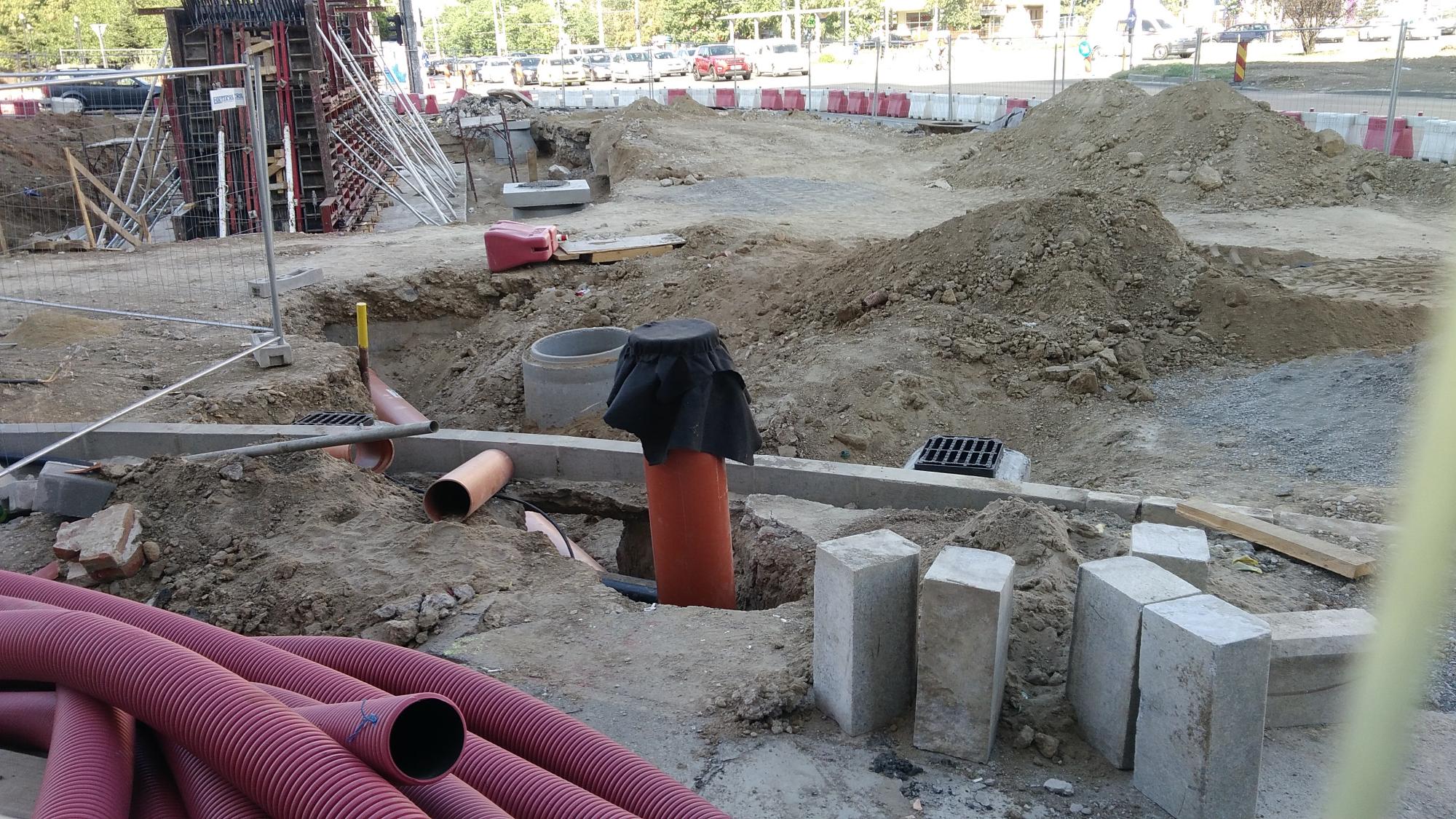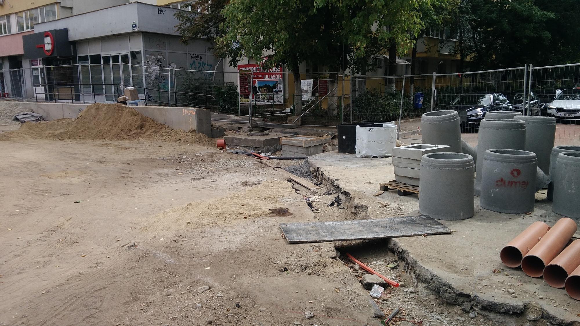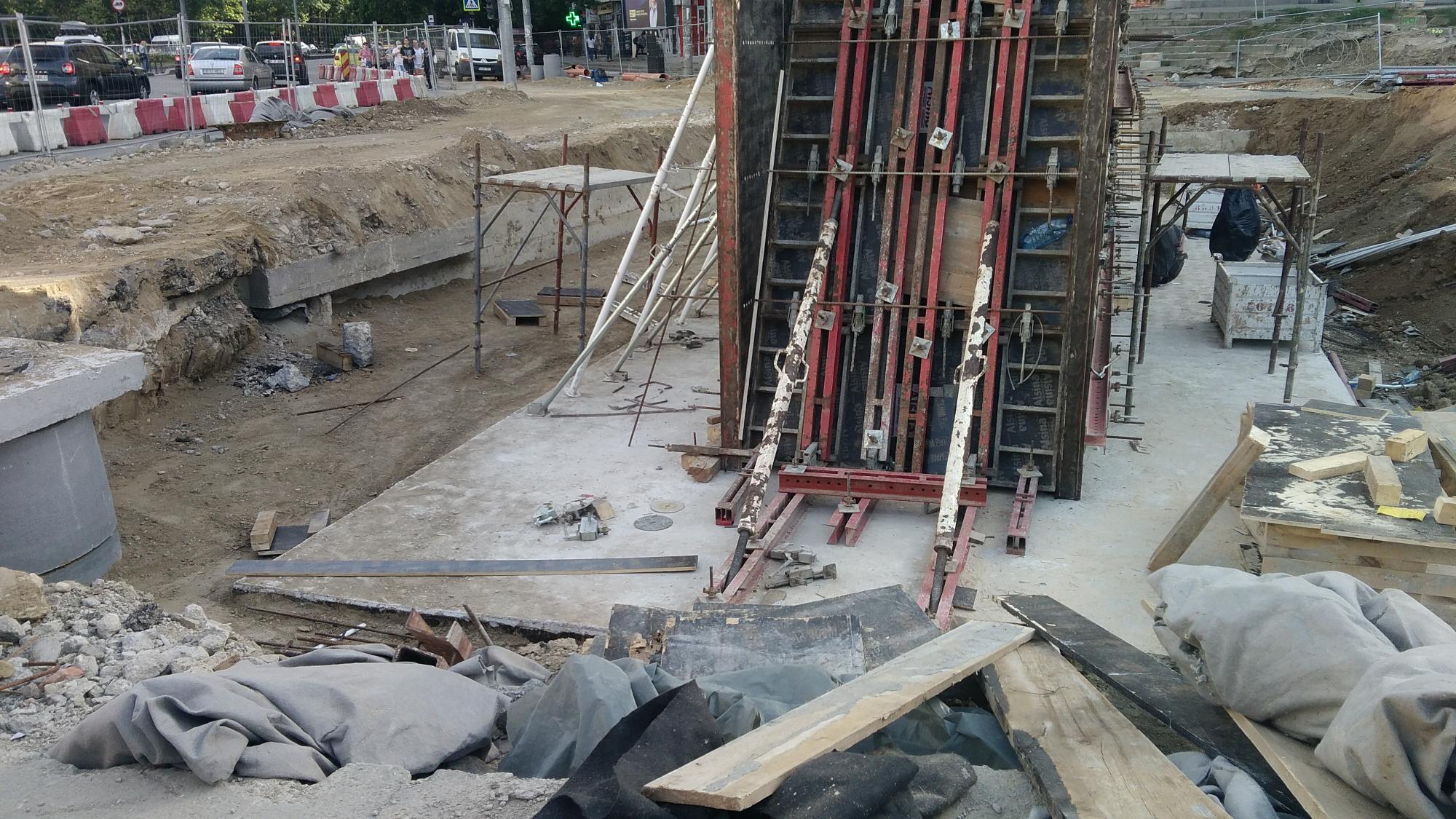 Au sosit cativa stalpi zincati pentru iluminat in zona de santier dinspre Laptari Tei dar nu s-a betonat inca nici o fundatie de stalp. Tot spre Laptari Tei pe promenada inalta au facut un culoar cu podea din tego peste santurile cu tevi si cabluri, semn ca s-ar putea sa mai bage ceva in subteran dar nu stiu inca ce. Altfel betonau.