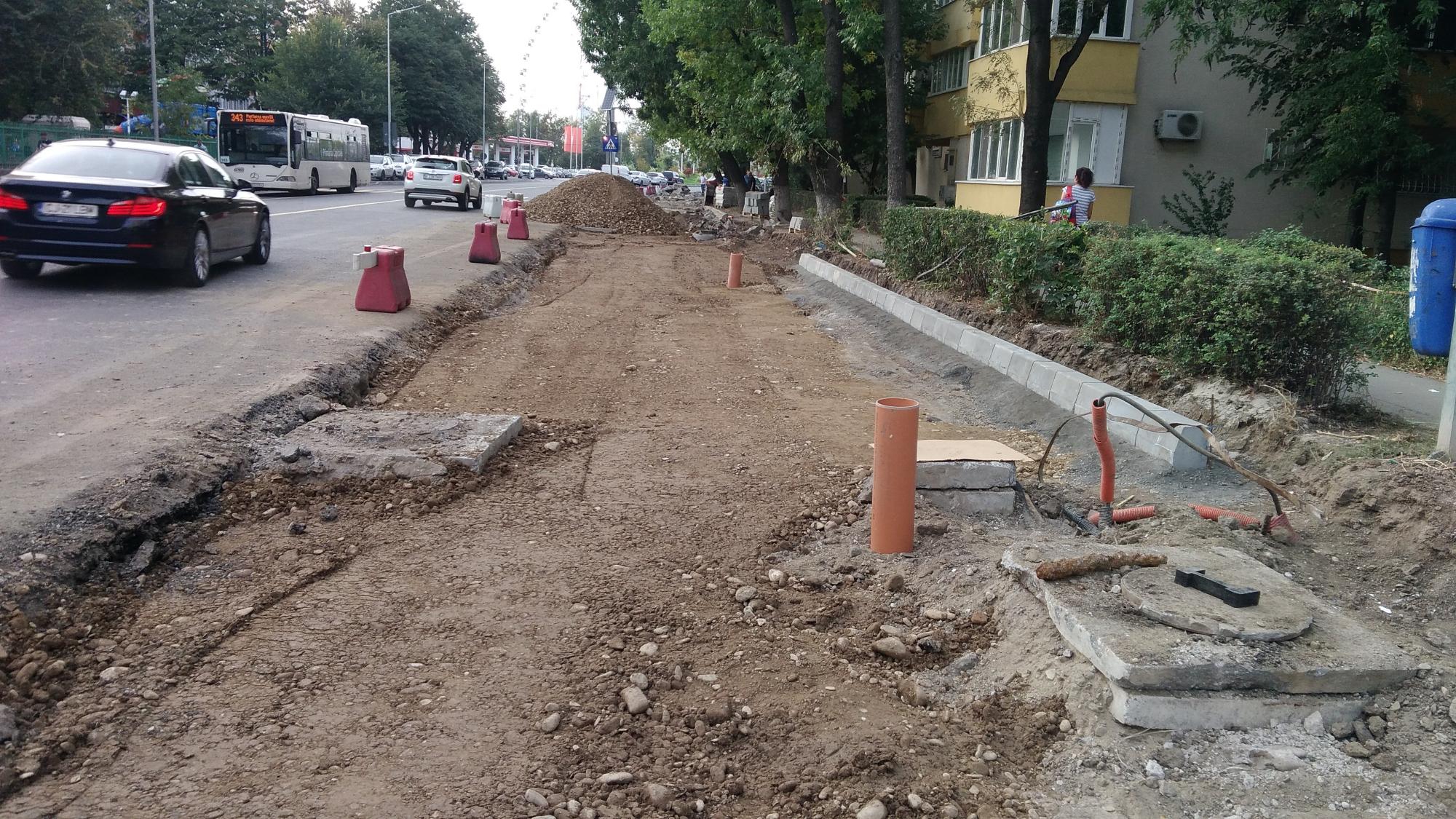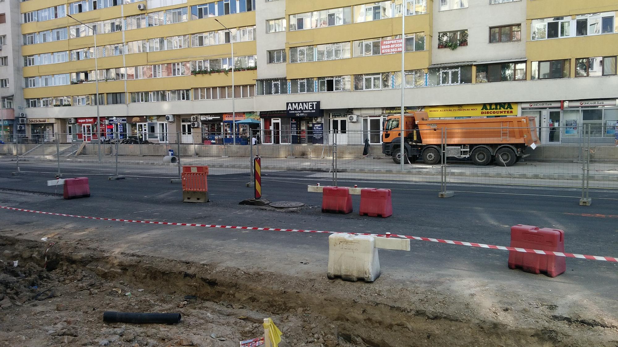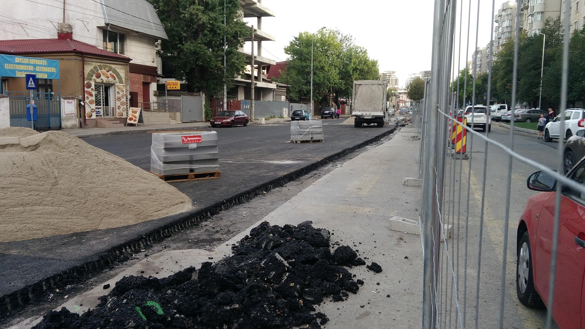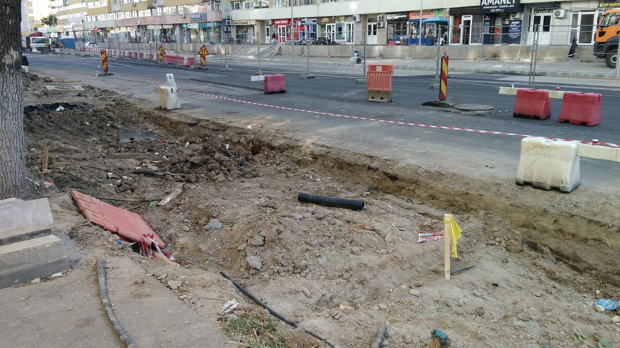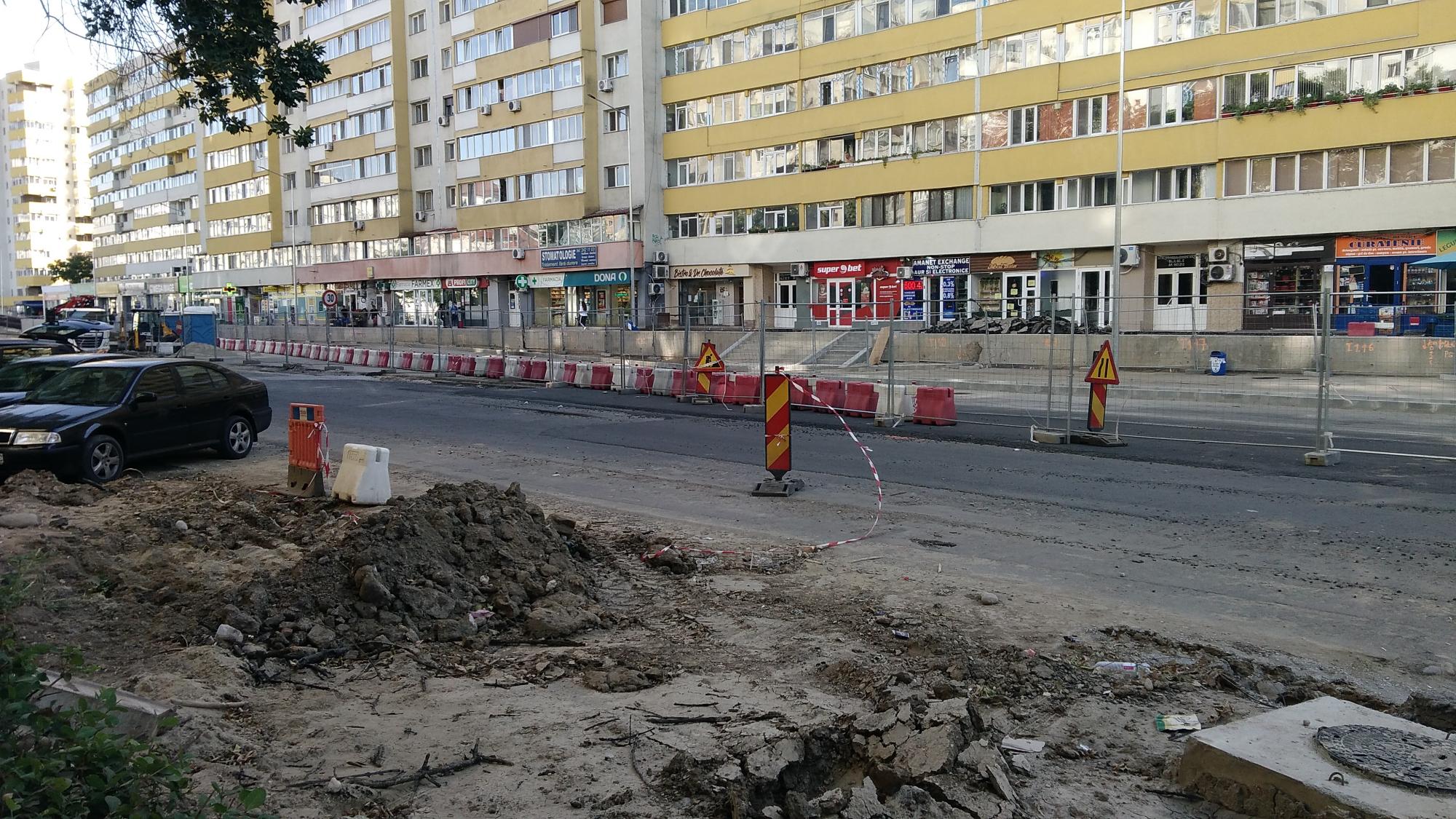 S-a desfiintat spatiul verde median de la Str. Constanta la Str. Sinaia si se compacteaza balast. De asemenea s-a ras complet asfaltul pe portiunea asta, banda 1 cu teava de gaze si banda 2.