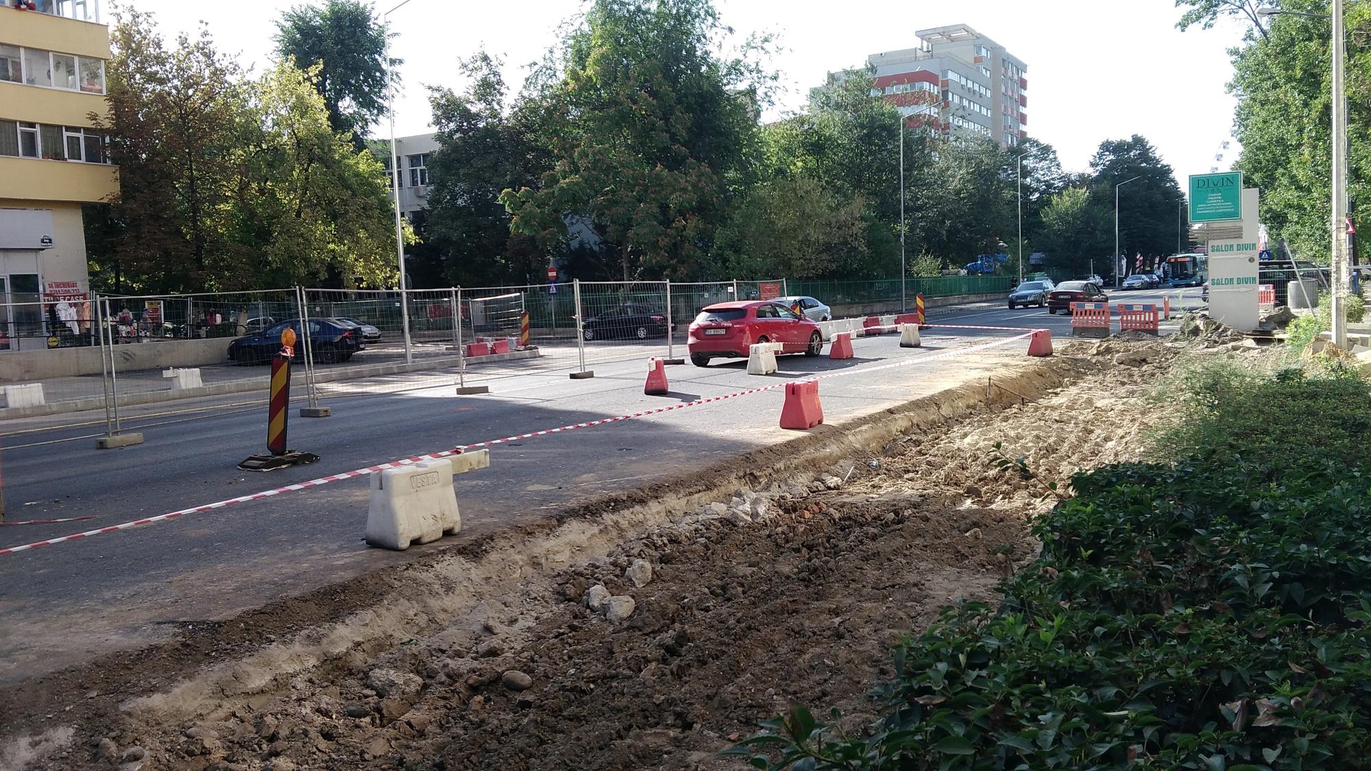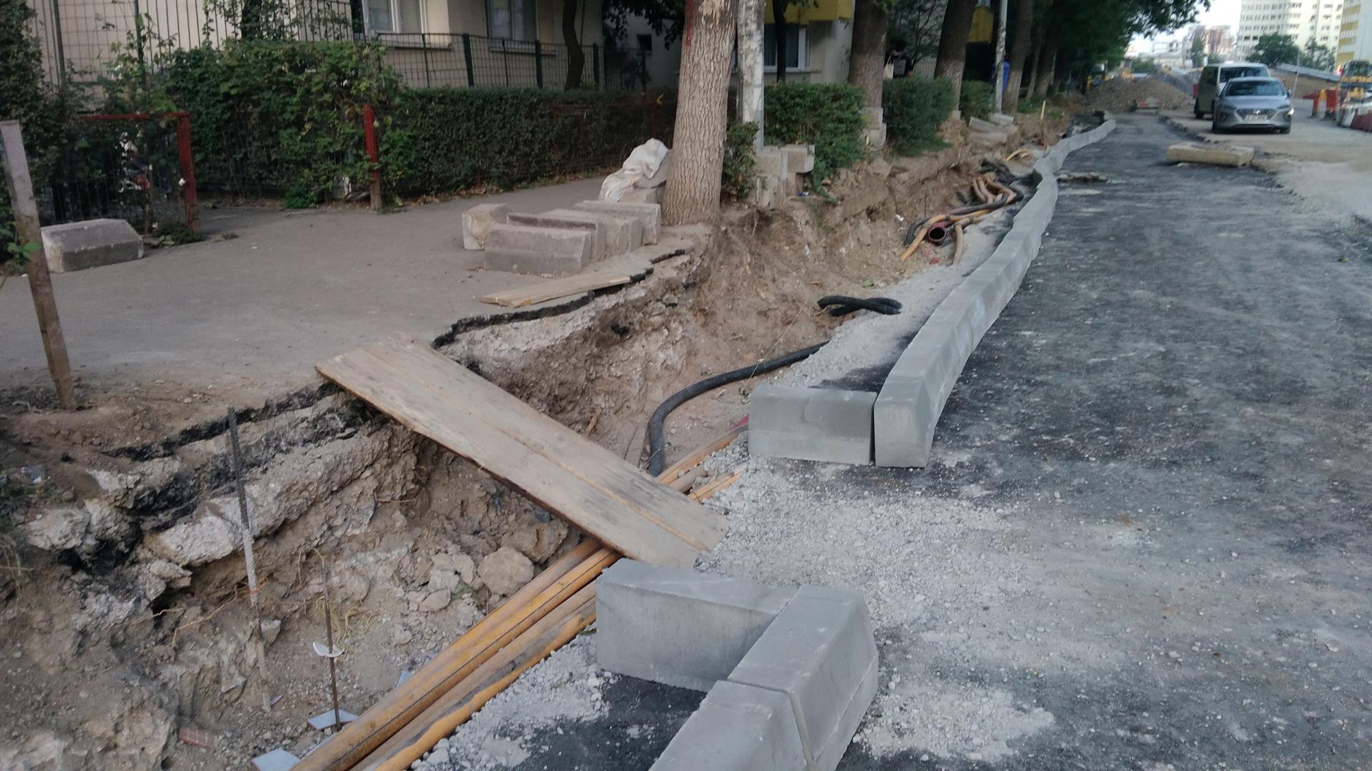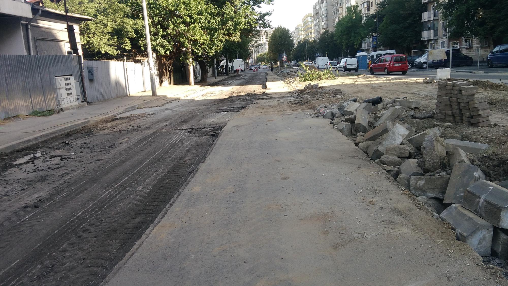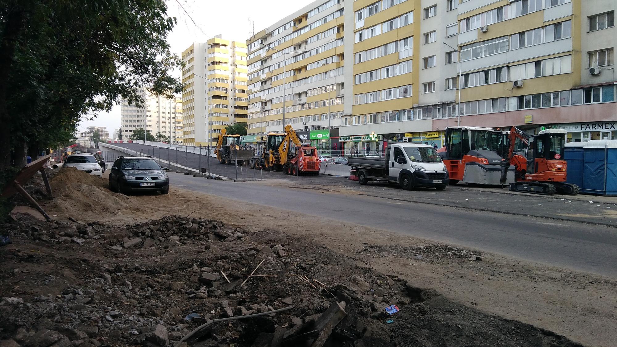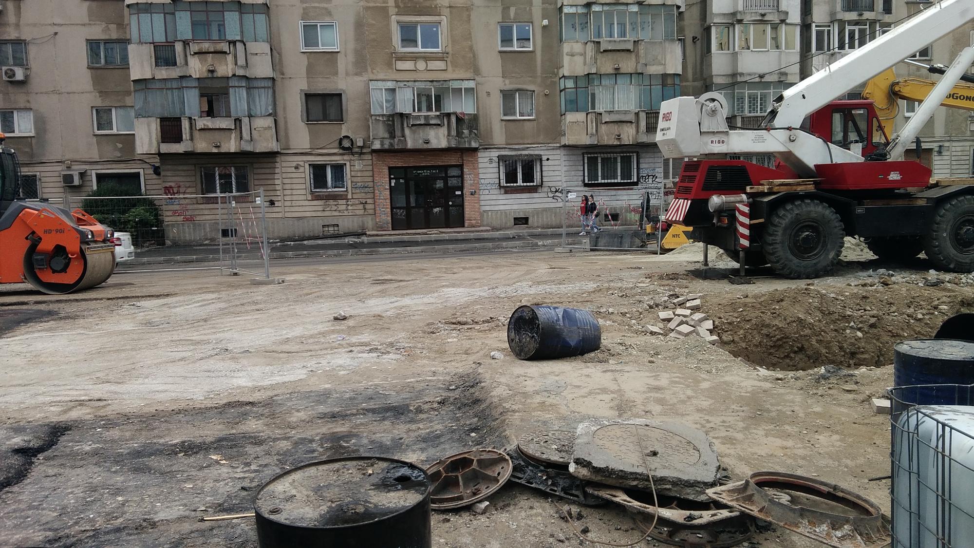 S-a desfiintat spatiul verde median de la Str. Constanta la Str. Sinaia si se compacteaza balast. De asemenea s-a ras complet asfaltul pe portiunea asta, banda 1 cu teava de gaze si banda 2.