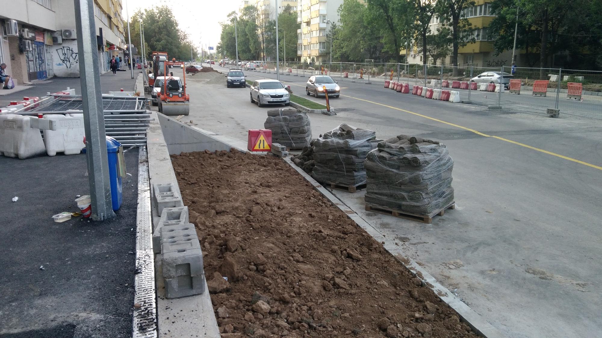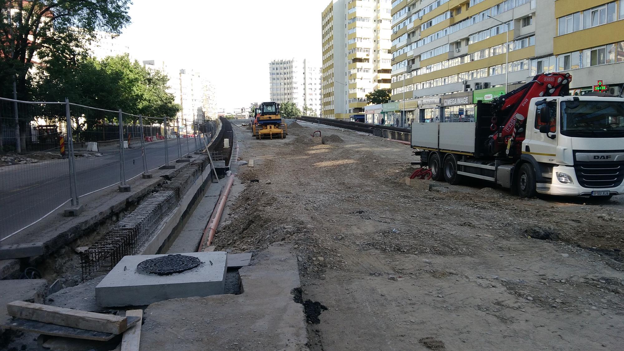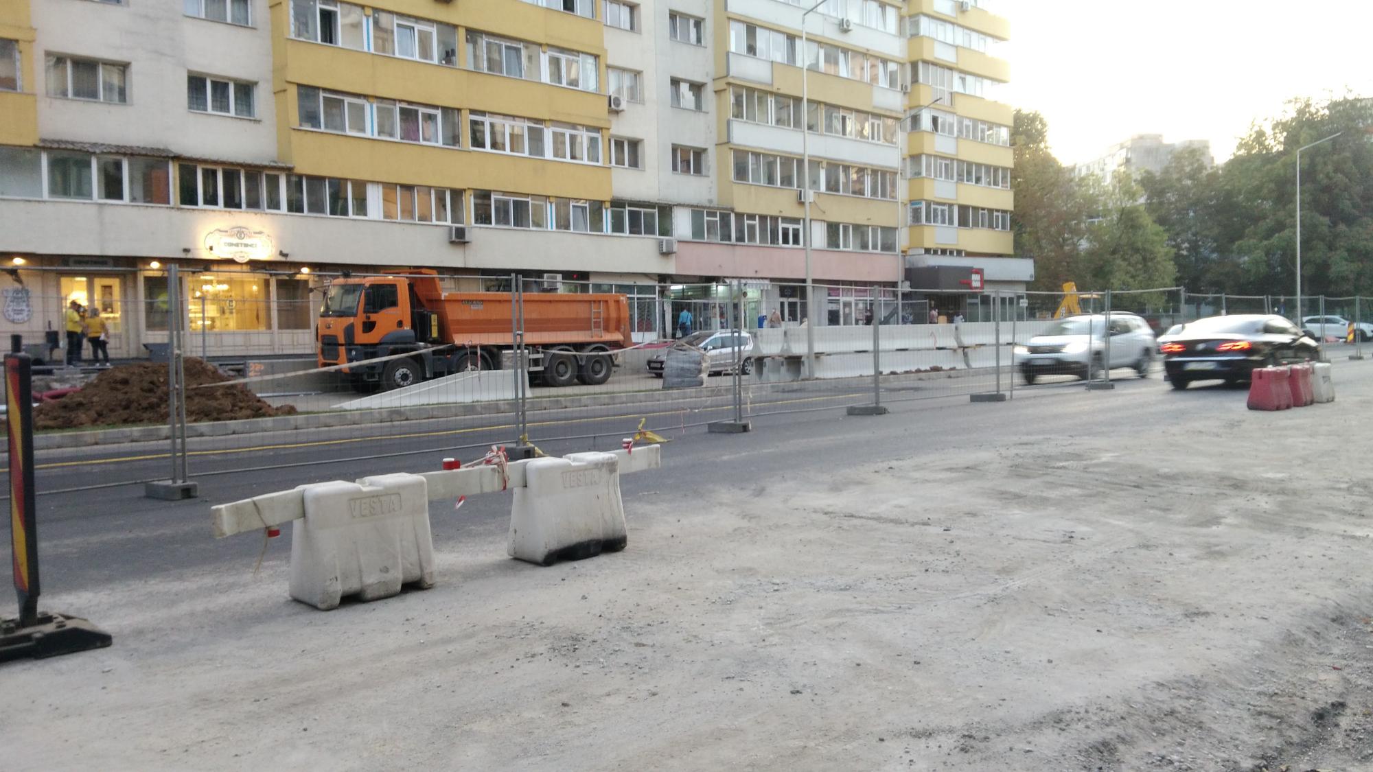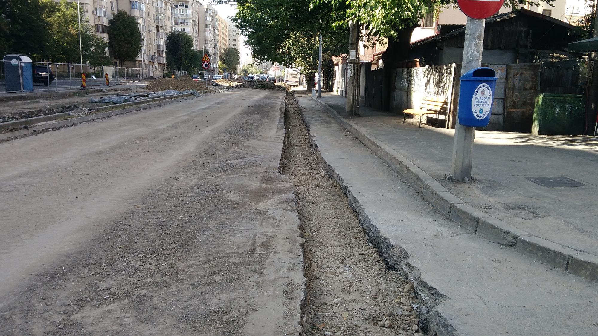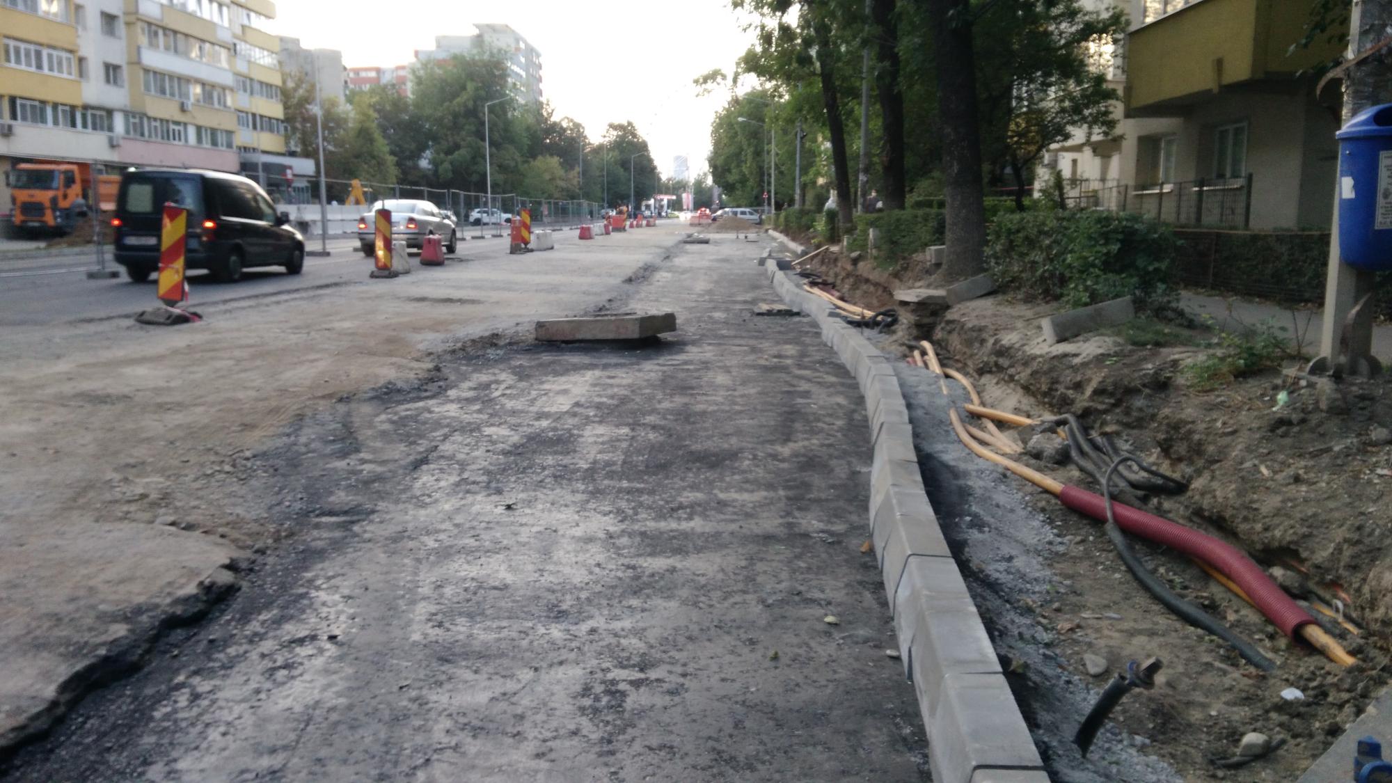 S-a desfiintat spatiul verde median de la Str. Constanta la Str. Sinaia si se compacteaza balast. De asemenea s-a ras complet asfaltul pe portiunea asta, banda 1 cu teava de gaze si banda 2.