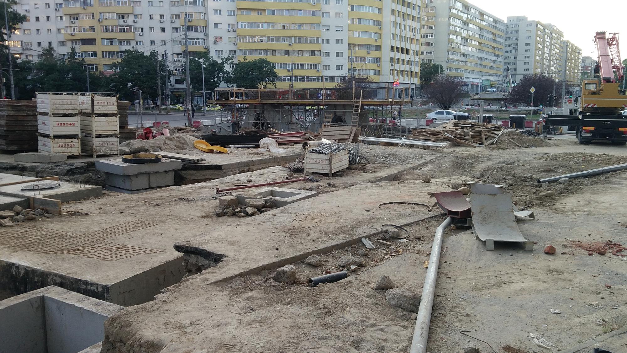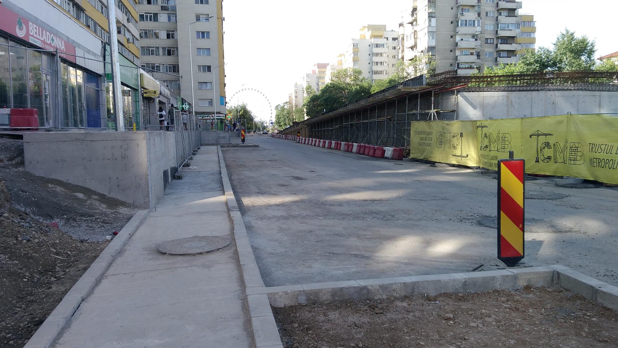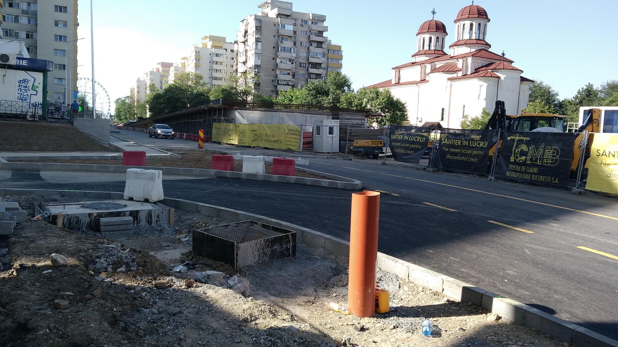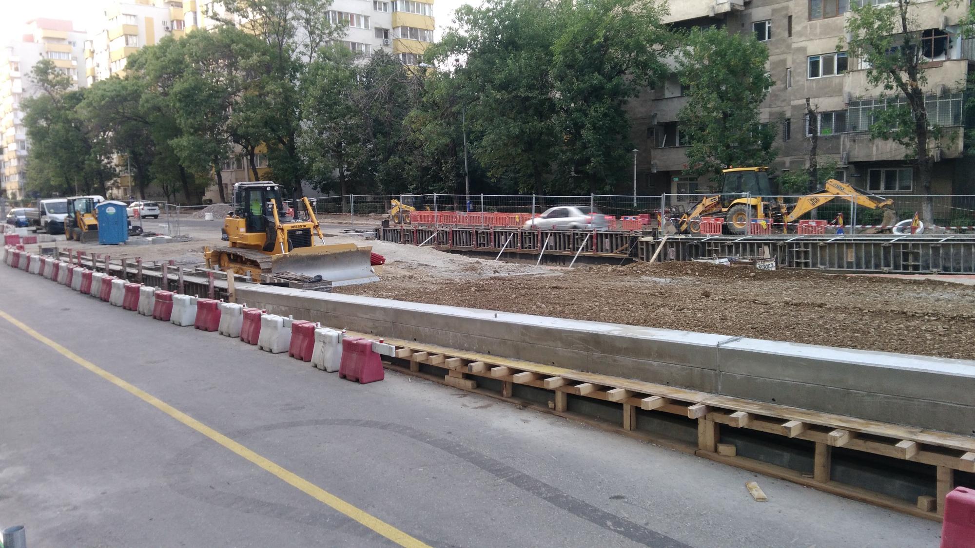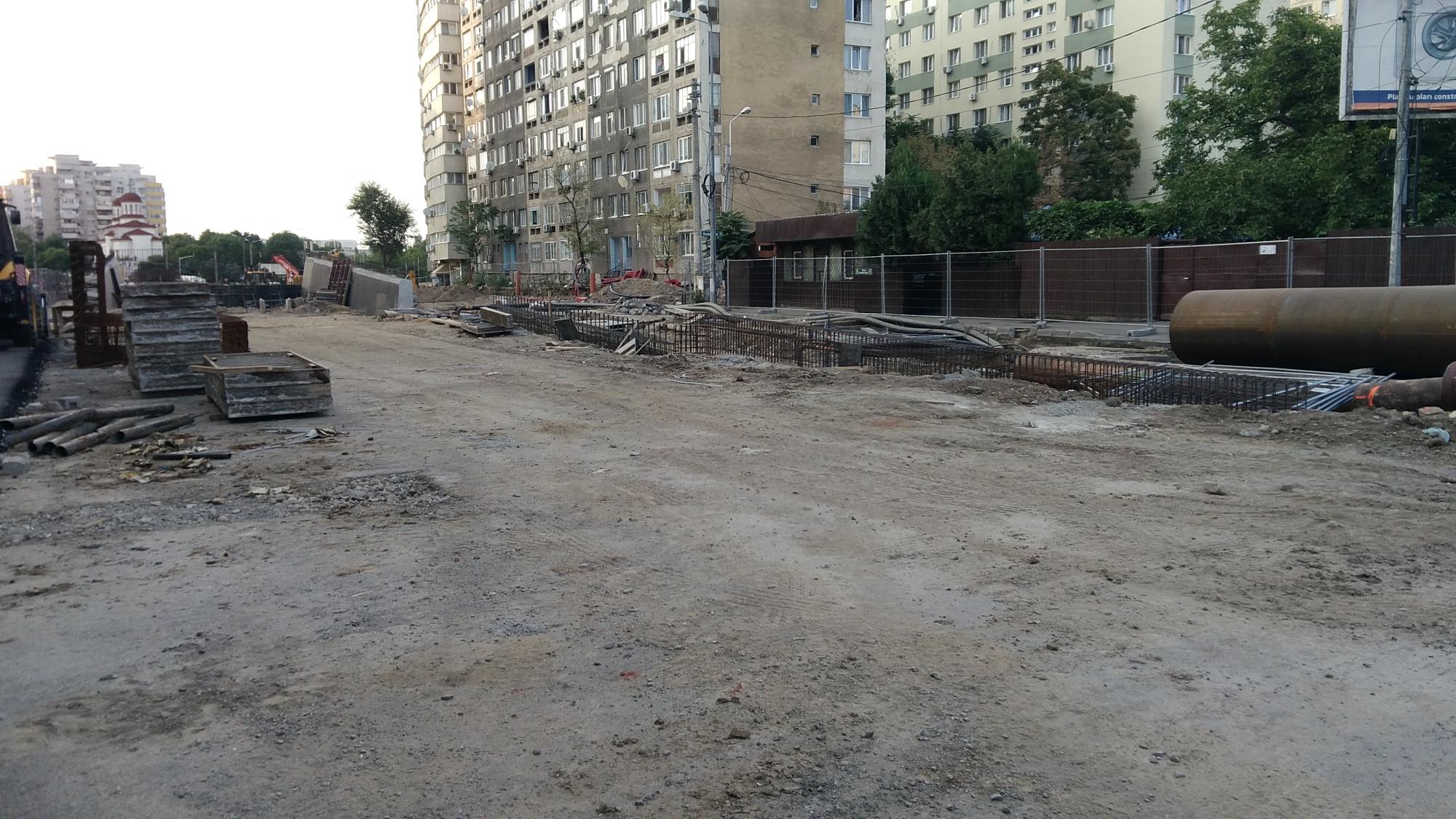 Cea mai mare mobilizare este la rampa Tei, s-au pus bordurile pe parapetul drept si jumatate din borduri pe parapetul stang, s-au montat stalpii de iluminat centrali (ghinion de nesansa, sunt tot gen scobitoare, nici ce poate susptine o eventuala retea aeriana pentru tramvai) si se balasteaza-compacteaza intensiv.
