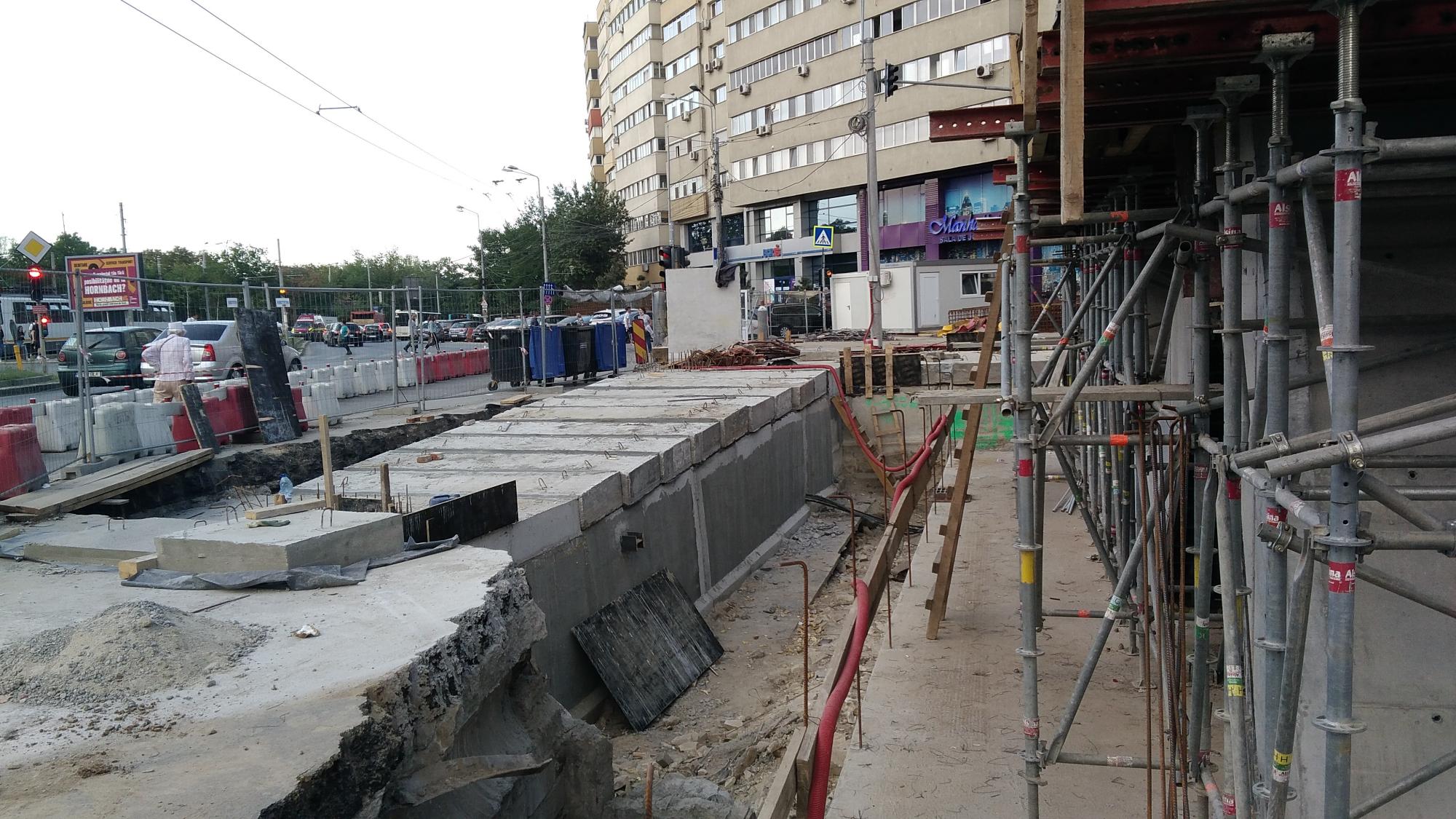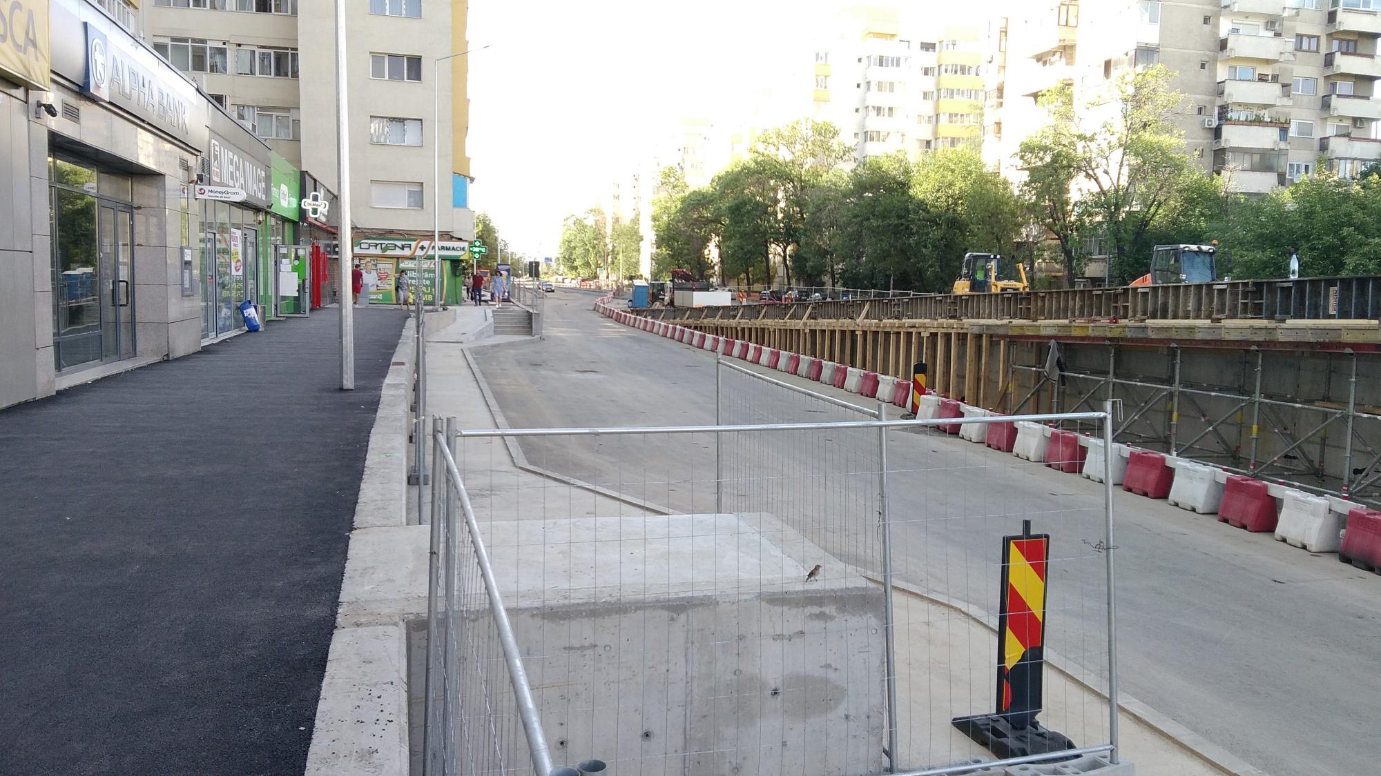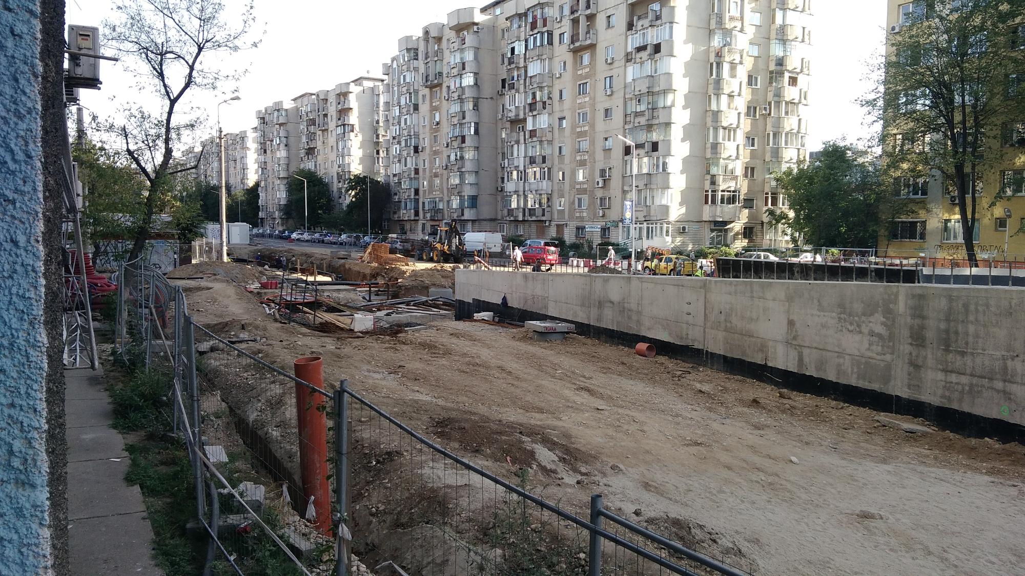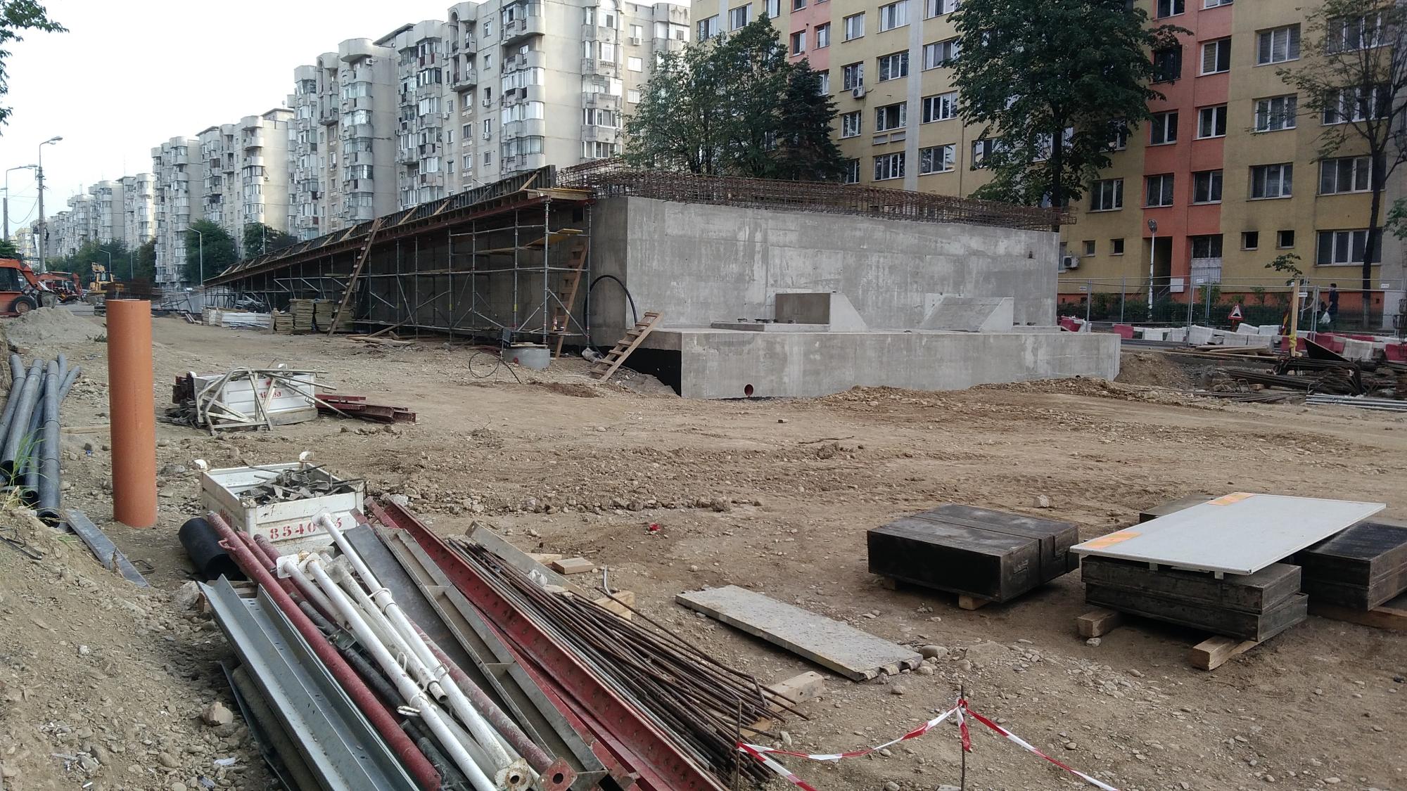 Cea mai mare mobilizare este la rampa Tei, s-au pus bordurile pe parapetul drept si jumatate din borduri pe parapetul stang, s-au montat stalpii de iluminat centrali (ghinion de nesansa, sunt tot gen scobitoare, nici ce poate susptine o eventuala retea aeriana pentru tramvai) si se balasteaza-compacteaza intensiv.