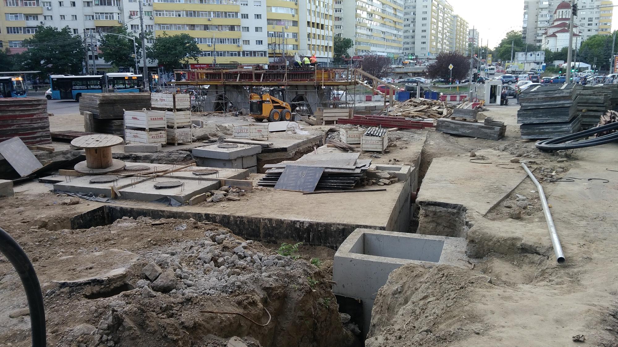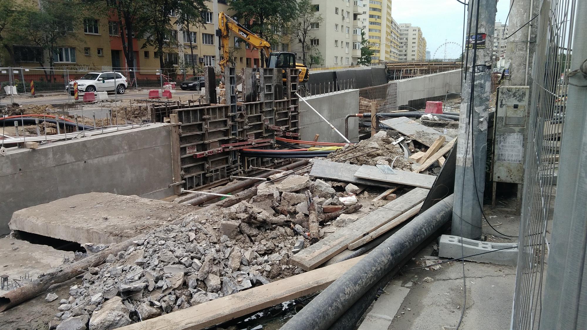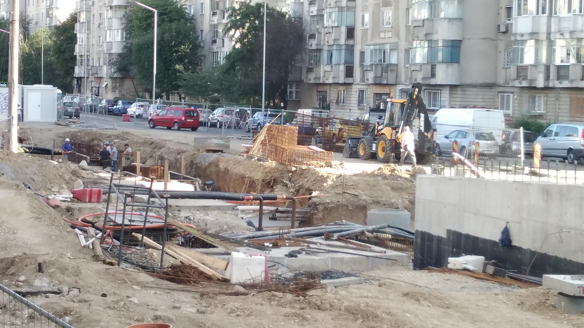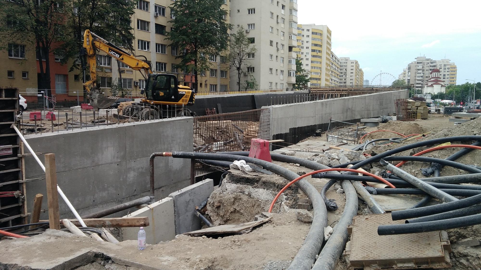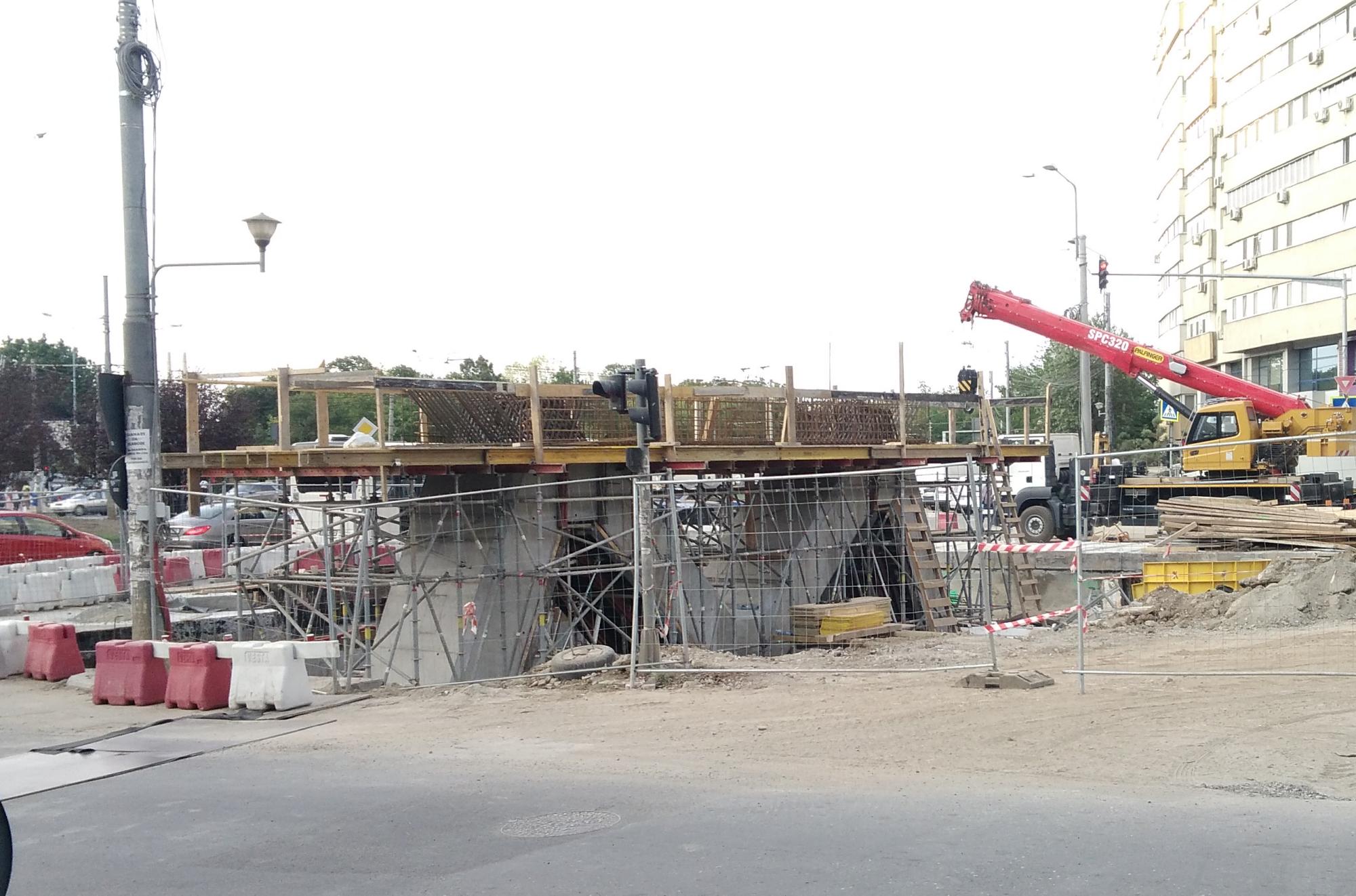 Cea mai mare mobilizare este la rampa Tei, s-au pus bordurile pe parapetul drept si jumatate din borduri pe parapetul stang, s-au montat stalpii de iluminat centrali (ghinion de nesansa, sunt tot gen scobitoare, nici ce poate susptine o eventuala retea aeriana pentru tramvai) si se balasteaza-compacteaza intensiv.