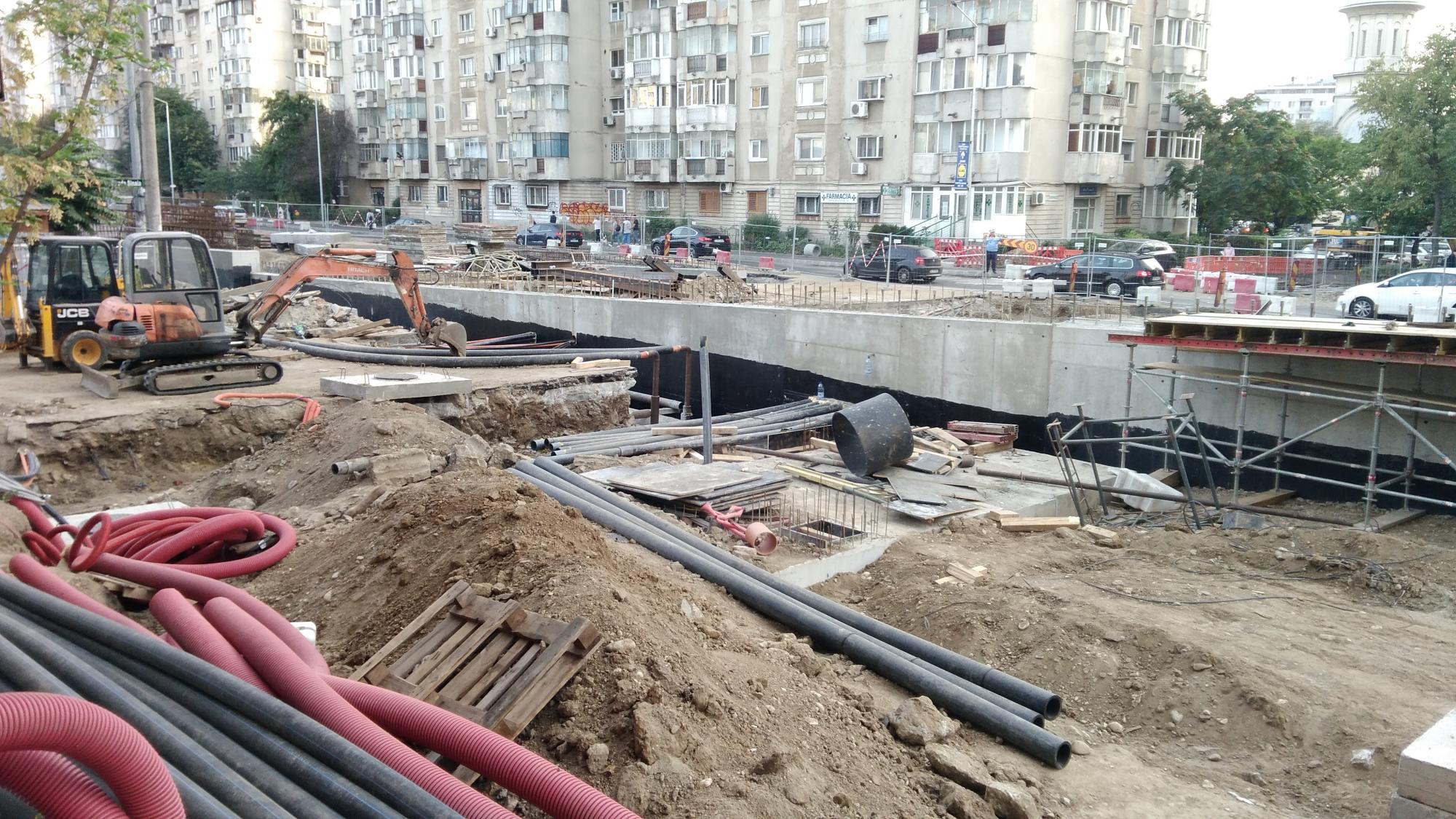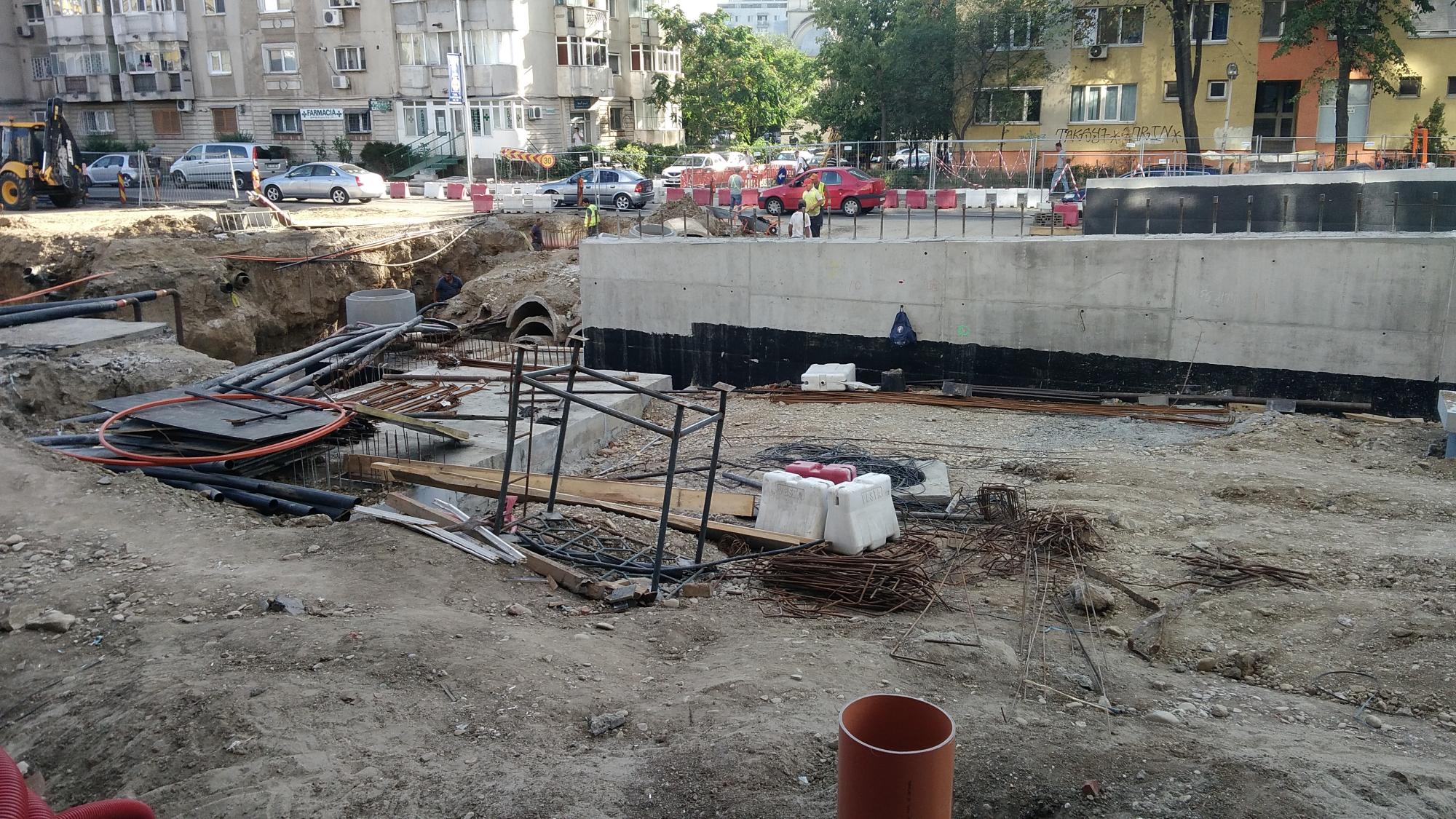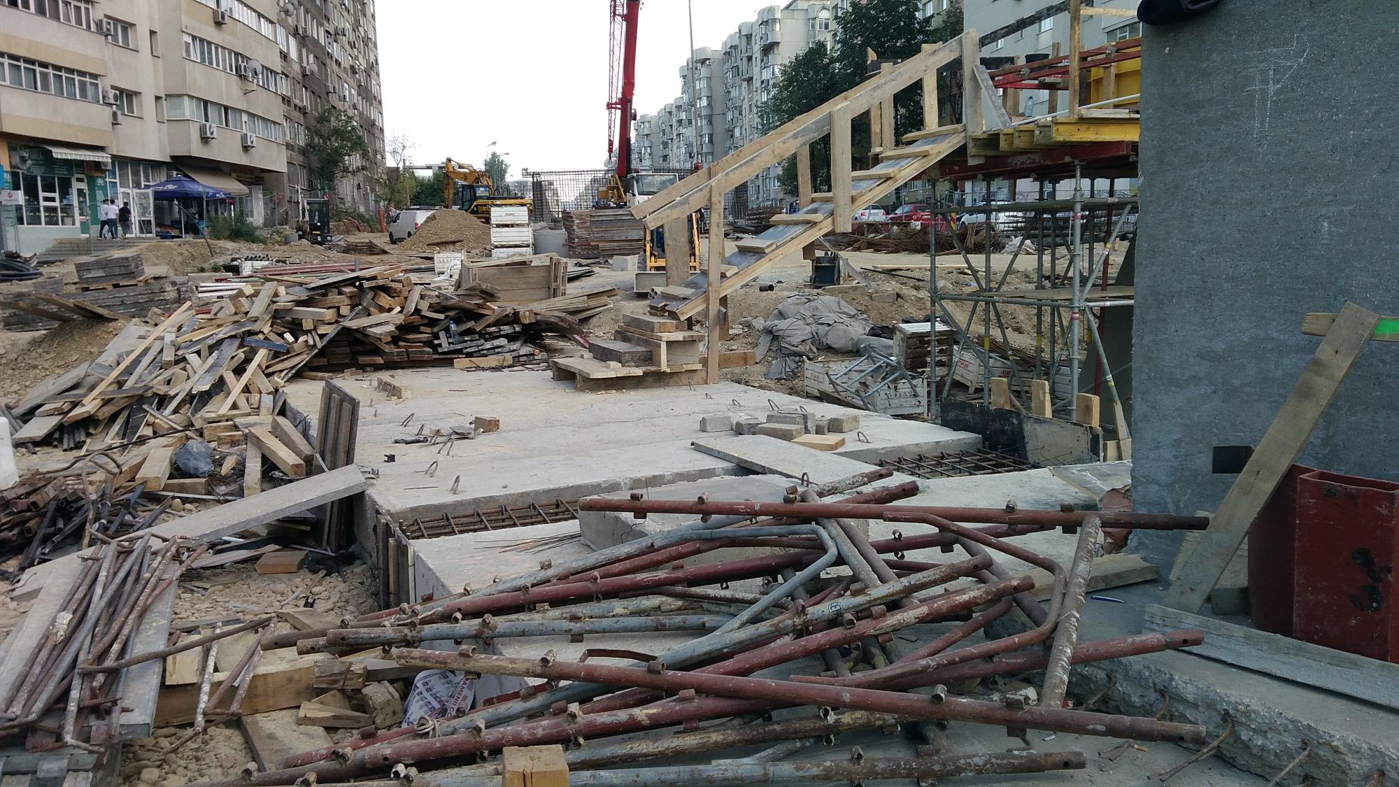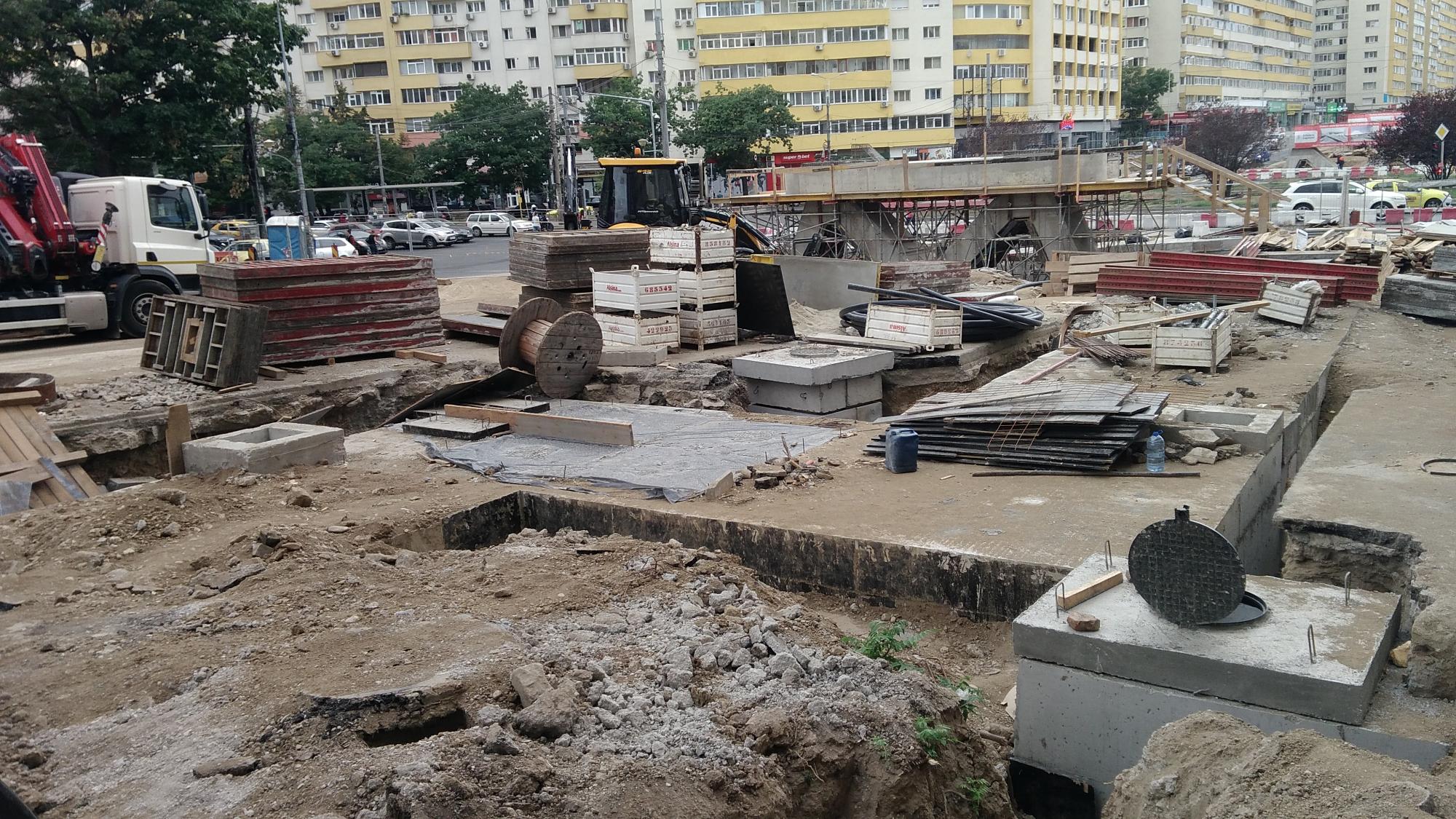 Cea mai mare mobilizare este la rampa Tei, s-au pus bordurile pe parapetul drept si jumatate din borduri pe parapetul stang, s-au montat stalpii de iluminat centrali (ghinion de nesansa, sunt tot gen scobitoare, nici ce poate susptine o eventuala retea aeriana pentru tramvai) si se balasteaza-compacteaza intensiv.