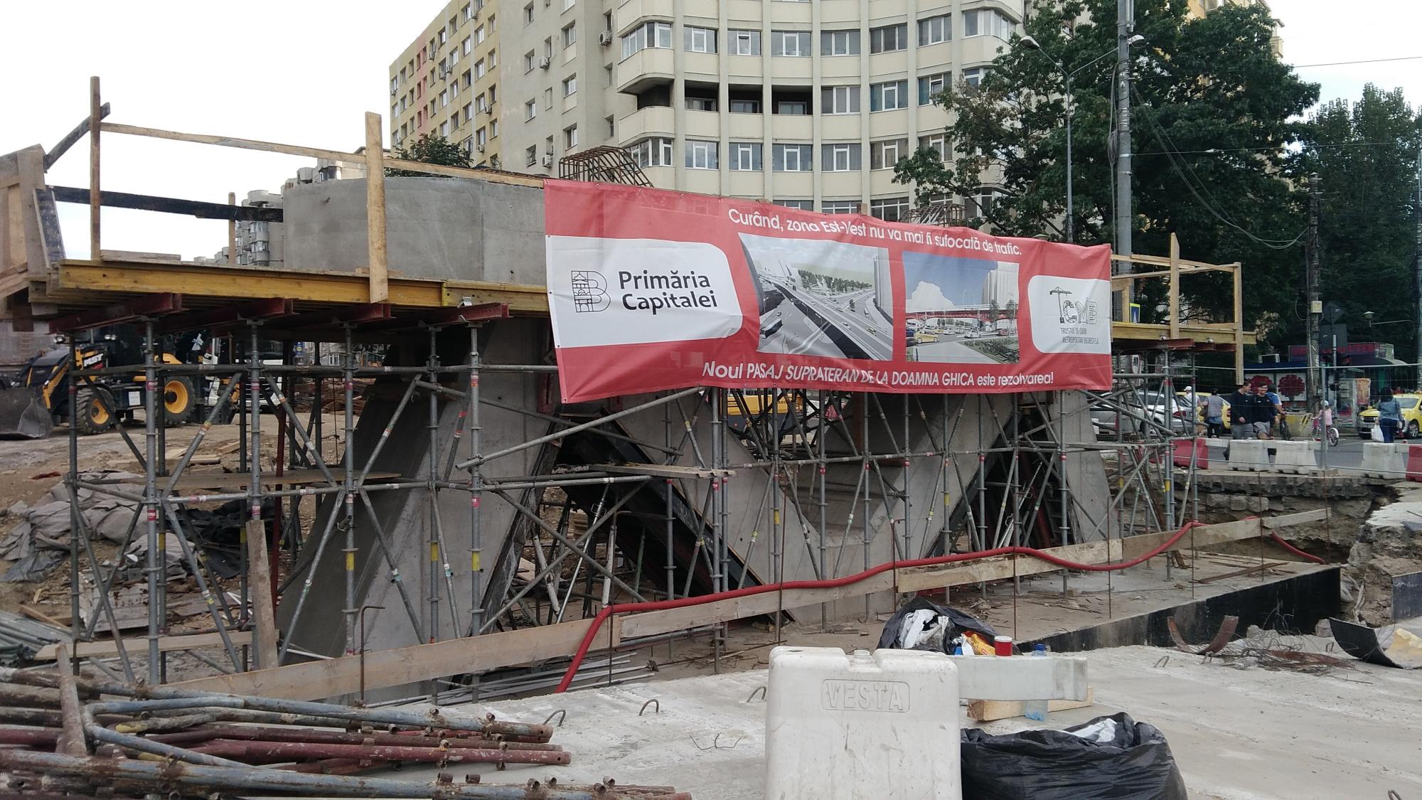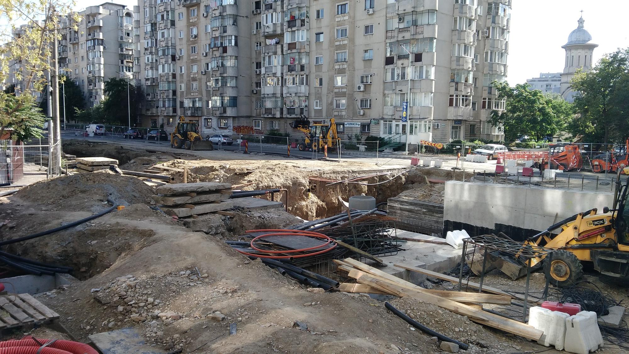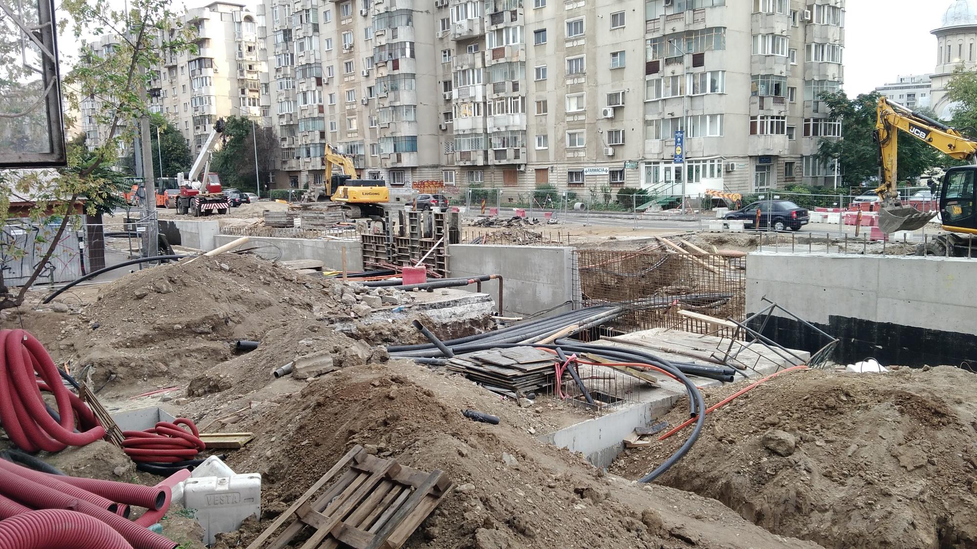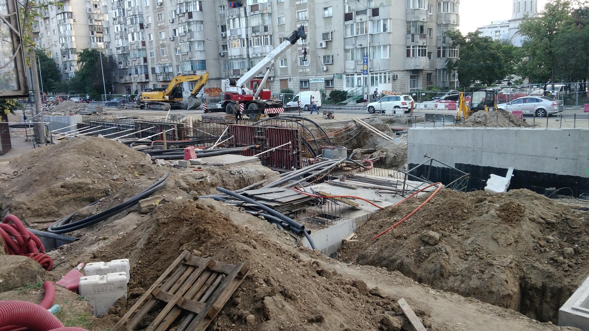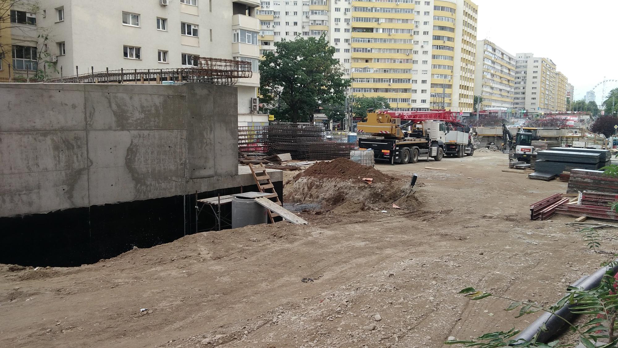 Cea mai mare mobilizare este la rampa Tei, s-au pus bordurile pe parapetul drept si jumatate din borduri pe parapetul stang, s-au montat stalpii de iluminat centrali (ghinion de nesansa, sunt tot gen scobitoare, nici ce poate susptine o eventuala retea aeriana pentru tramvai) si se balasteaza-compacteaza intensiv.