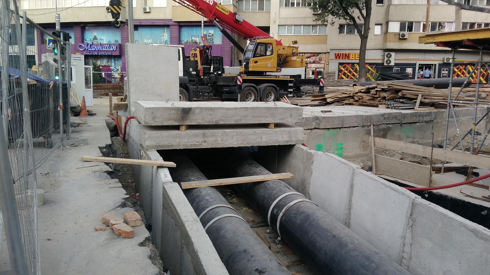 S-au pus prefabricatele capac peste termoficare langa pila raiffesisen. Acum se vede mai bine ciudatenia termoficarii care urca de sub nivelul carosabilului deaspur lui pe acel mic tronson paralel cu pila.