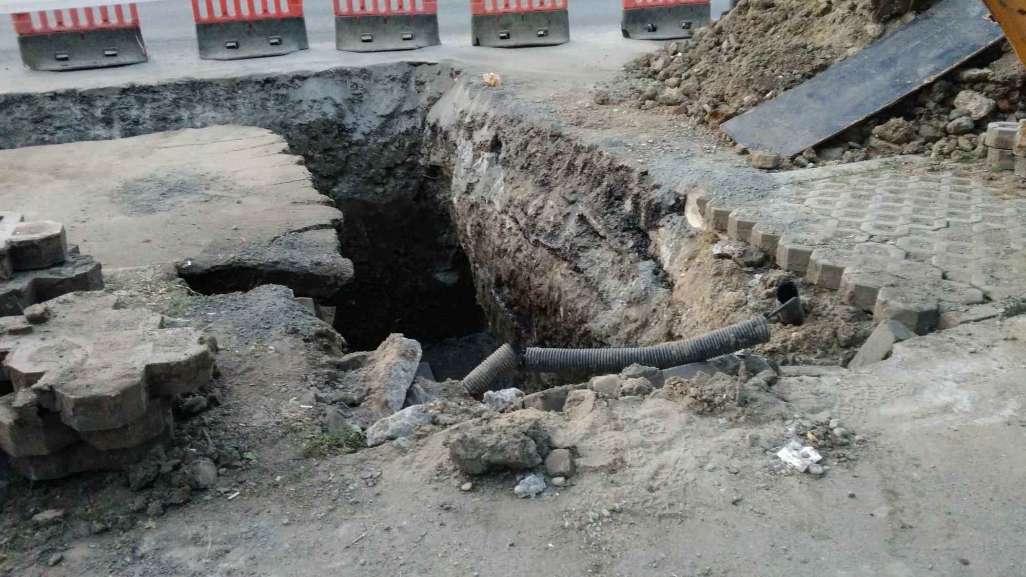 Se sapa la canalizare in coltul gardului bisericii, probabil vor avansa spre intersectie.