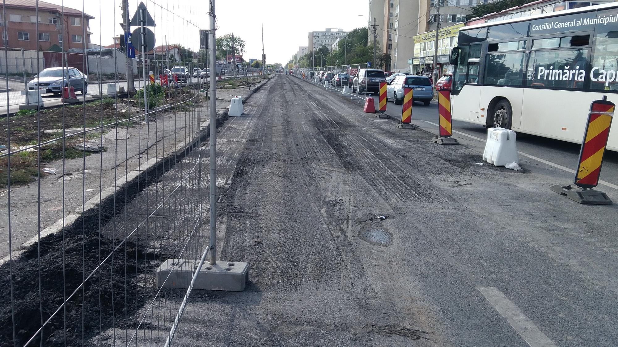S-a mutat circulatia pe sensul spre Raul Doamnei pe asfaltul nou. Se decoperteaza asfaltul vechi de pe zona pe care s-a circulat pana acum.