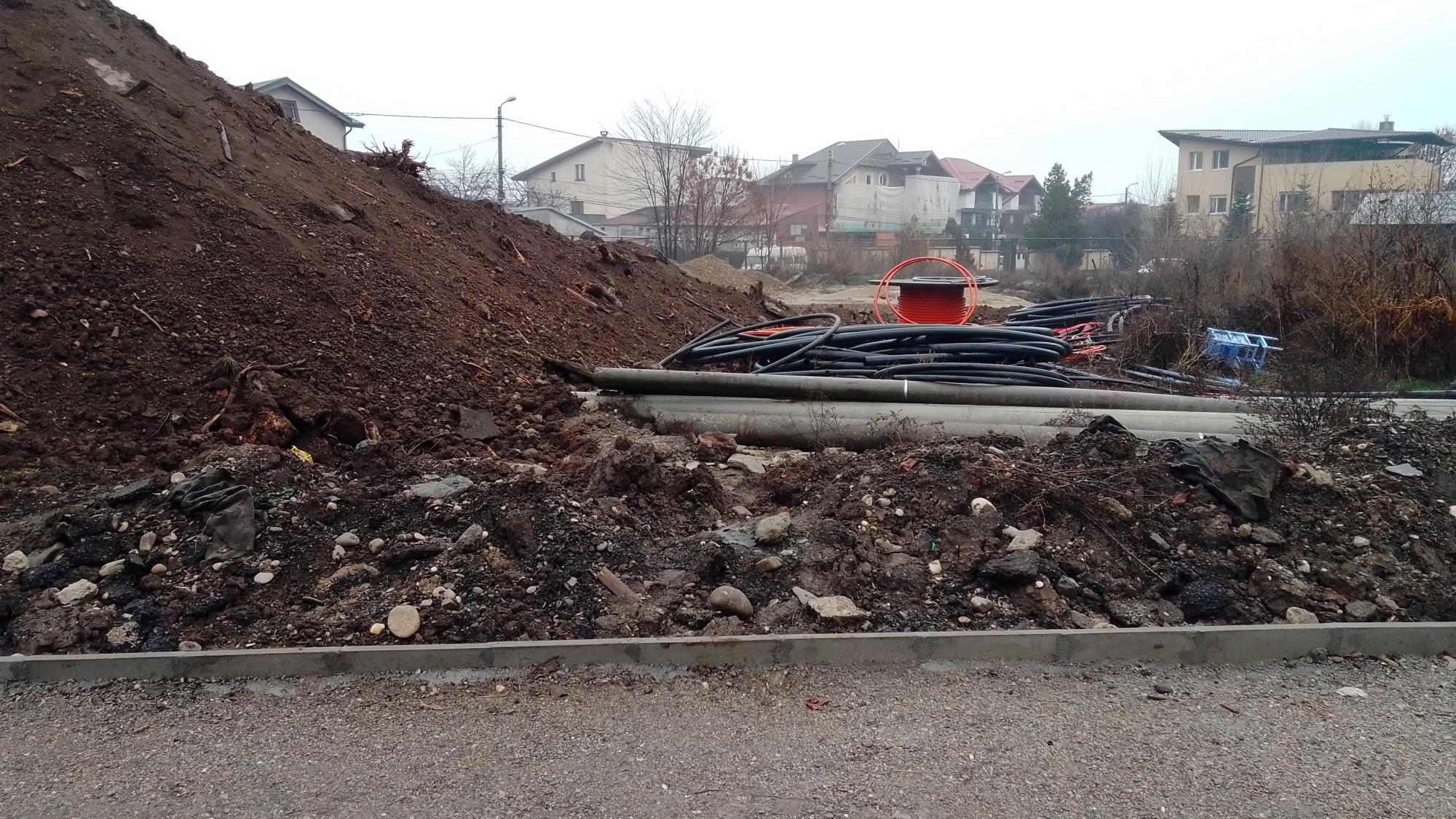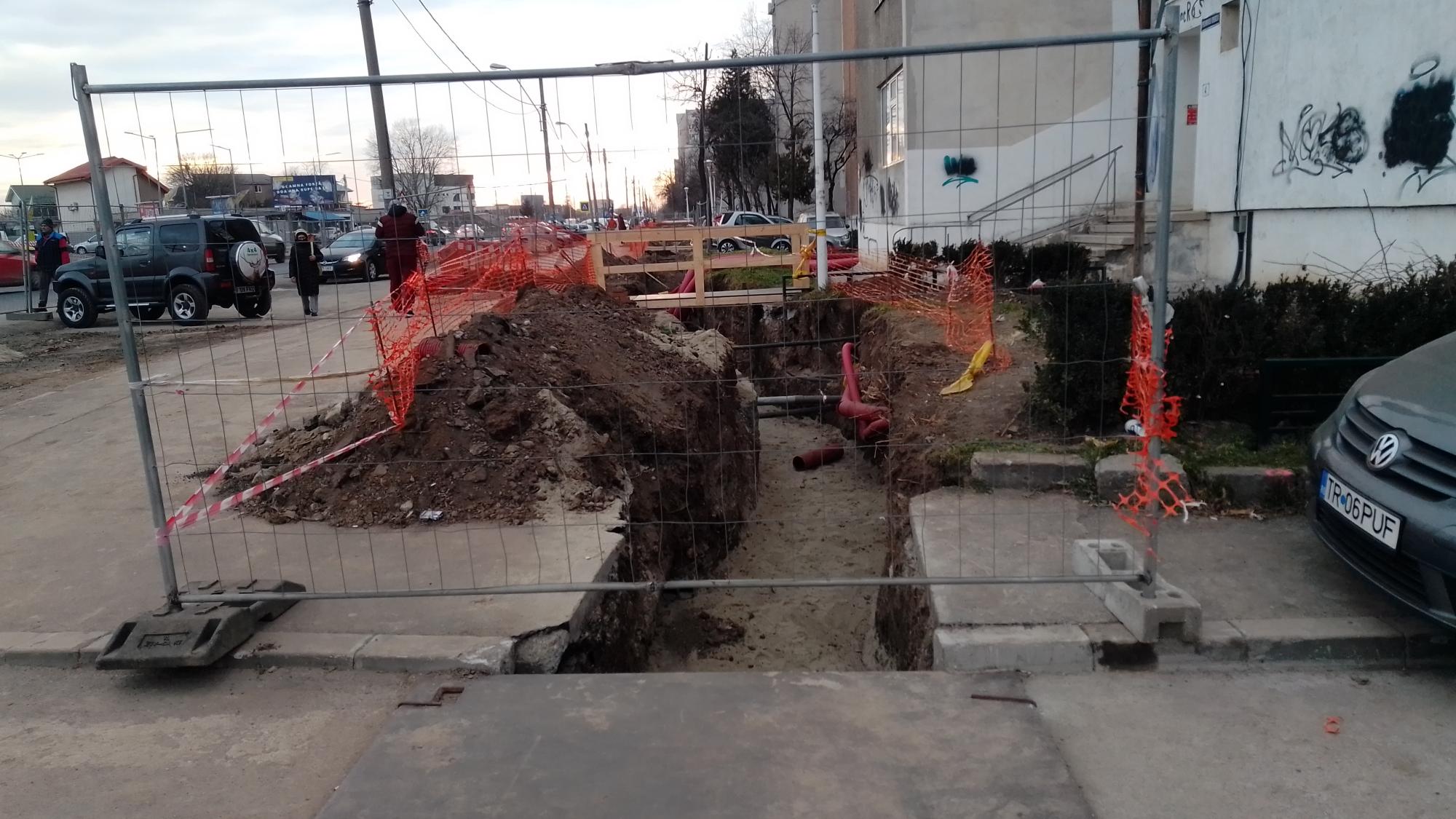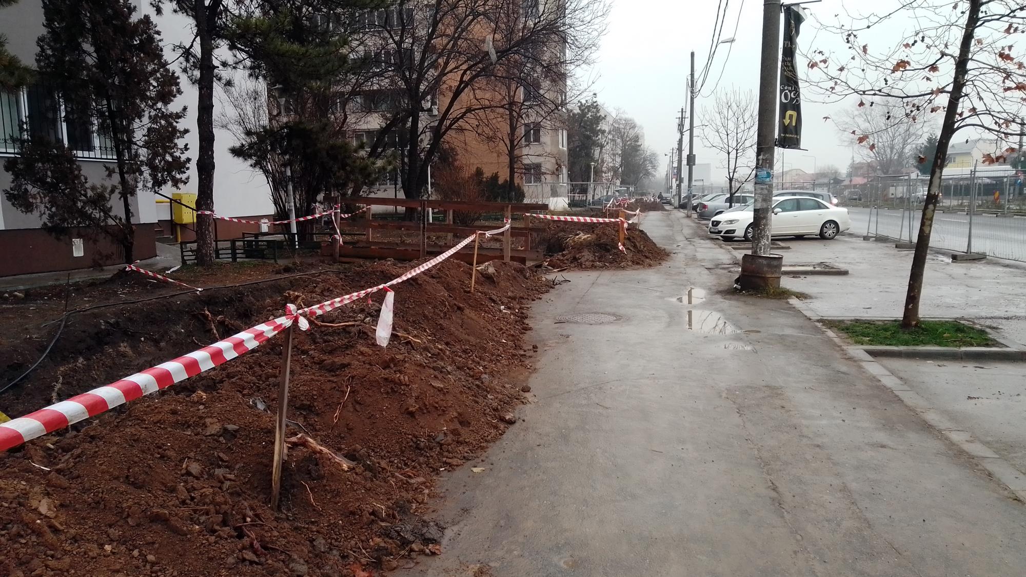 Pe partea blocurilor au mai sapata la santul cu copexul rosu, au ajuns pana la primul bloc de patru etaje, dupa care santul pleaca spre carosabil.