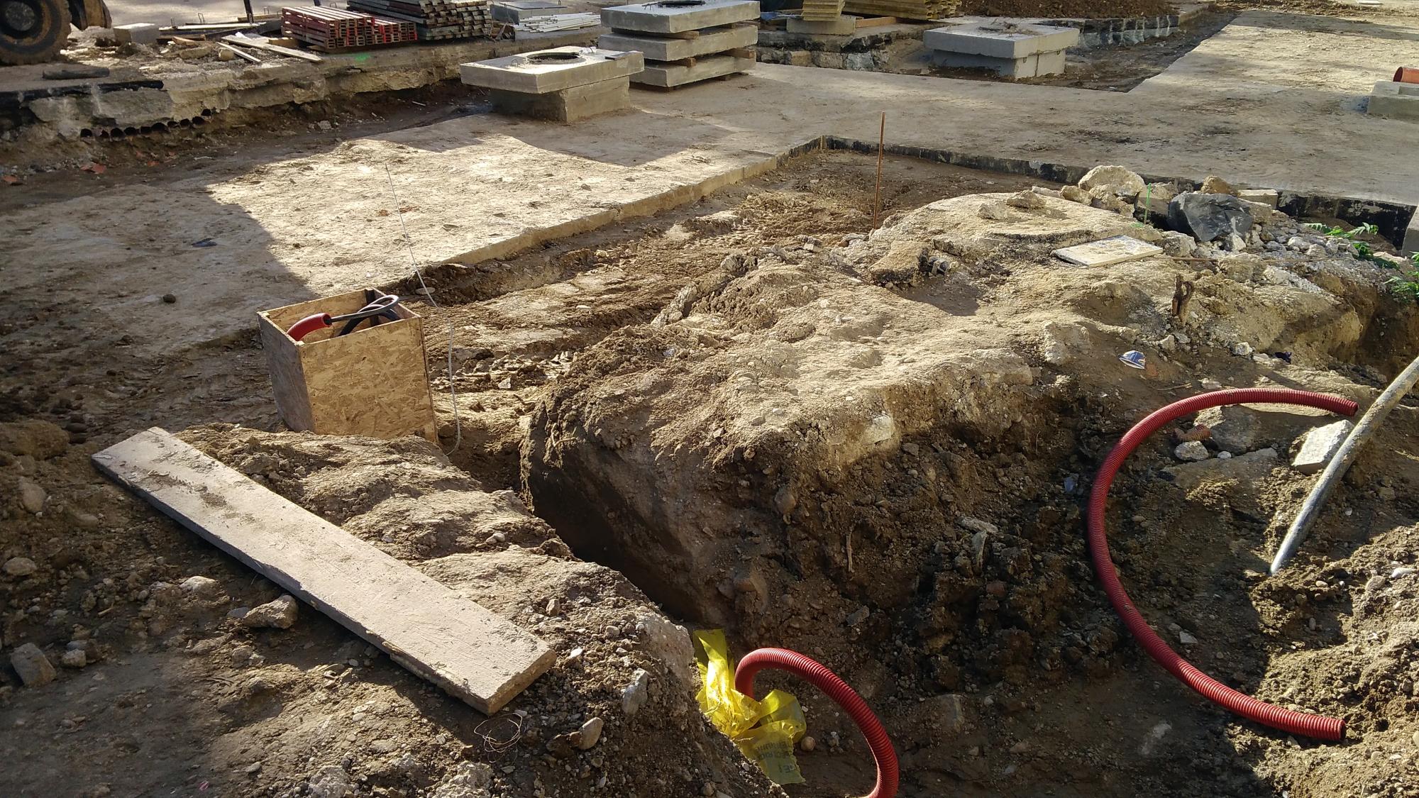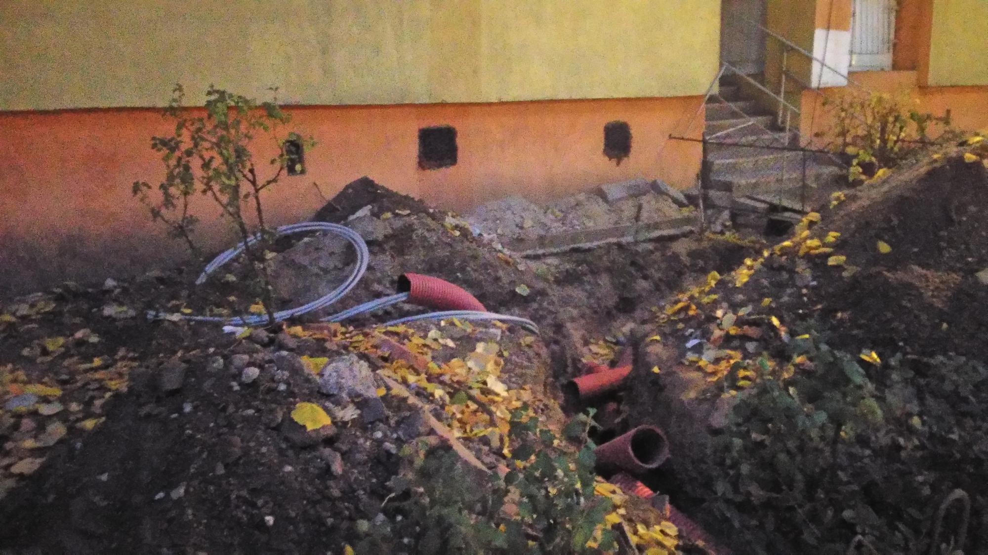 7. La Gherase au taiat din armaturile care ies din radierul caminului nou ca sa poata face conexiune la teava existenta. Vor folosi teava K9 albastra din fonta ductila aparent si am vazut si niste flanse in zona plus o vana! Deci tubul ala de beton s-ar putea sa fie nu canalizare ci... apeduct?
