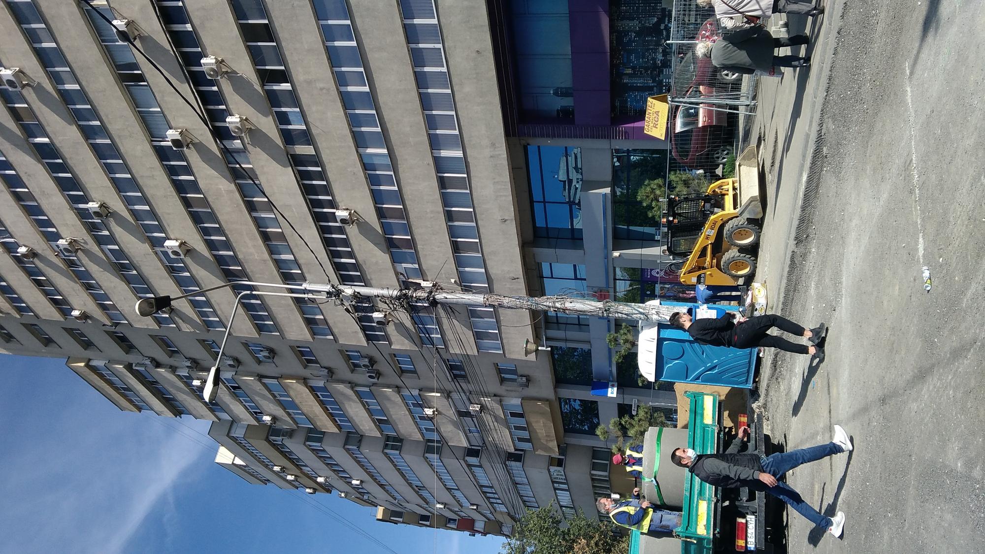 1. Se monta pompa de betoane remorcabila pe 1 axa in dreptul primei scari a blocului care incepe de la Str. Sinaia. Cofrasera treptele noi de la scarile blocului. Sa speram ca apuca sa betoneze si ceva trotuar.