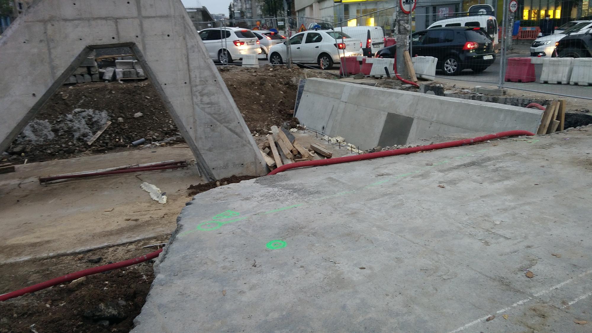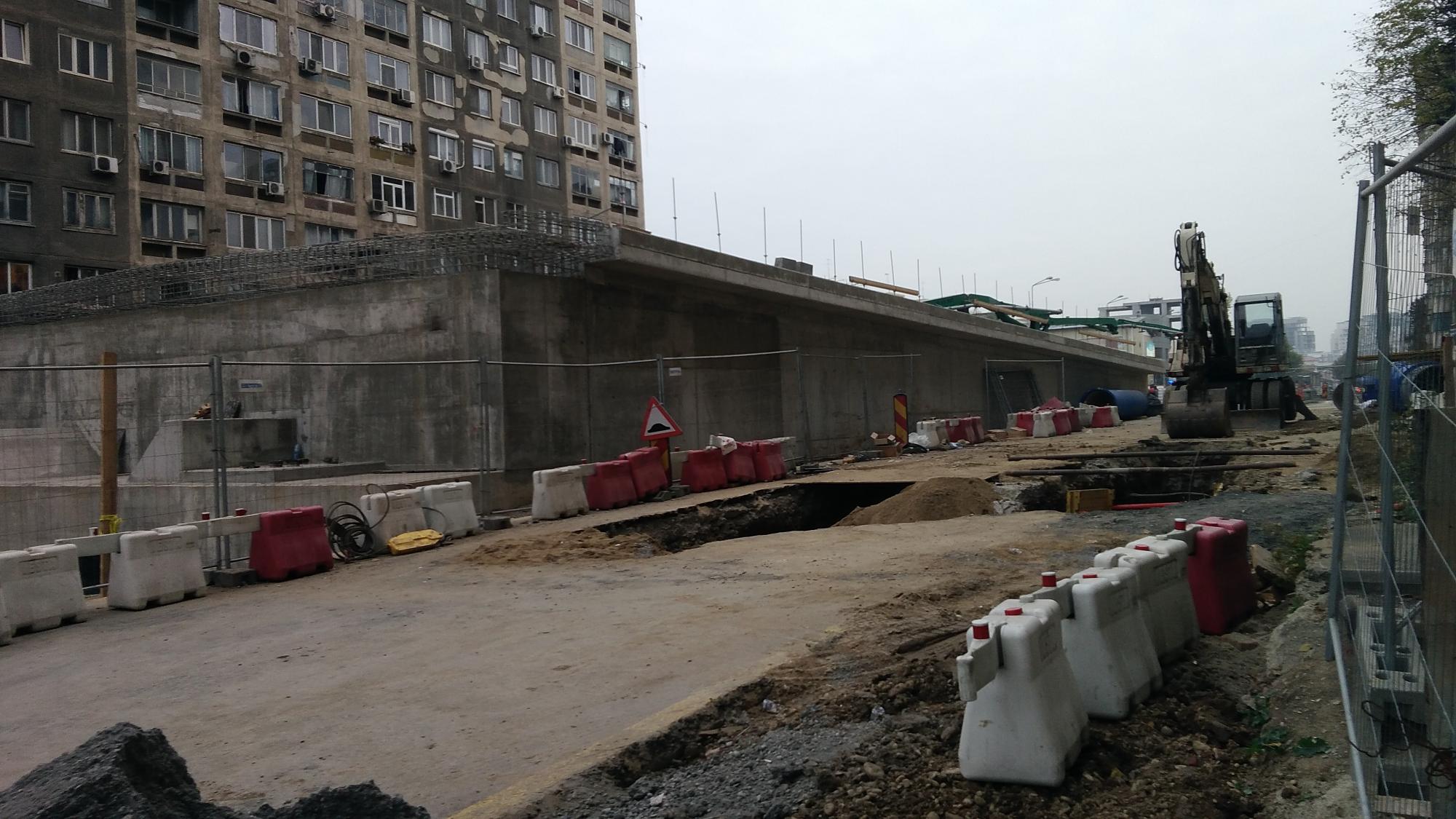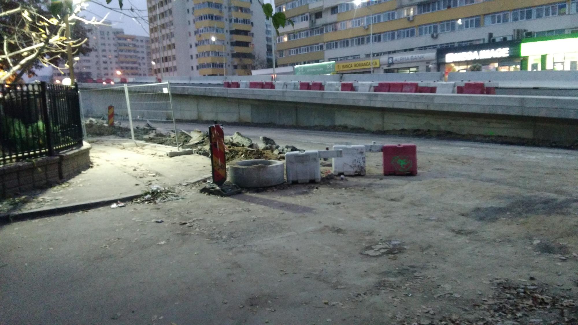 2. Nu se misca nici un fir de praf in zona BCR, trotuarul ala si banda 1 sunt incremenite asa de cel putin saptamana trecuta, presupun ca are ceva de-a face cu canalizarea ca altfel nu inteleg de ce stagneaza