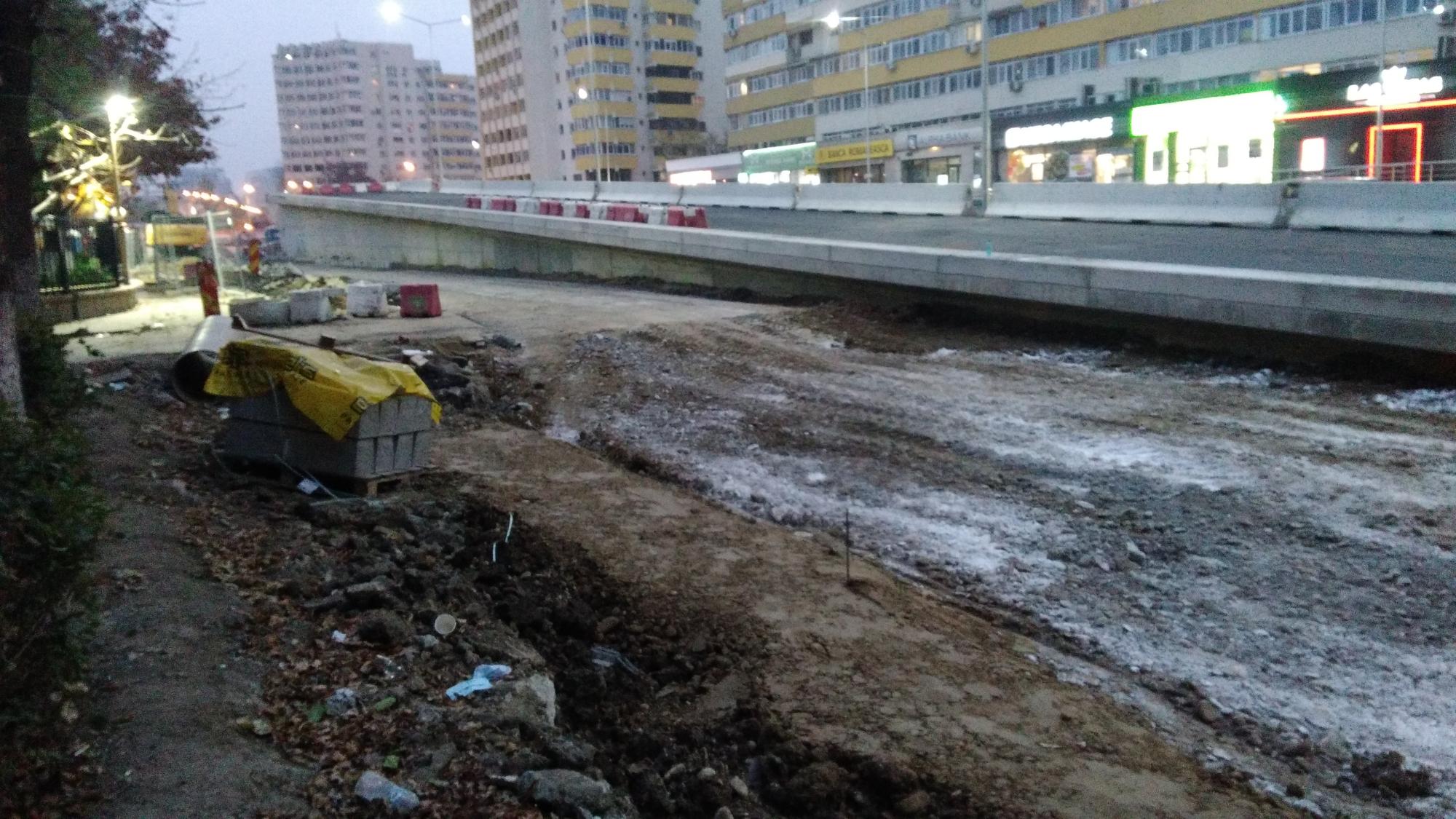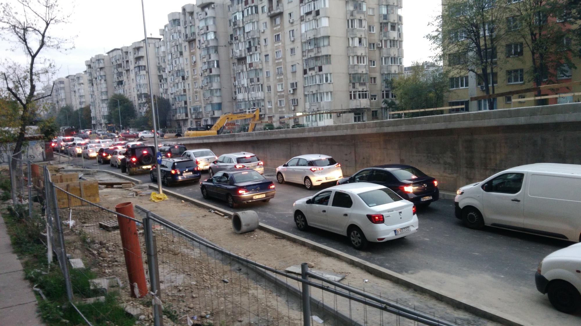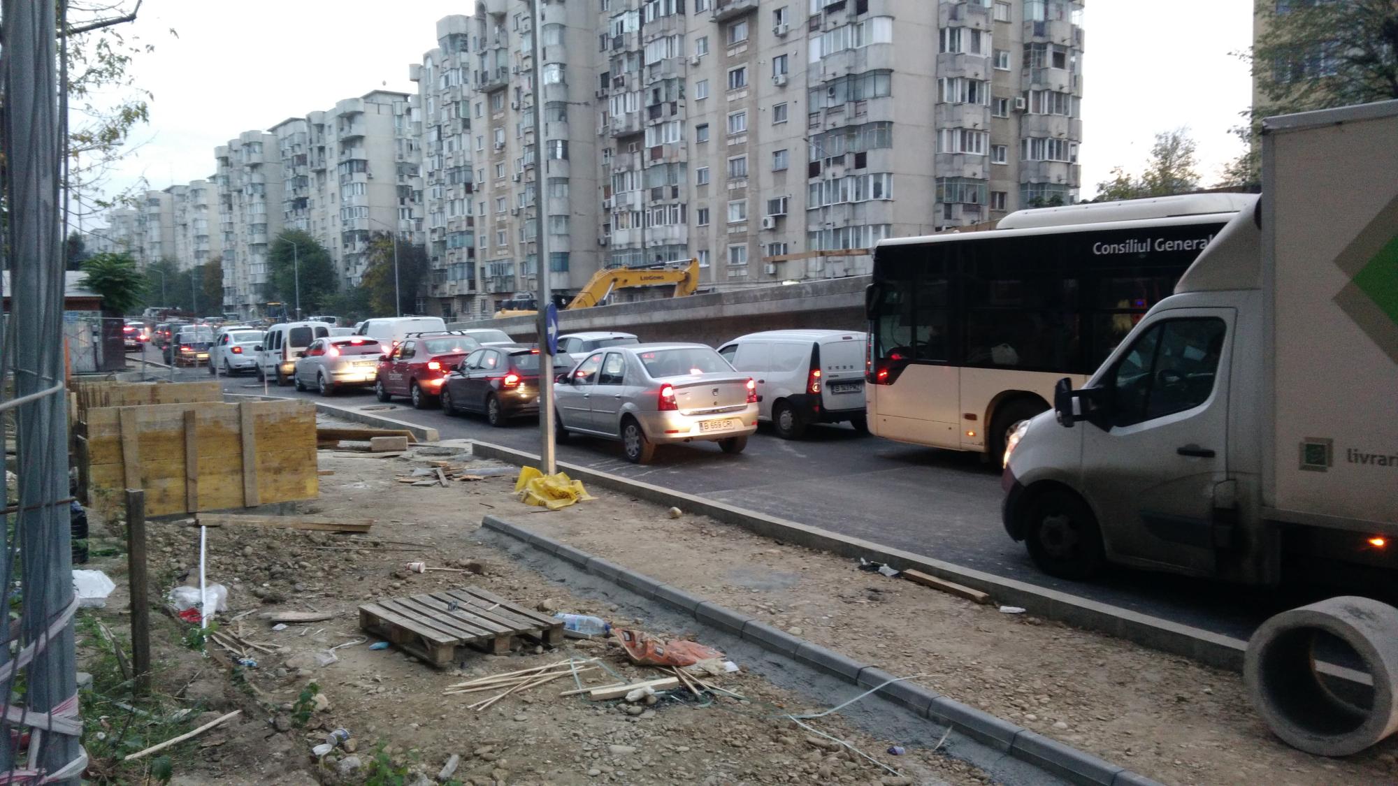2. Nu se misca nici un fir de praf in zona BCR, trotuarul ala si banda 1 sunt incremenite asa de cel putin saptamana trecuta, presupun ca are ceva de-a face cu canalizarea ca altfel nu inteleg de ce stagneaza