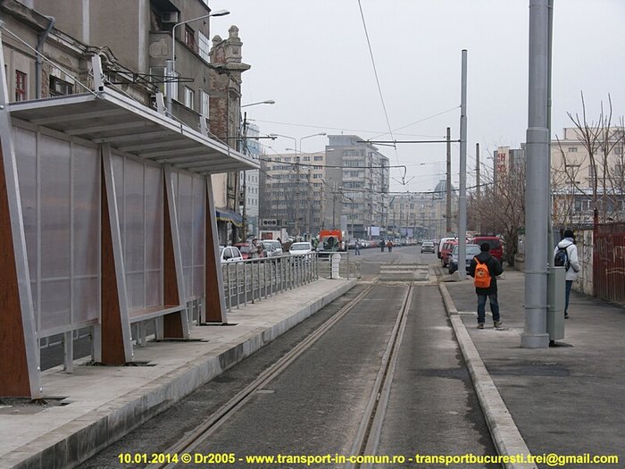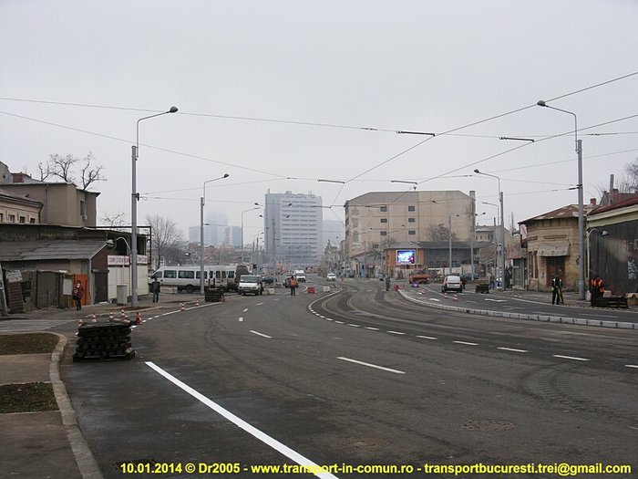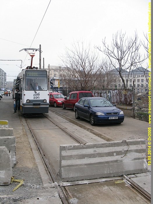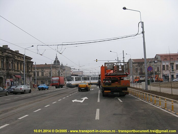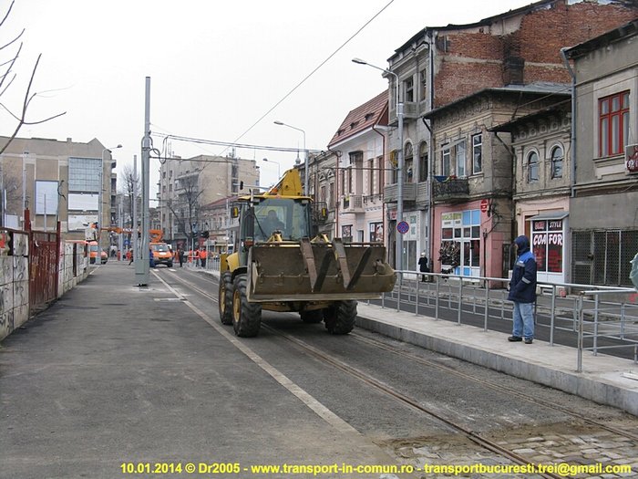 Înainte de intersecţia cu Cal. Berzei se face o mică pauză, pentru a da timp muncitorilor să îşi mute utilajele de pe linie: