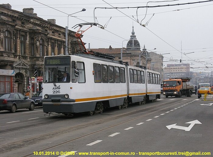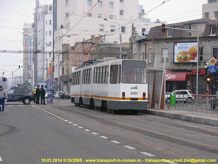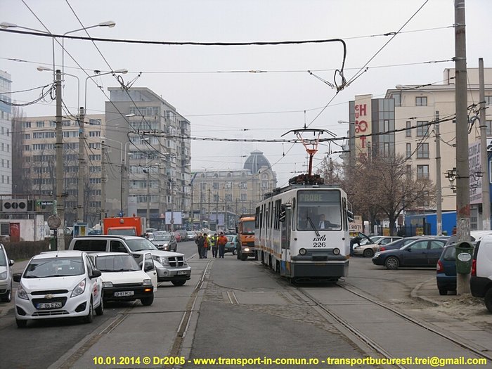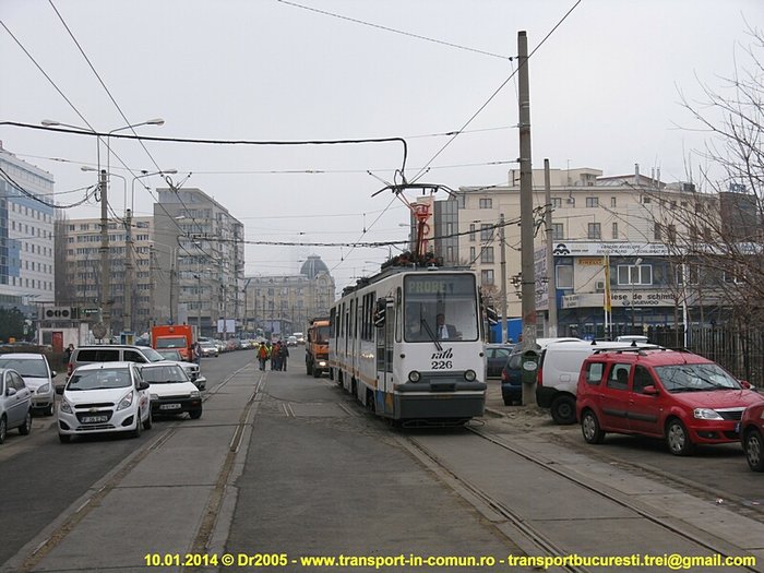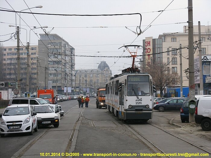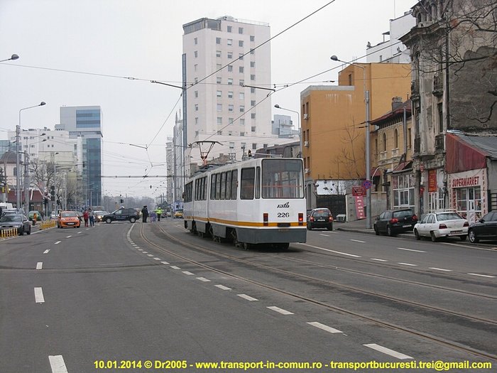 În încheiere, o poză cu #226 luând curba dinspre Cal. Berzei spre Str. Buzeşti. Vagonul trebuia să meargă să întoarcă la Banu Manta, dar din cauza maşinilor parcate în intersecţia cu Dr. Felix (le-a ridicat poliţia) a trebuit să meargă în Depoul Bucureştii-Noi: