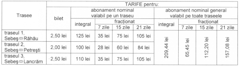 Tarifele, stabilite prin H.C.L. nr. 265/29.10.2015, sunt măricele:
