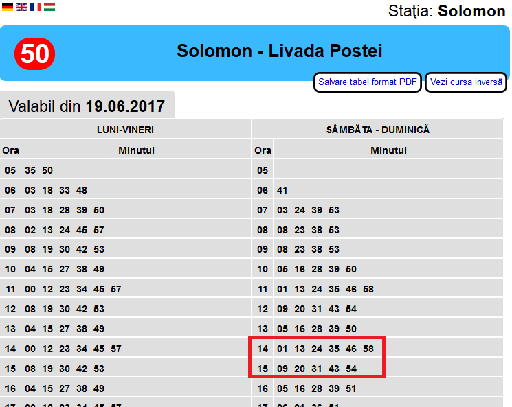 Acum cu 50... pentru început, un print screen de pe http://www.ratbv.ro cu orarul liniei 50: