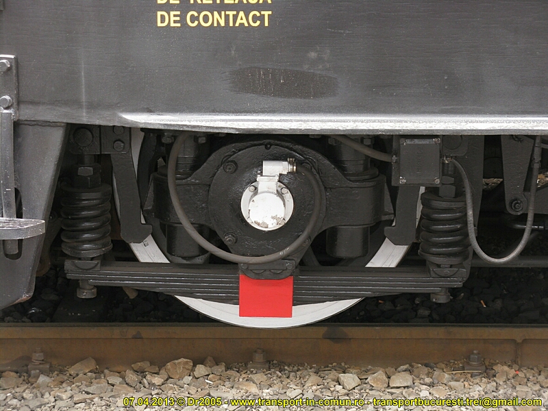 Pe cutiile de osie este sigla BDJ (Căile Ferate Bulgare), iar plăcuţa este în engleză. Oare locomotiva provine din Bulgaria? Numărul de fabricaţie este greu lizibil.