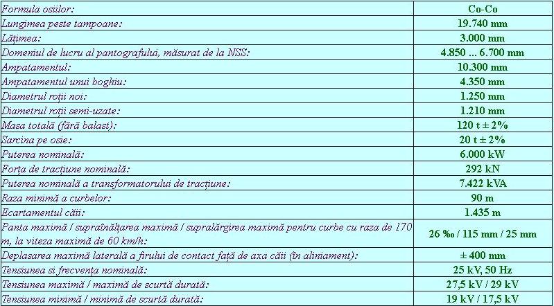 Locomotiva este echipată cu un singur transformator principal, ce asigură atât alimentarea celor şase m.e.t.-uri , cât şi a serviciilor auxiliare şi a încălzirii trenului. Curentul alternativ utilizat are frecvenţa nominală de 50 Hz. Caracteristici principale: