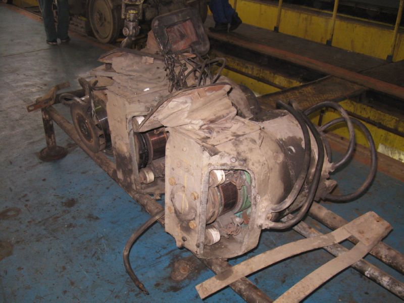 Observaţi rotorul şi periile colectoare la primul motor, iar la cel din fundal se observa şi zona pe care acţionează frâna de staţionare. La partea superioara se observă şi burduful prin care se asigură ventilarea forţată.