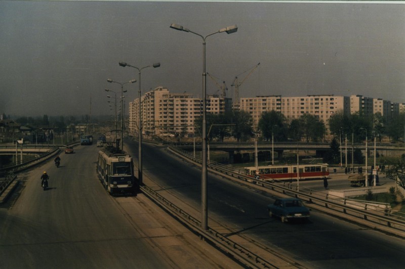 Iar in a treia poza, este V2A-ul 4028 cuplata cu 4029 zisa si in dubla-tractiune, pe linia 9 la Piata Sudului. Vagoanele apartineau sigur de depoul Alexandria la acea vreme. Nu imi dau seama pe unde circula 9, daca o lua pe calea Vacaresti sau tot pe Oltenitei la acea vreme.