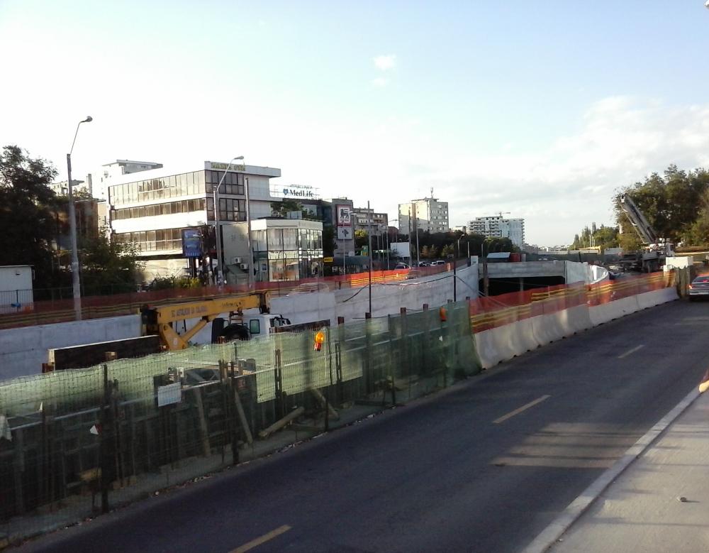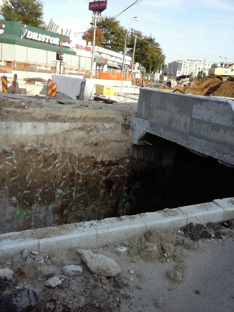Skip intro. S-a lipit cartonul (hidroizolatia) pe restul de rampa intrare Vacaresti, maine daca au material astern binderul, s-au buciardat la baza peretii rampei de iesire Vacaresti in vederea executarii operatiunilor identice, amulsie, carton, binder. Noutate absoluta, s-a dat cu emulsie sensul Vacaresti-Nitu Vasile DIN pasajul rutier, deci teoretic ar urma carton, se polizeaza peretii rampei Nitu Vasile si pare ca se baga dopuri (posibil ancore chimice) in diversele fisuri din pereti pentru etansarea scurgerilor. Un muncitor suda ceva in zona tzarcului PP3 (pasajul spre metrou). S-au adus (sau mutat la vedere) paleti cu borduri, pe partea cu intrarea in Castani.