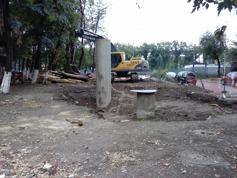 Caminul de varsare a canalizarii deviate de la DT33 in ovoidul de pe centrul bulevardului.