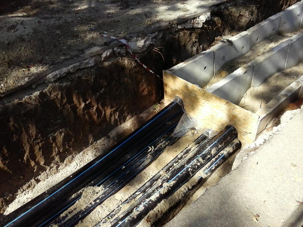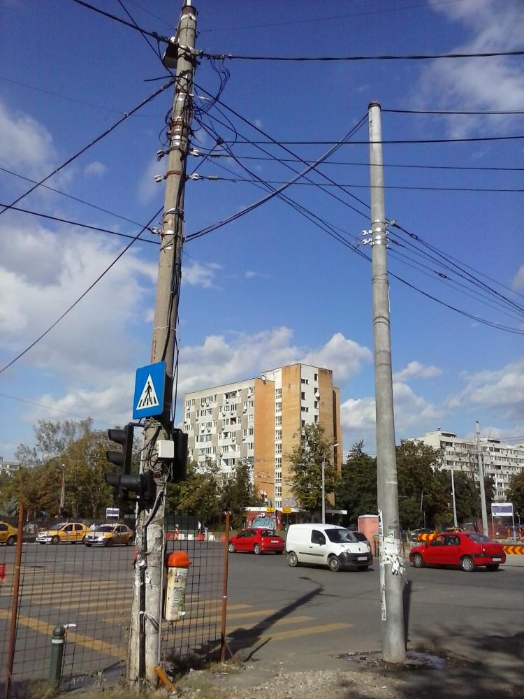 Avem cabluri trase prin tuburi, pentru iluminat. Stalpi metalici... ca peste tot.