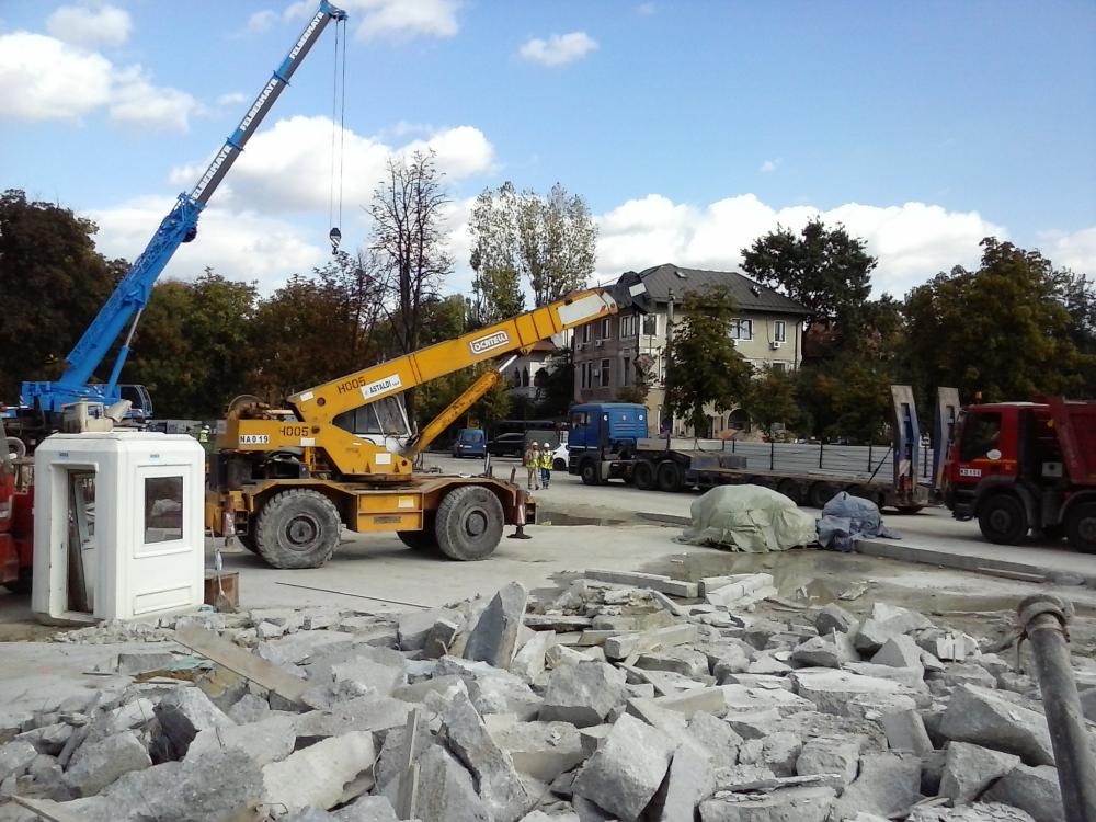 Asta-i macaraua care s-a ocupat de scarile rulante de la Orizont.