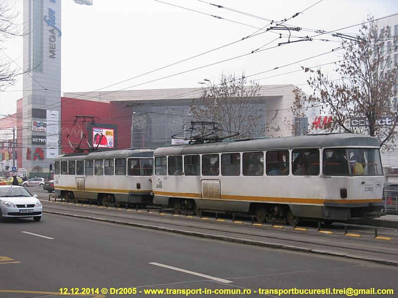 #3334+#3385 - linia 25, Bd. Timişoara (pantograful celui de-al doilea vagon este coborât deoarece piesa de separaţie din intersecţie era ruptă)