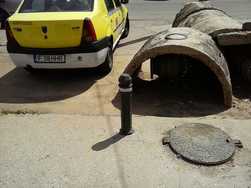 Stalpul de troleu provizoriu statea in calea unei canalizari pluviale ce merge la caminul de pe colector de la statia de troleu... :x