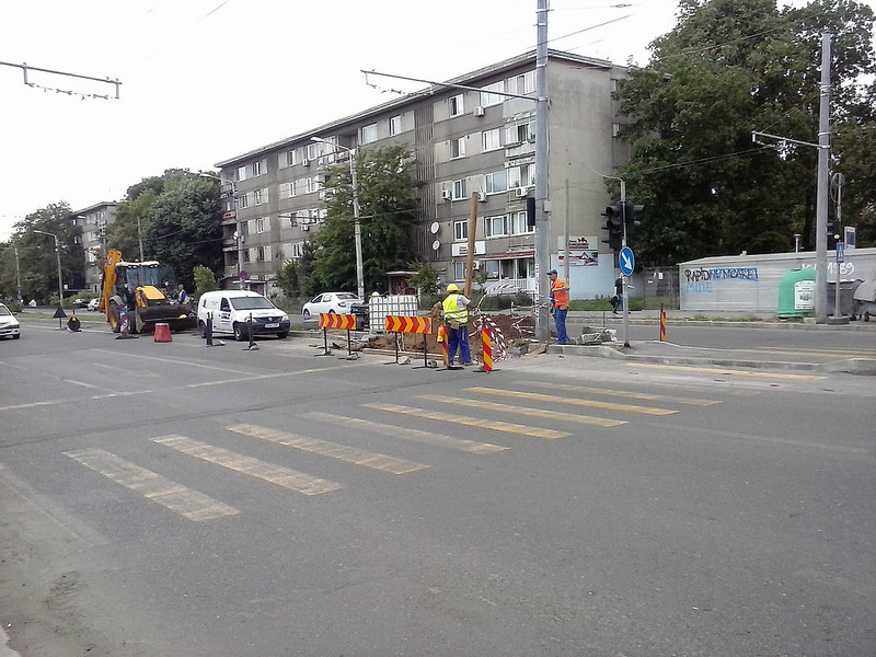 Favorit, se scormoneste dupa canalizare in zona de intersectie DT cu Sibiu. Au compactat ca sa aibe ce scurma.