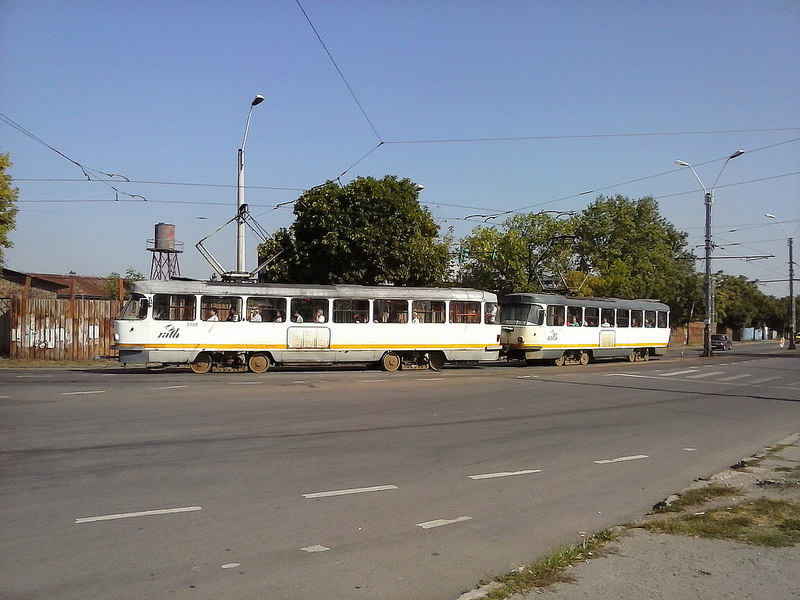 #3334+#3385 - linia 25, Bd. Timişoara (pantograful celui de-al doilea vagon este coborât deoarece piesa de separaţie din intersecţie era ruptă)