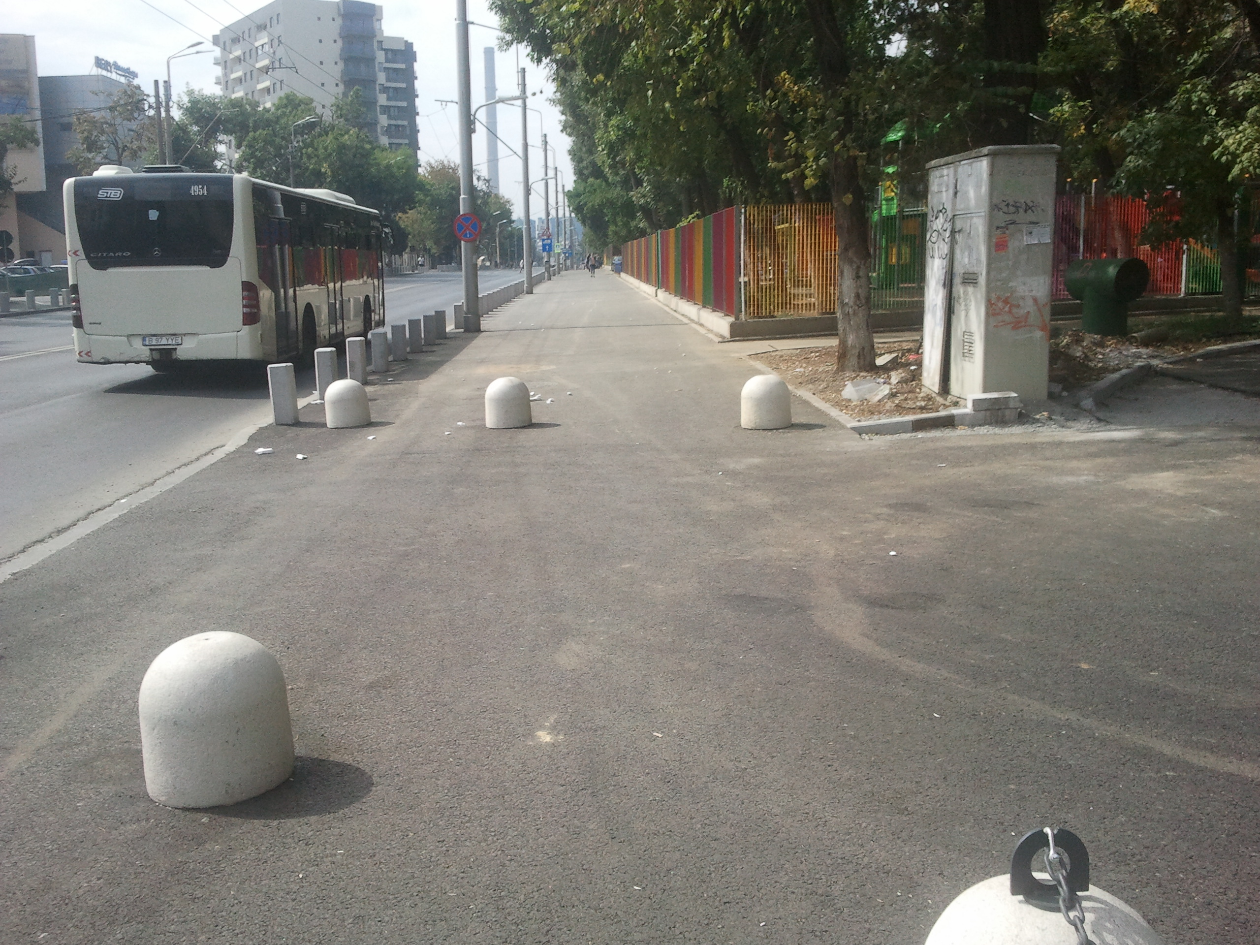 Continuare. Concluzie, pista de biciclete e o gluma poasta, de ochii lumii, urmeaza traiectoria trotuarului, la cota sa, nu a carosabilului, deci ceva gen pentru figuranti nu pentru comuteri. Pacat, n-o sa stea cineva sa faca slalom cu bicicleta printre 'sezloangele' de fite trantite in trotuar ale bodegilor din parterul blocurilor koreene, cu care au fost 'cadorisiti' inaltii functionari de pe vremea ailalta.