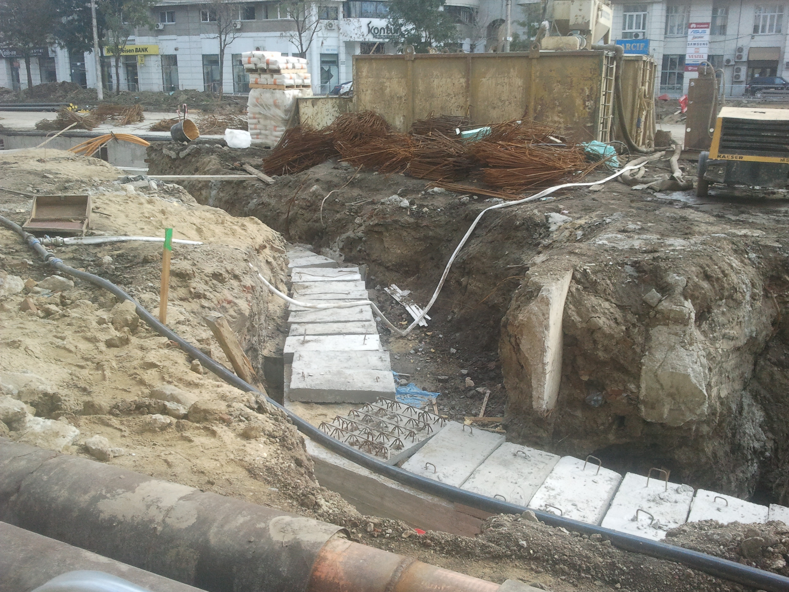 Cum ma absteptam fara indoiala lucrarea a inceput cu c***l. In primul rand si-au batut joc de iluminatul LED nou nout si nu l-au demontat cum se cuvine in prealabil spre a fi depozitat si pastrat, undeva, spre remontare. In al doilea rand... devieri de canalizare? Nu vad. In schimb s-au aruncat cu avant pe pereti mulati. Din 3 cascarabeti unul evident deja a carapat (deja vu de la M5 PDT, desi nu este acelasi constructor). Despre alte retele edilitare nu mai vorbesc, Netcity a fost ravasit si punctual sta dezgropat la lumina zilei, riveranii probabil vor avea motive de 'bucurie' pe toma asta.