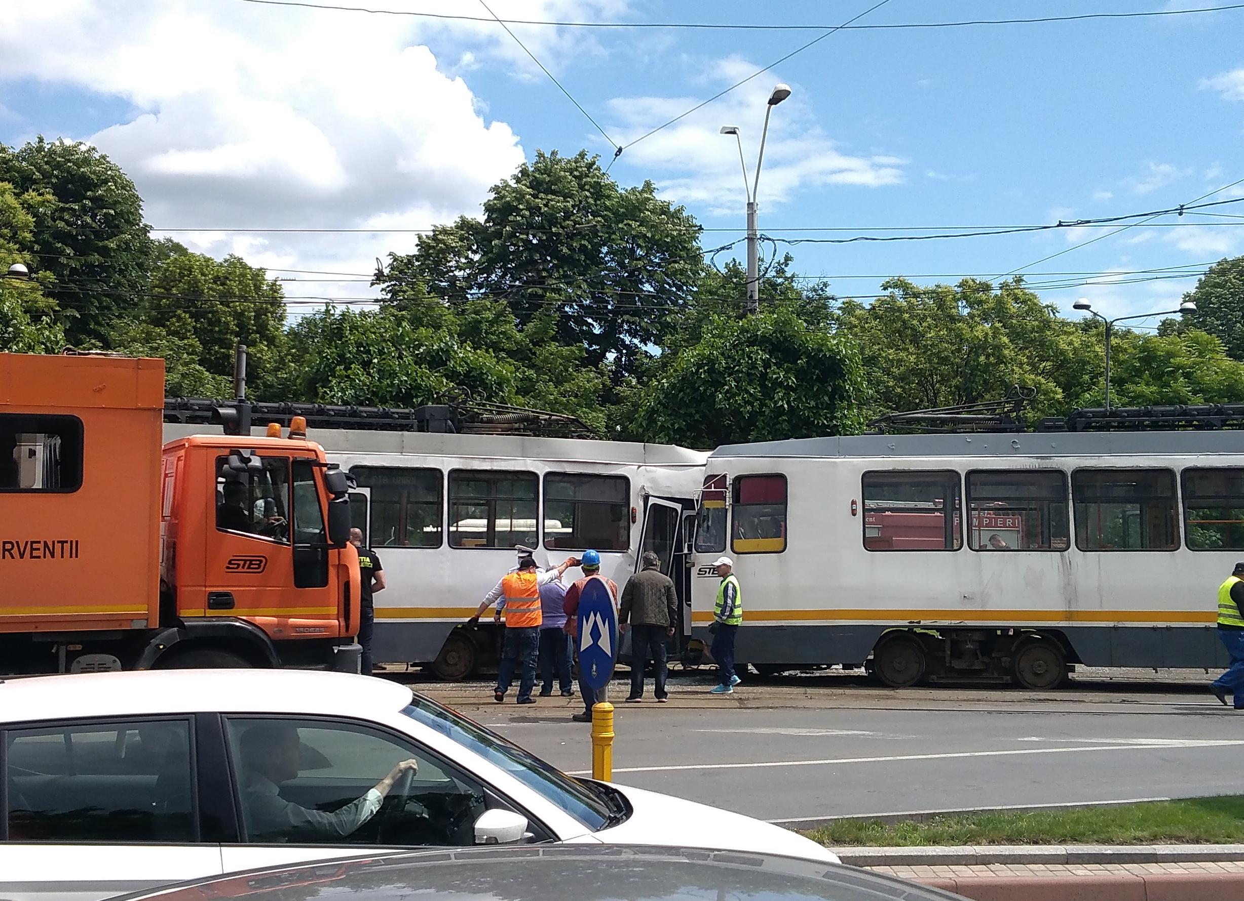 Accidentul între cele două tramvai a avut loc în jurul orei 11:40, în apropiere de Cimitirul Bellu. Circulația tramvaielor este blocată, dar și cea rutieră.