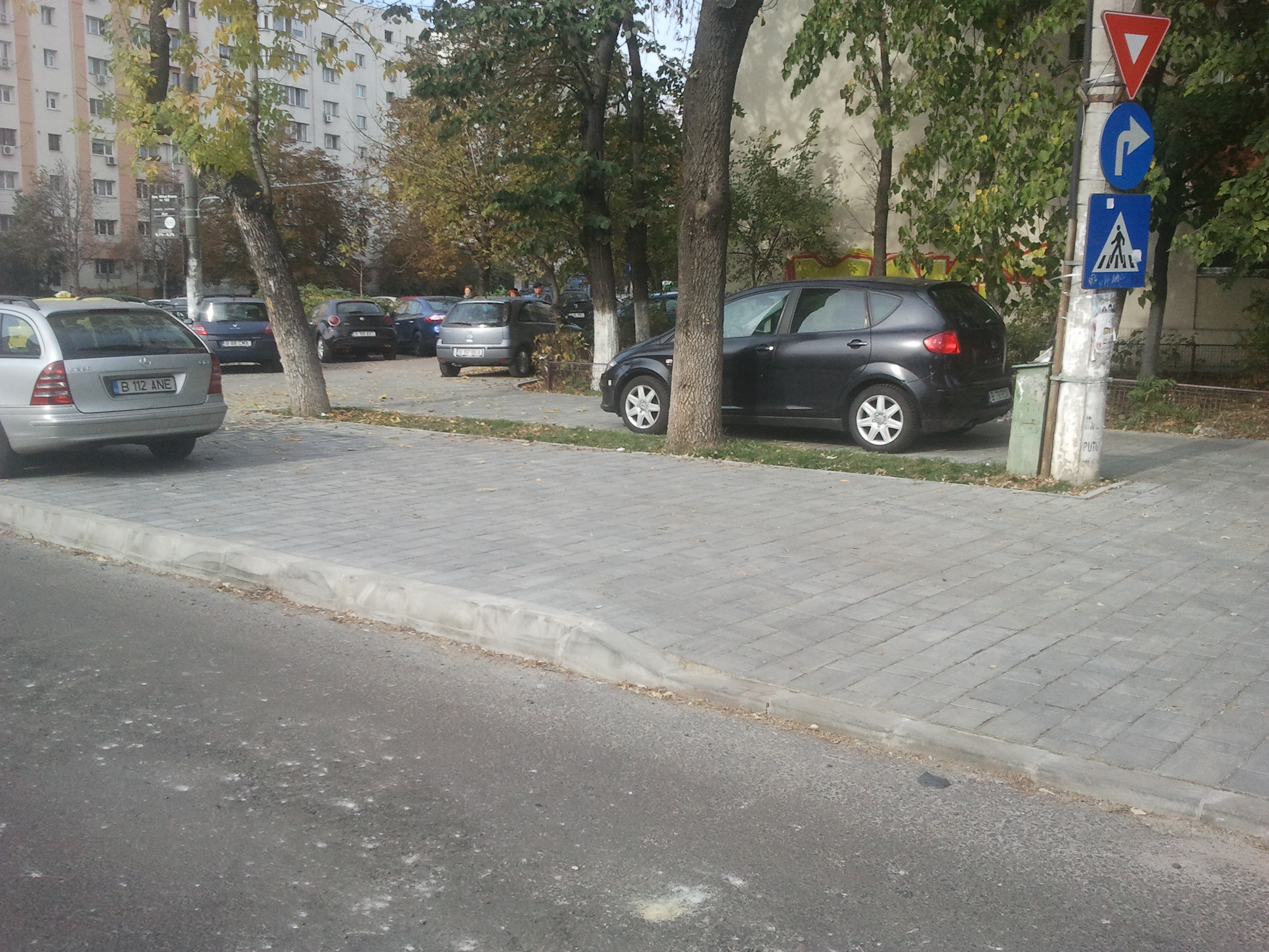 Trotuarul ala ajunsese o rusine, doar o mare parcare plina de denivelari, sparturi de la radet iar din pista de biciclete delimitata cu stalpisori abia a mai ramas cate o urjuma de marcaj sau stalpisor, marturie a existentei trecute. Din pacate na vad nimic de genul parcari in spic astfel incat sa se elimine circulatul masinilor pe trotuar, chestiune care il face neatractiv complet pentru promenada desi are o latime generoasa.