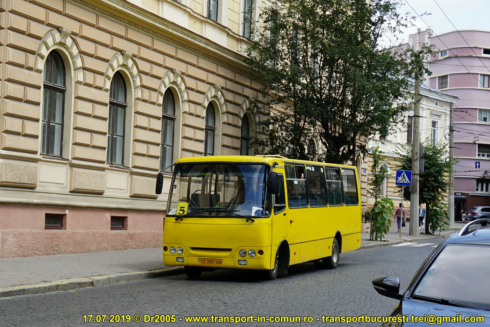 Transportul în comun cu autobuze în Cernăuţi este efectuat de o sumedenie de firme, firmuliţe şi chiar PFA-uri, cu o gamă largă de autobuze şi, mai ales, midibuze. Sunt nu mai puţin de 46 de trasee (!) deservite, la ore de vârf, de 210 autobuze (!), care acoperă tot oraşul, inclusiv traseele de troleibuz (care au intervale jenante...). Biletul costă 5 hrivna (faţă de 3 la troleibuz) şi se achită direct la şofer (mai rar la taxator/taxatoare). Numerele traseelor se suprapun cu cele ale troleibuzelor, fără a exista o legătură între ele (de ex. linia 1 de autobuz nu are nimic în comun cu linia 1 de troleibuz).