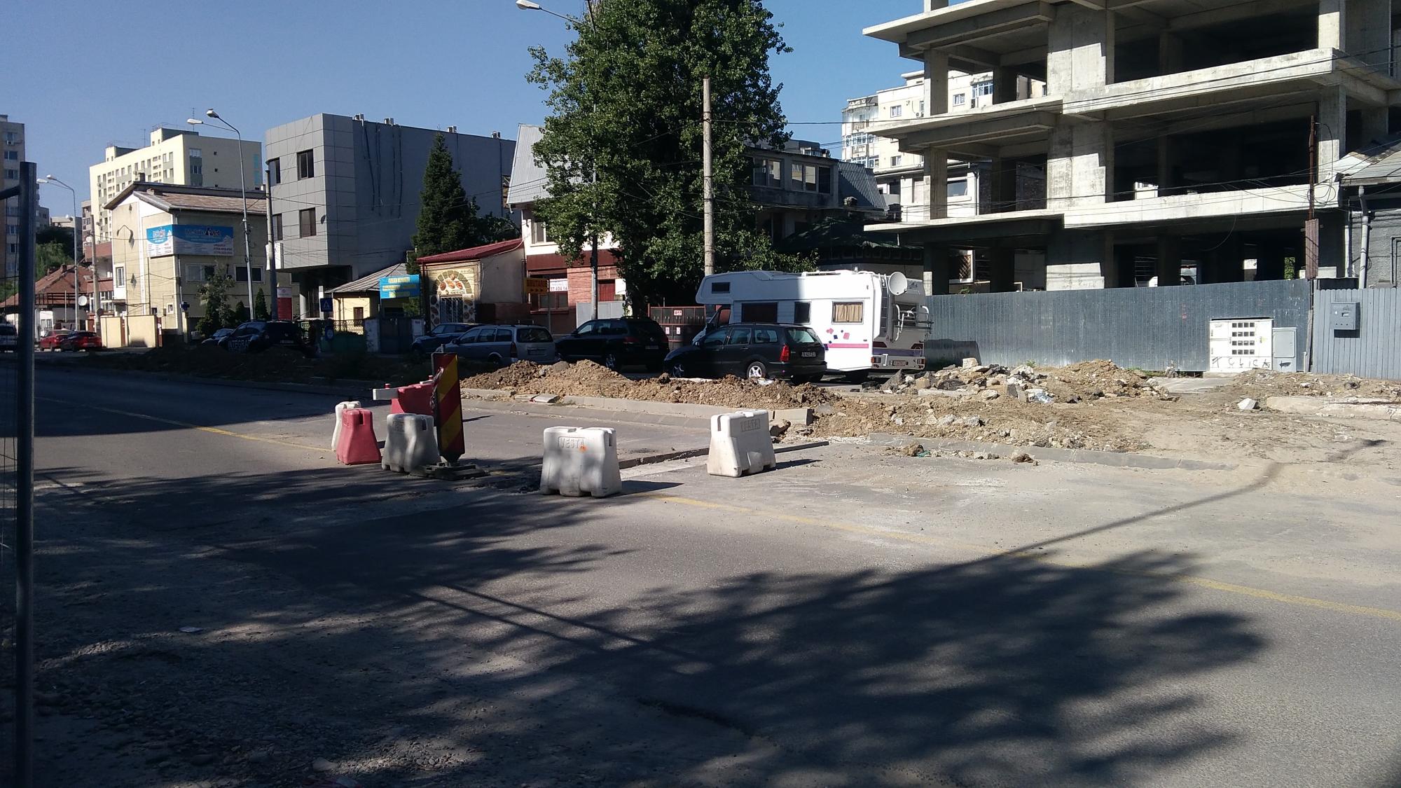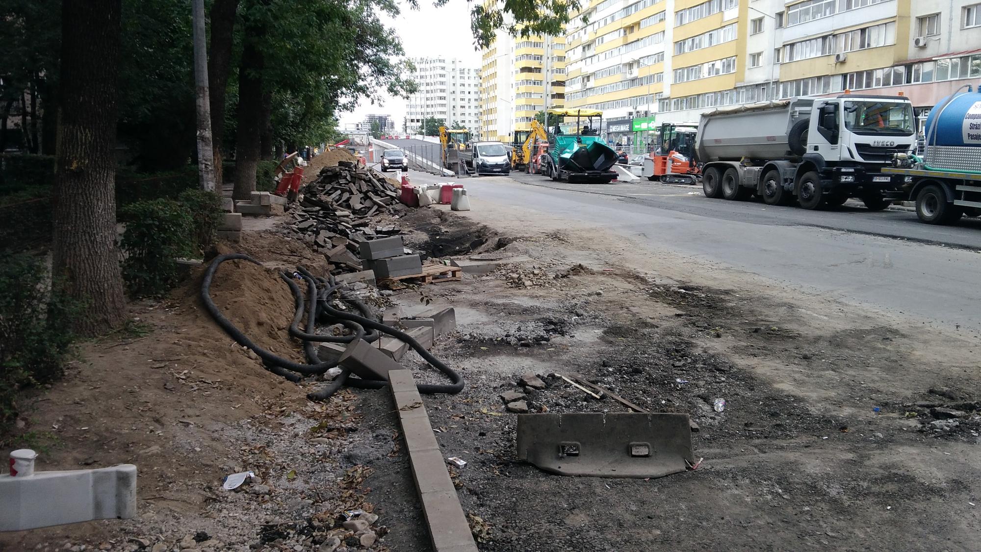 Pe partea dinspre Tei nu prea mai este front de lucru, au decopertat asfaltul de pe trotuarul de pe partea blocurilor de la parc si cam atat. Au mai zburat din masinile parcate spre Petricani ca sa mute bordura in continuare. Au mai avansat putin cu canalizarea paralel cu biserica. Se refac scarile cu rampa noua la coborarea in Ion Berindei de pe promenada inalta.