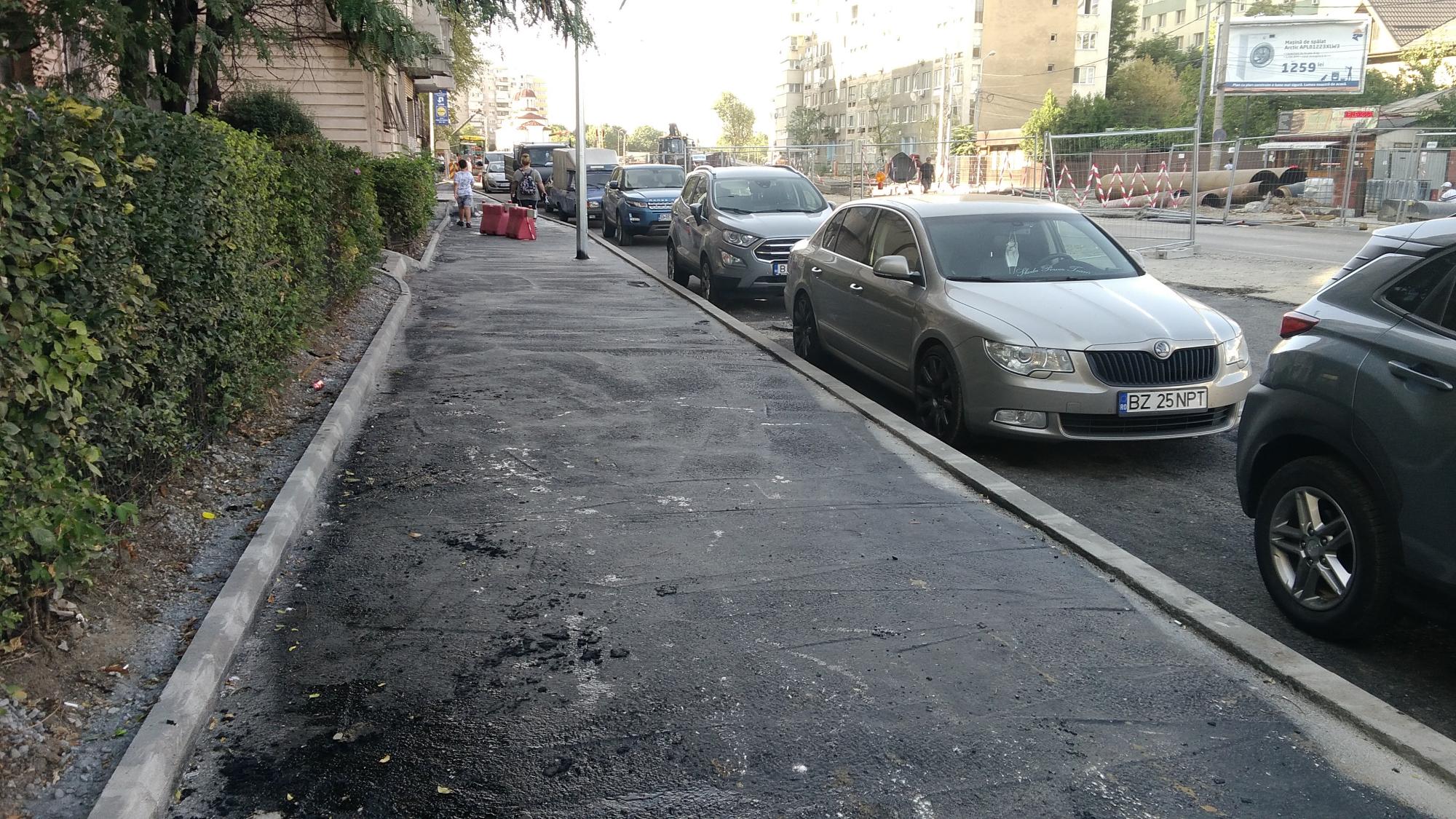 Pe partea dinspre Tei nu prea mai este front de lucru, au decopertat asfaltul de pe trotuarul de pe partea blocurilor de la parc si cam atat. Au mai zburat din masinile parcate spre Petricani ca sa mute bordura in continuare. Au mai avansat putin cu canalizarea paralel cu biserica. Se refac scarile cu rampa noua la coborarea in Ion Berindei de pe promenada inalta.