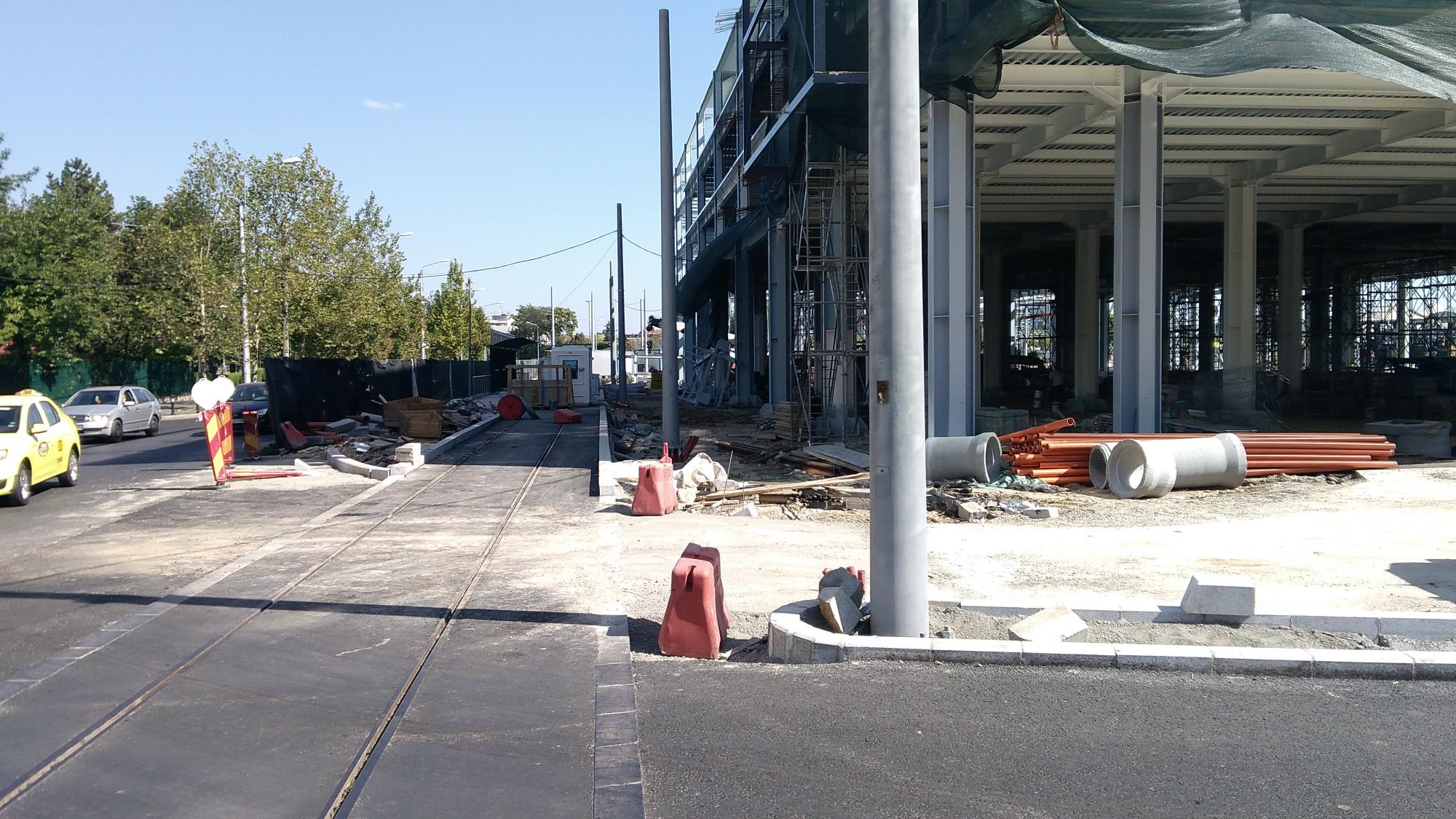Au mai montat un segment de linie spre intrarea in terminal. Din pacate in terminal nu s-au asezat inca sine la pozitie pentru ca materialele sunt depozitate... cam peste tot, inclusiv pe traseul tramvaiului.