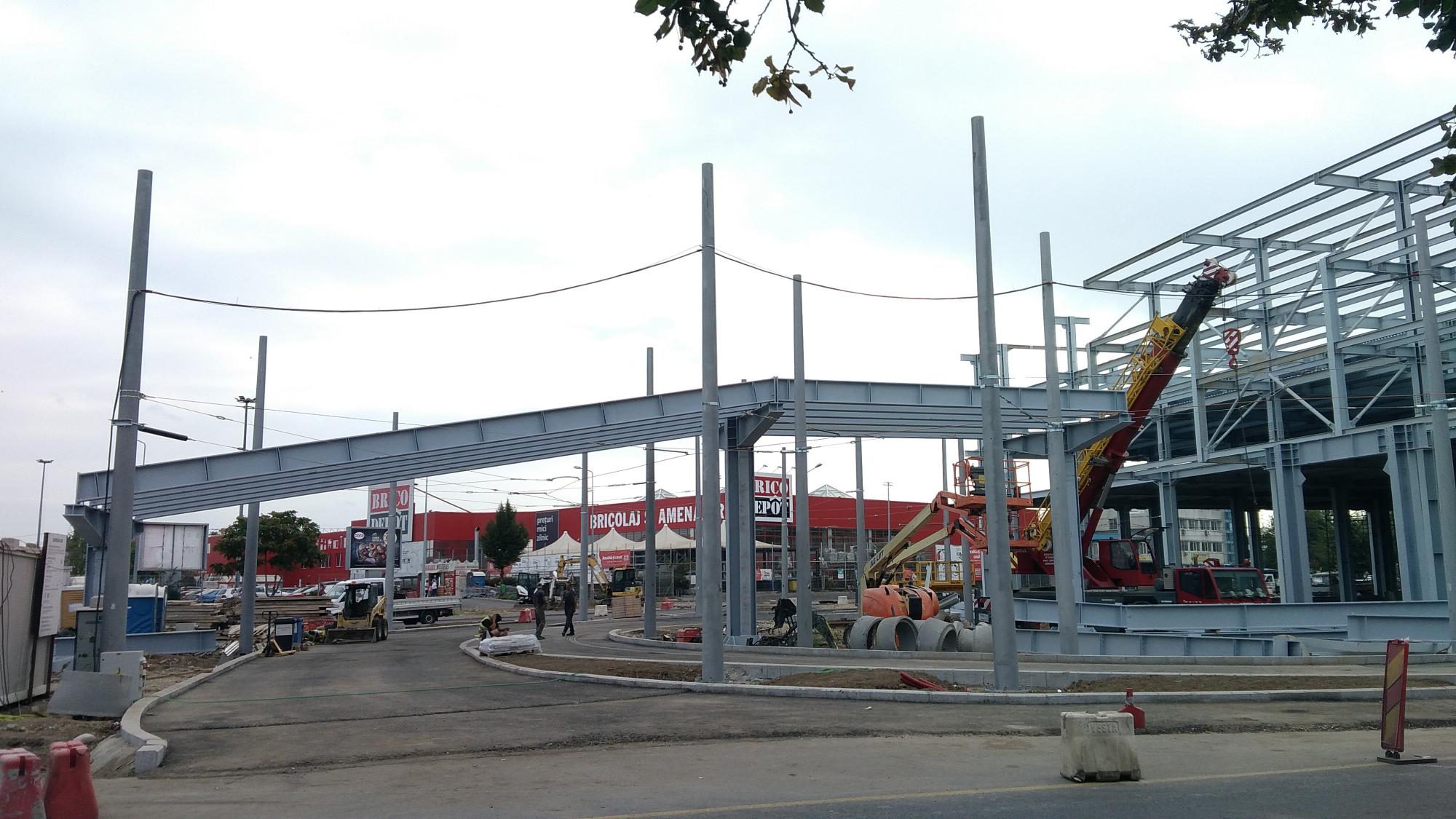 In schimb... au mai aparut piese "mecano" noi, randul 10 de stalpi, care pare nesimetric ca dispunerel cu celelalte 9, probabil va sustine ceva melc pentru parcare. Ar fi destul de complicat sa treaca tramvaiele prin santier, dat fiind ca s-a micsorat spatiul de manevra inalta la sol. Cred ca vor mai fi bidirecctionale cel putin vreo 2-3 saptamani dupa care... pe riscul nu stiu cui poate sa se intoarca pe bucla.