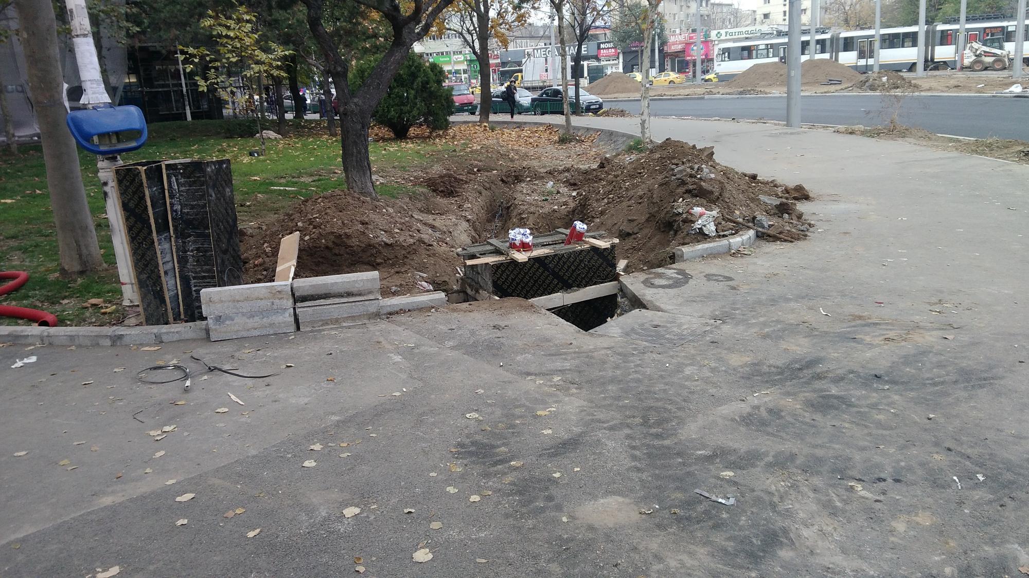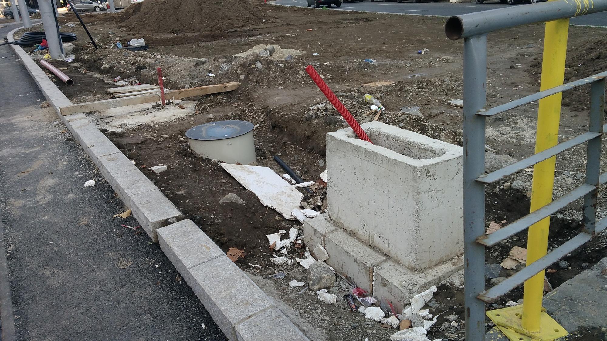 In zona macazului despartitor, unde este acum californianul, au inceput sa intinda rulourile de iarba si planteaza cativa copacei.