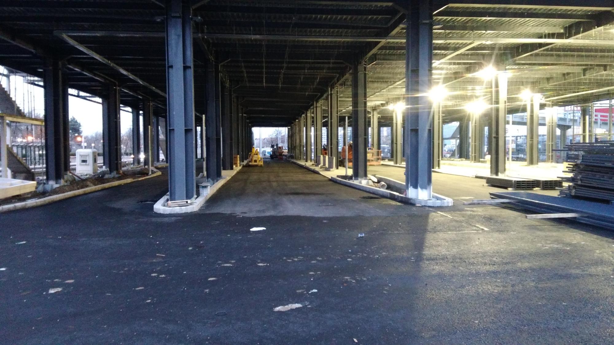 S-ar putea ca rampa de intrare, pe partea dinspre Vergului sa primeasca copertina, sunt niste elemente metalice pe arc de cerc sub rampa, nu prea vad ce ar putea fi.
